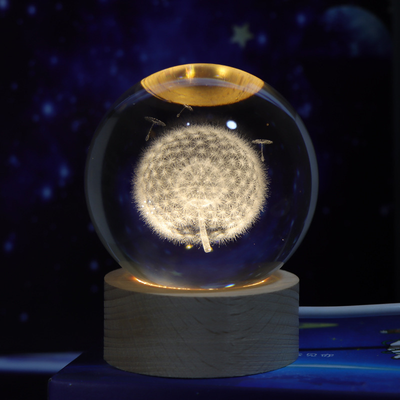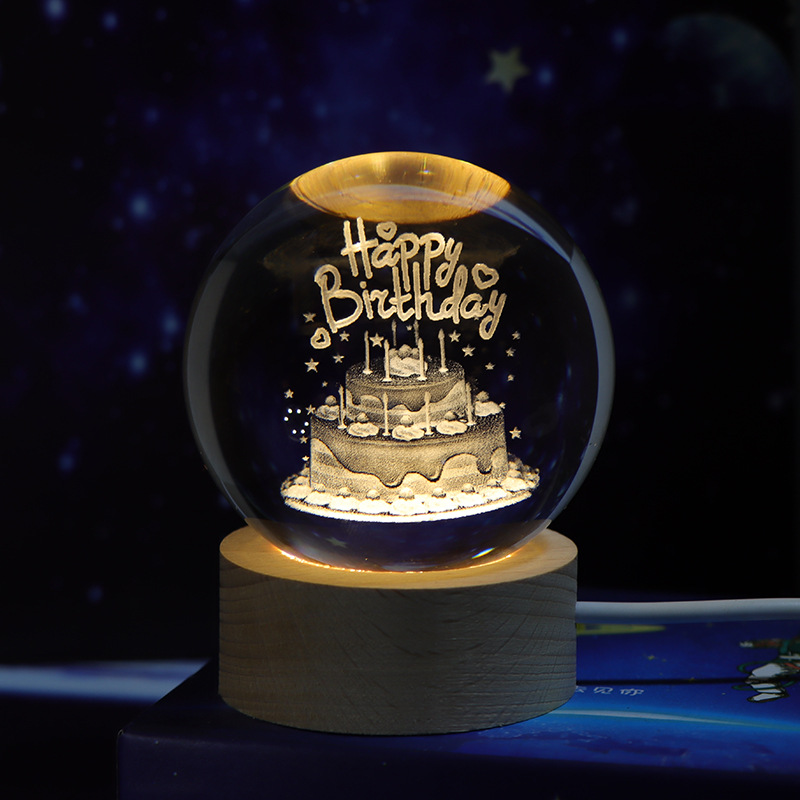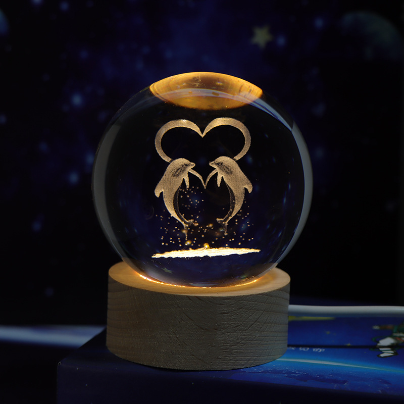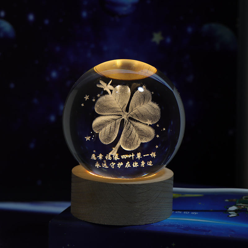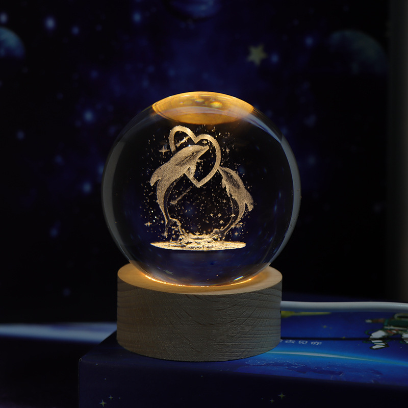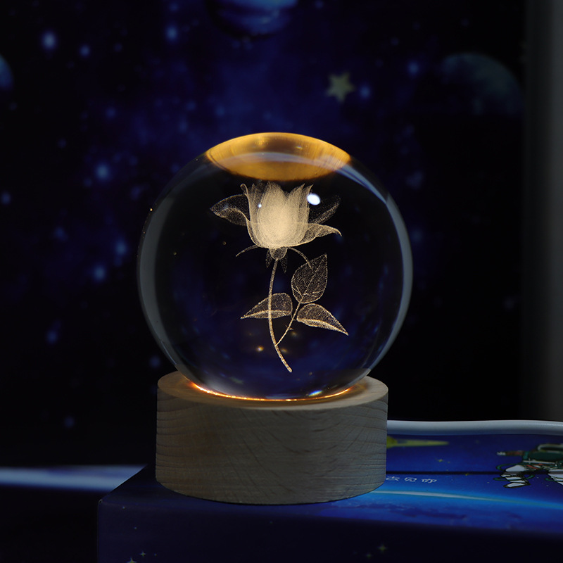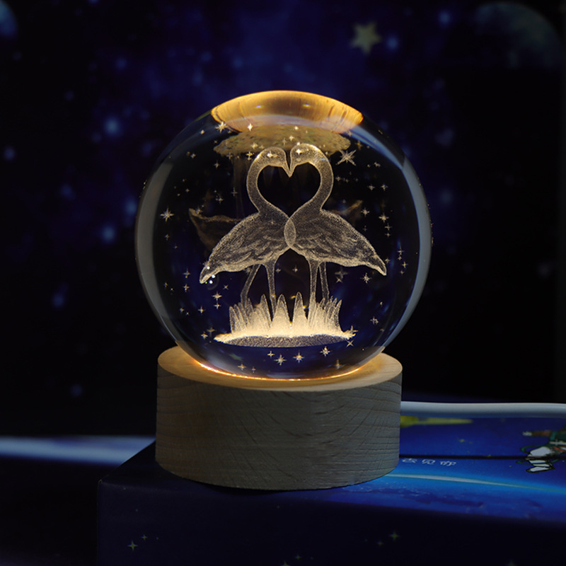 创意3D激光内雕发光水晶球小夜灯星空球太空漫步一帆风顺桌面摆件
