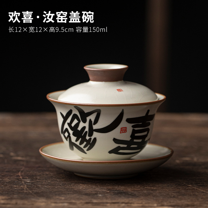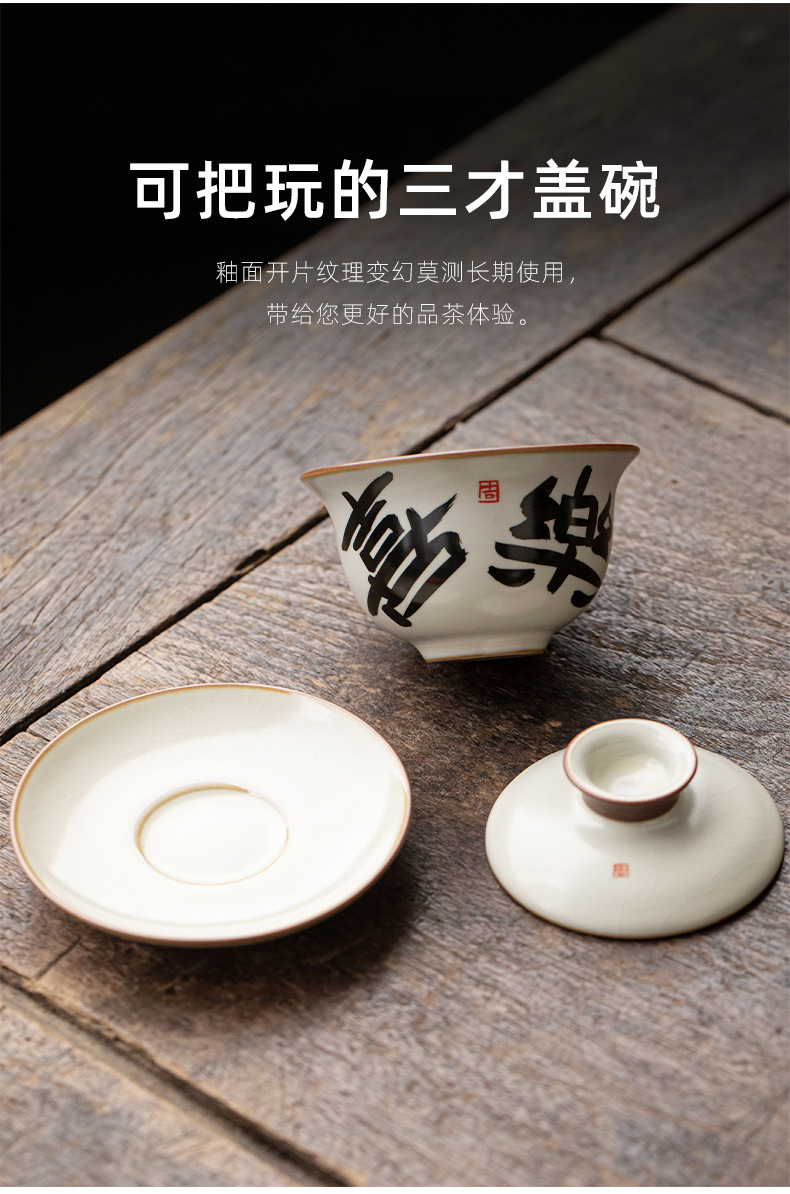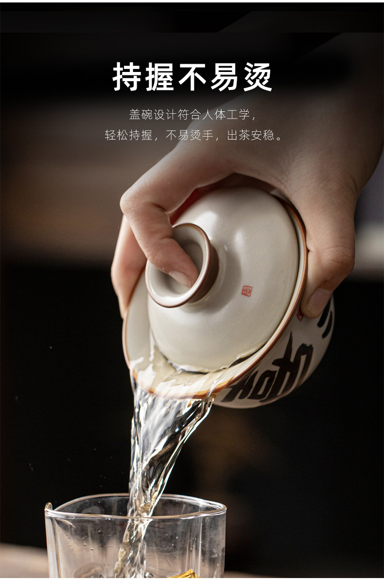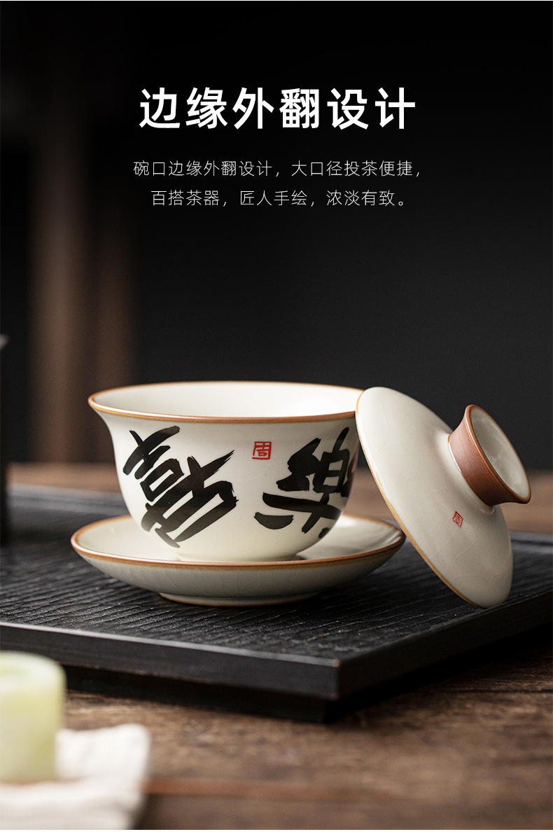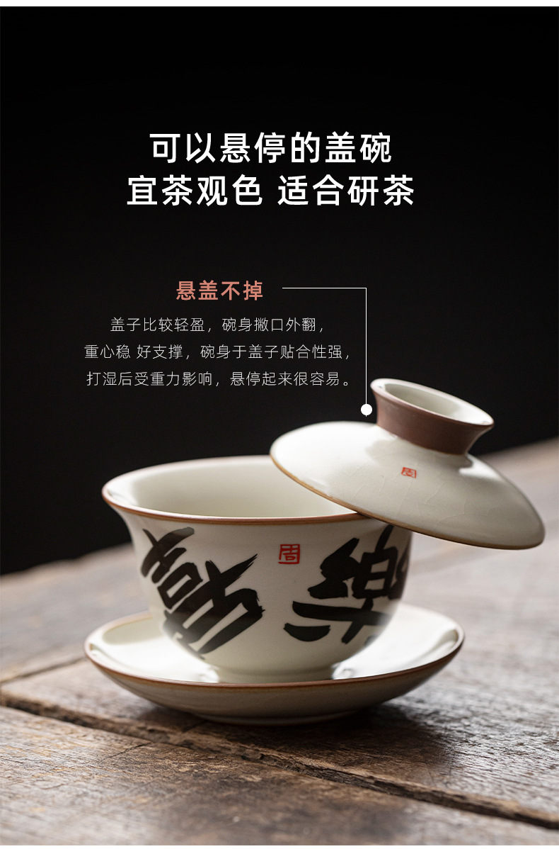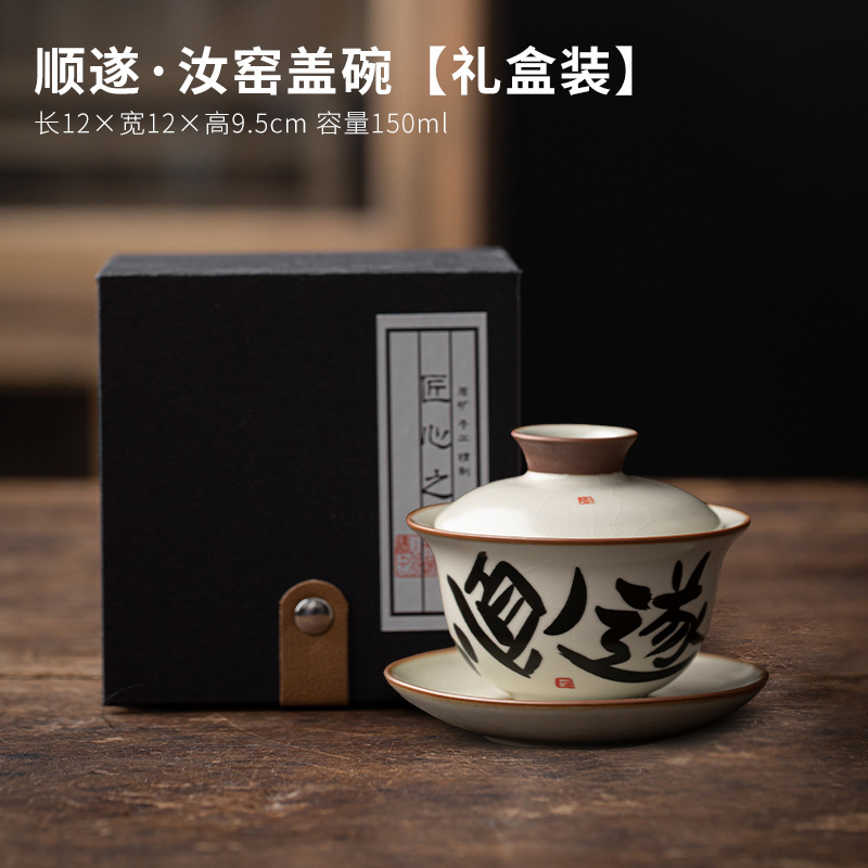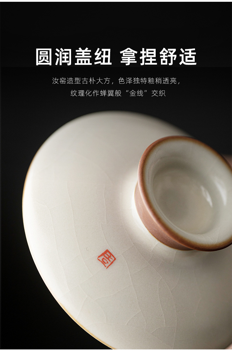 汝窑随意悬停三才盖碗米黄泡茶碗茶杯单个不烫手陶瓷家用功夫茶具