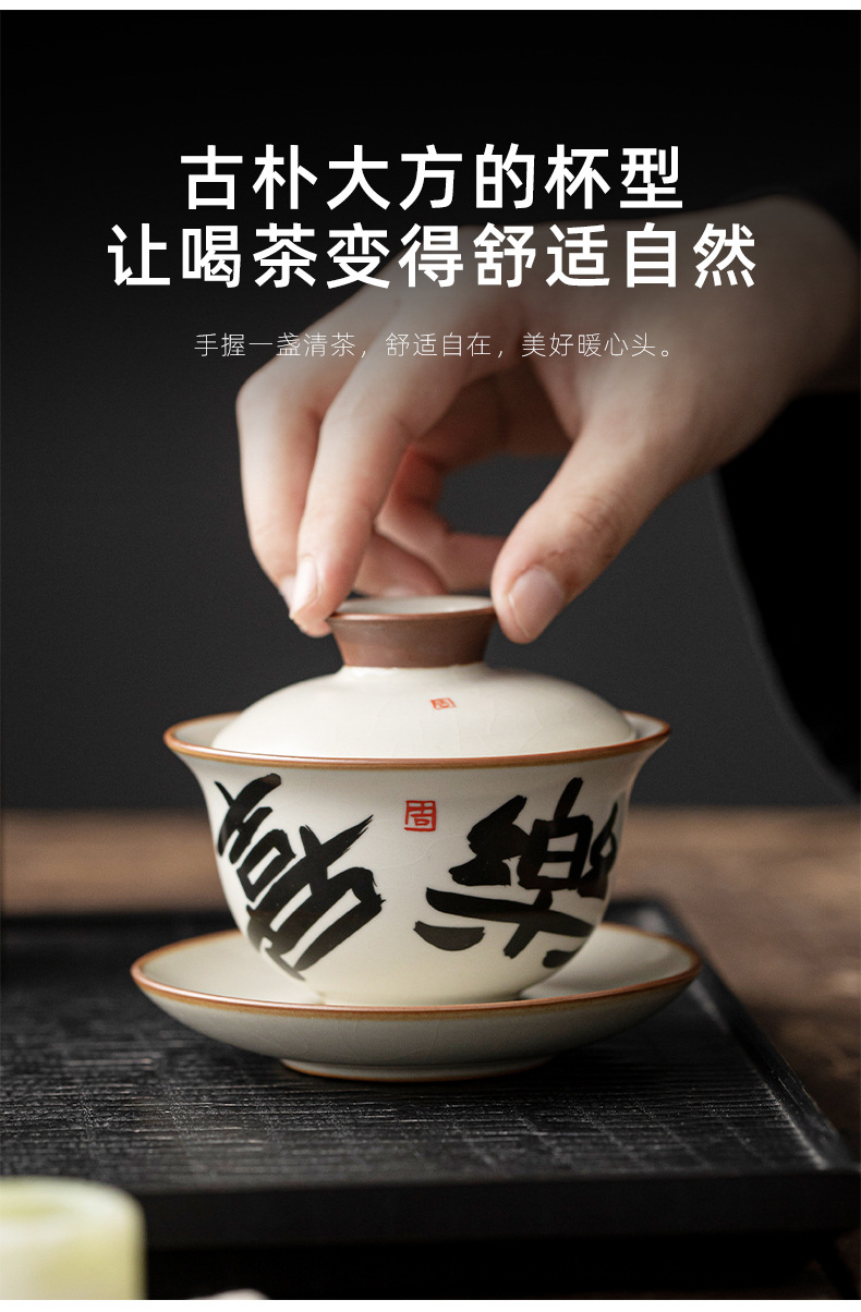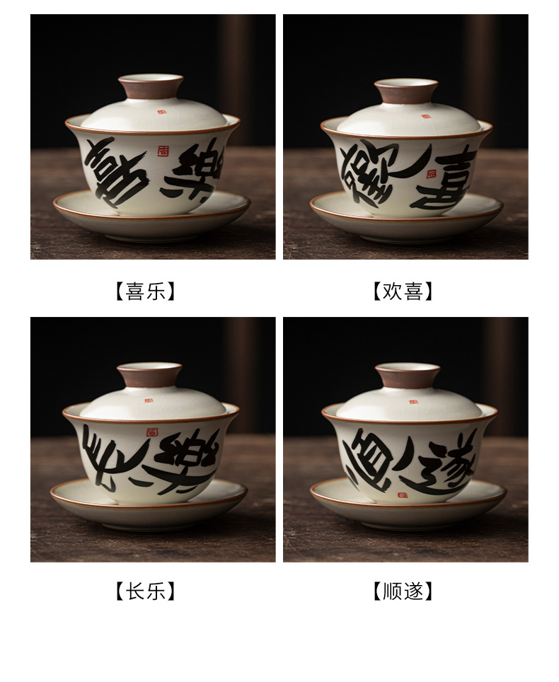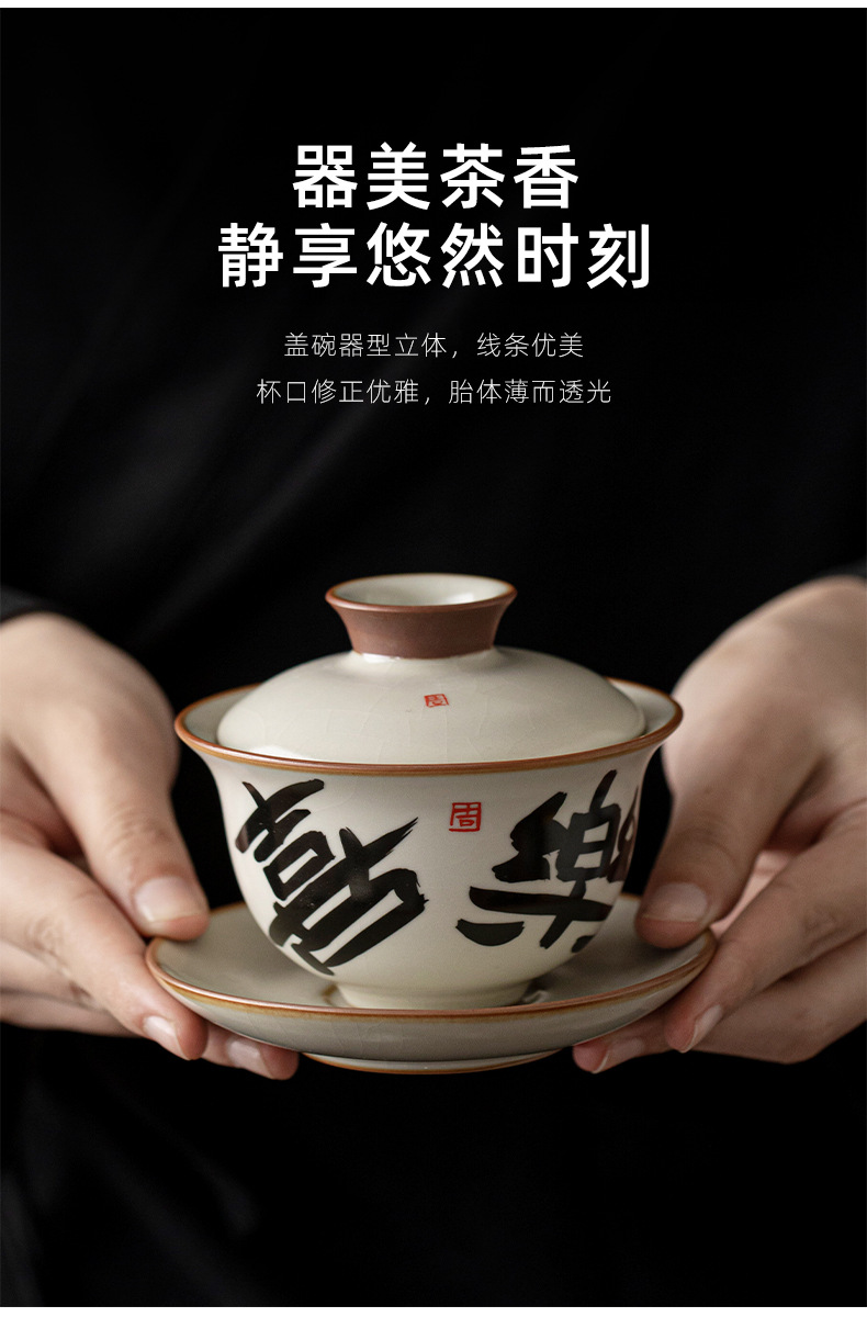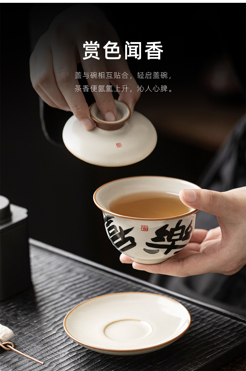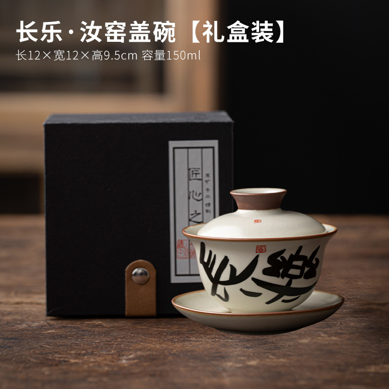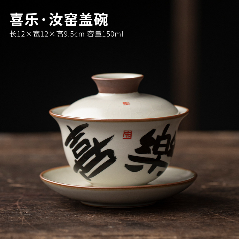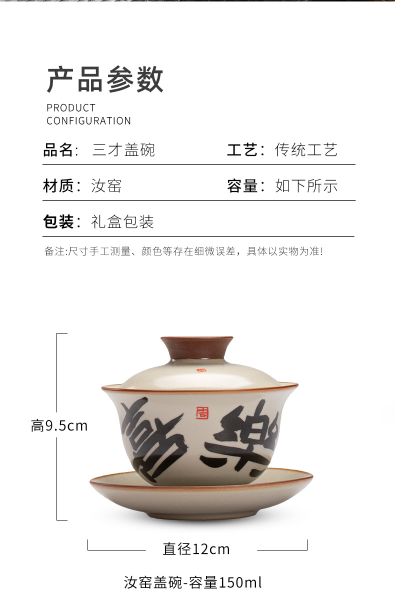 汝窑随意悬停三才盖碗米黄泡茶碗茶杯单个不烫手陶瓷家用功夫茶具