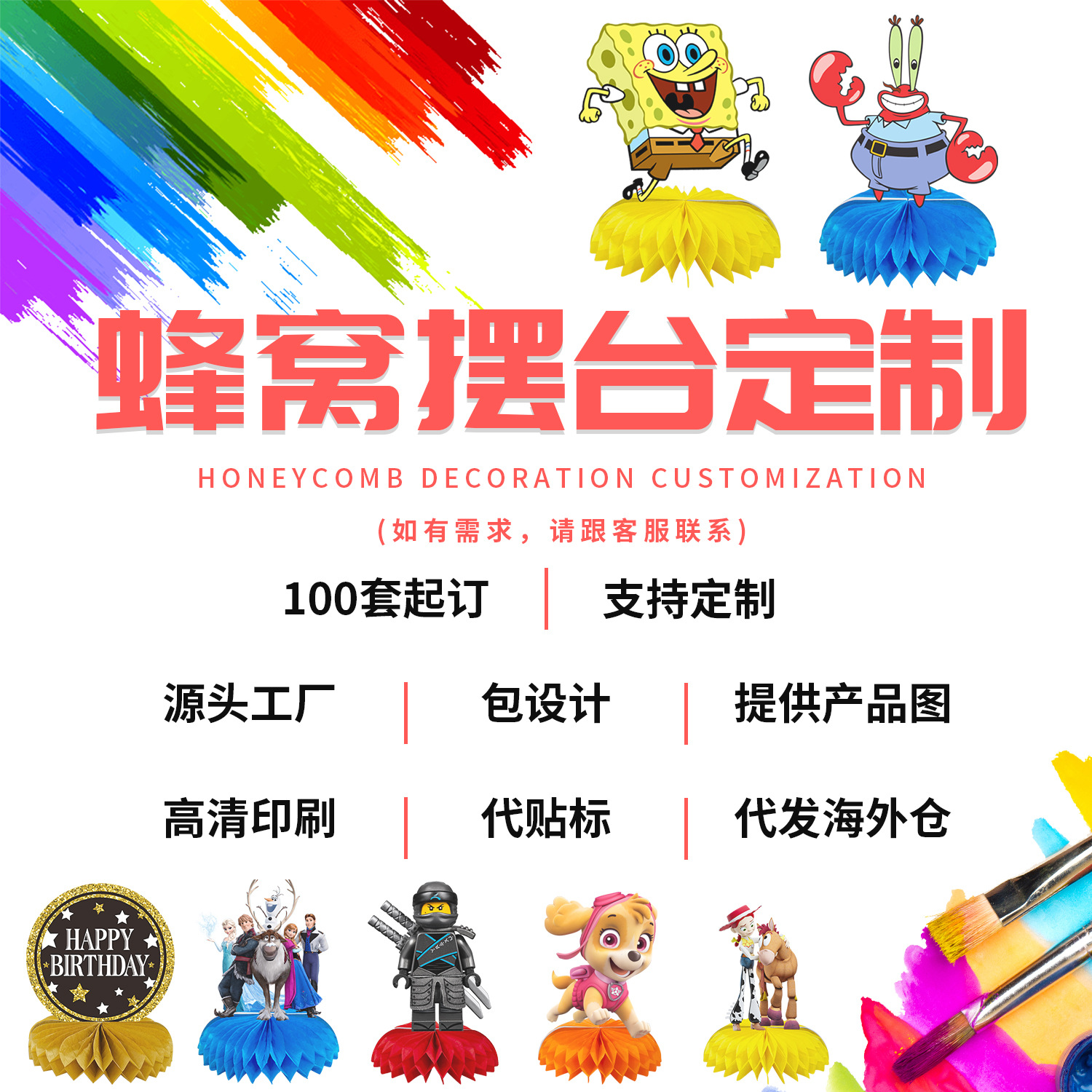 派对蜂窝摆台蜂窝纸扇桌面装饰生日派对装饰用品生日派对蜂窝摆件