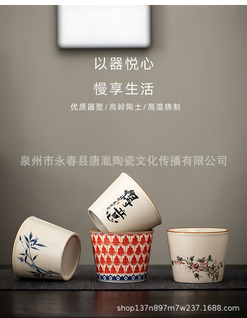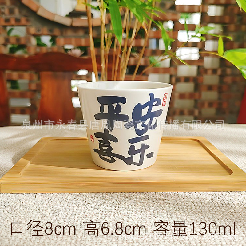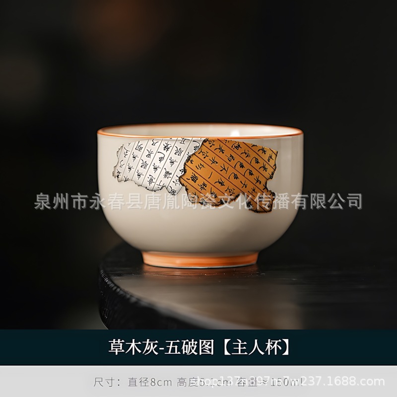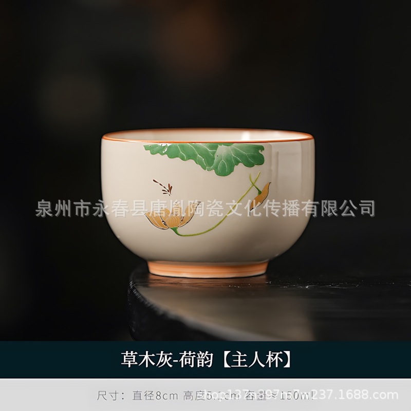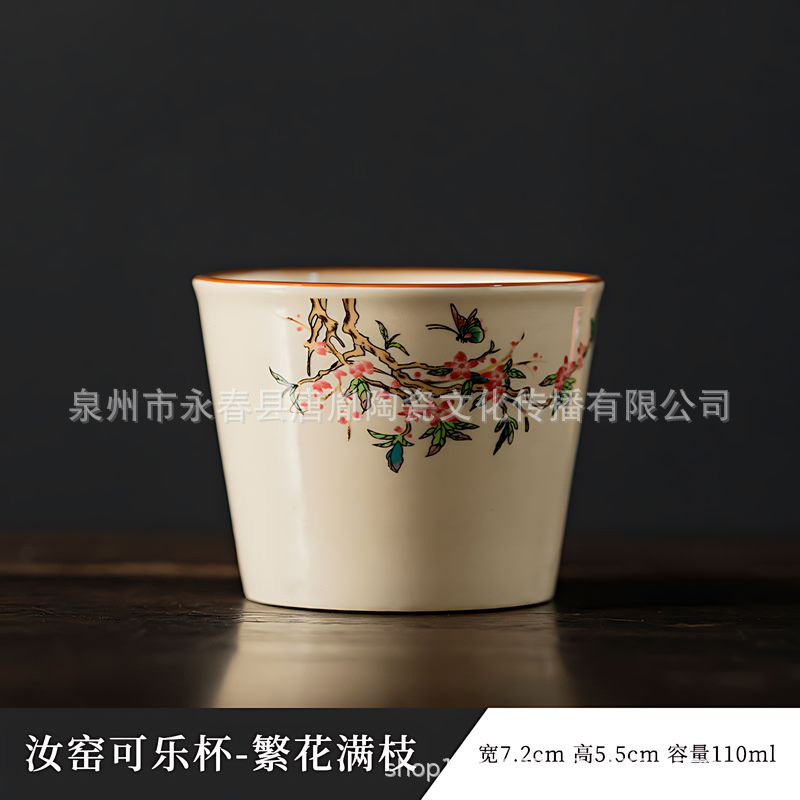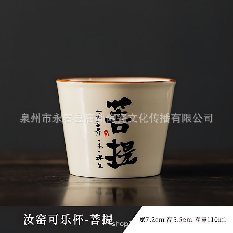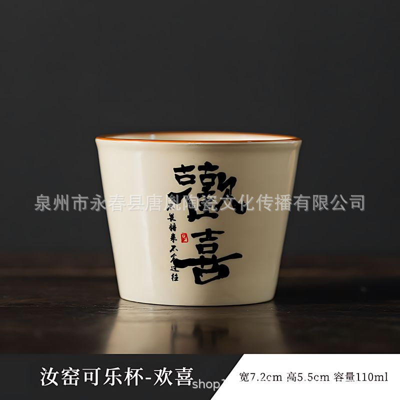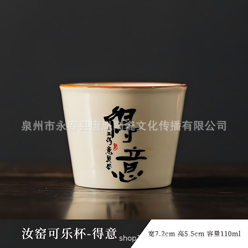 米黄汝窑书法随手可乐杯家用小号陶瓷泡茶主人杯单杯功夫茶具茶碗