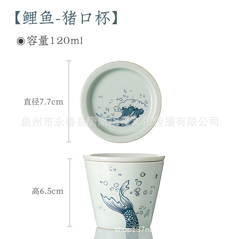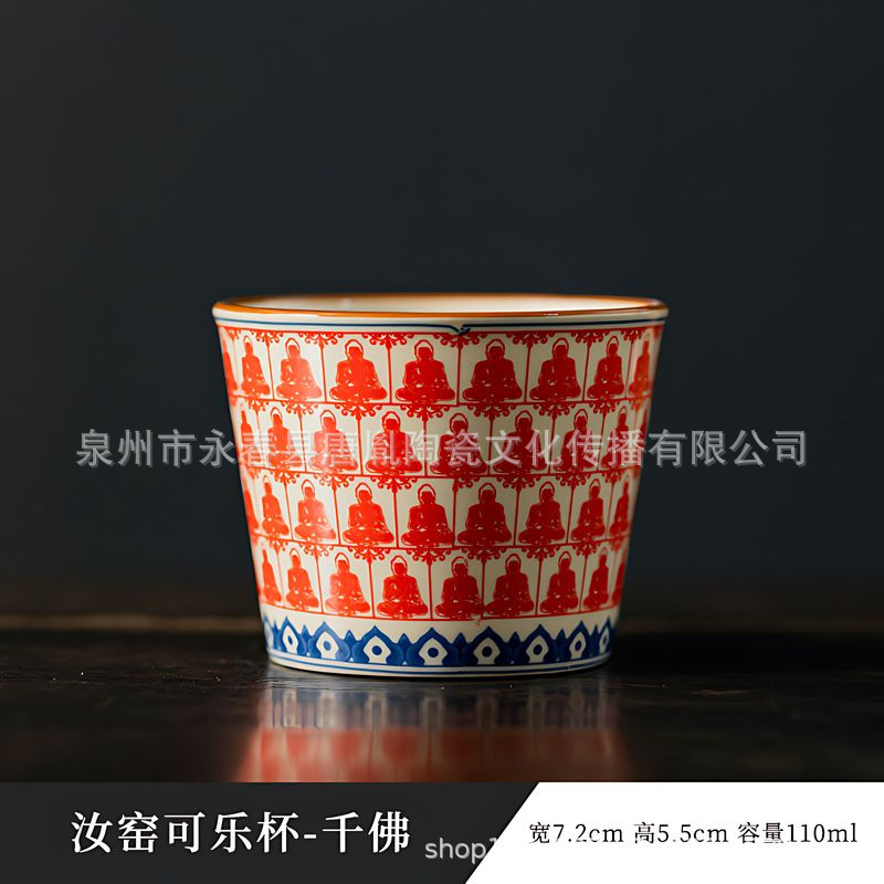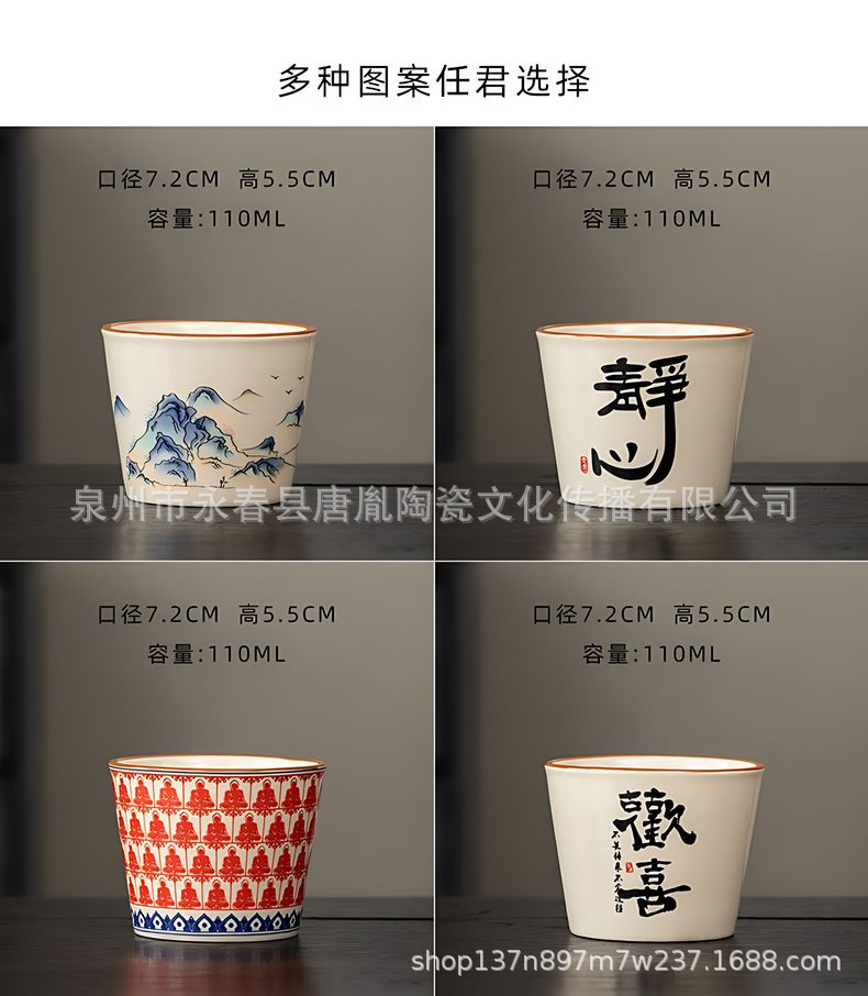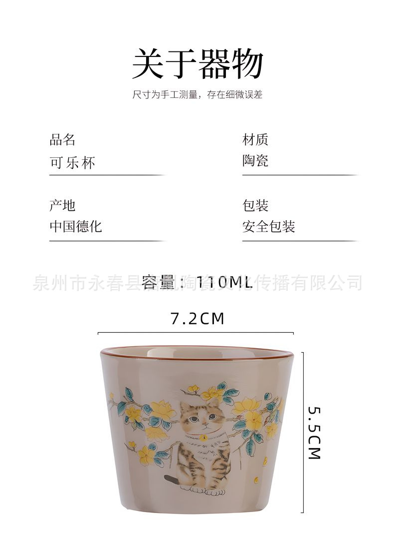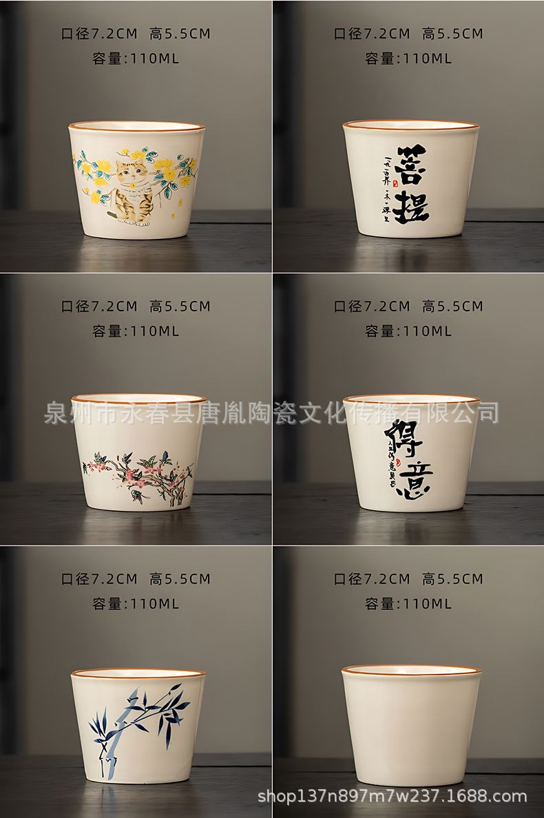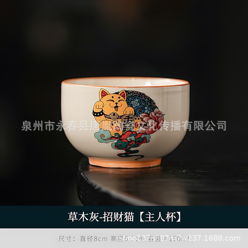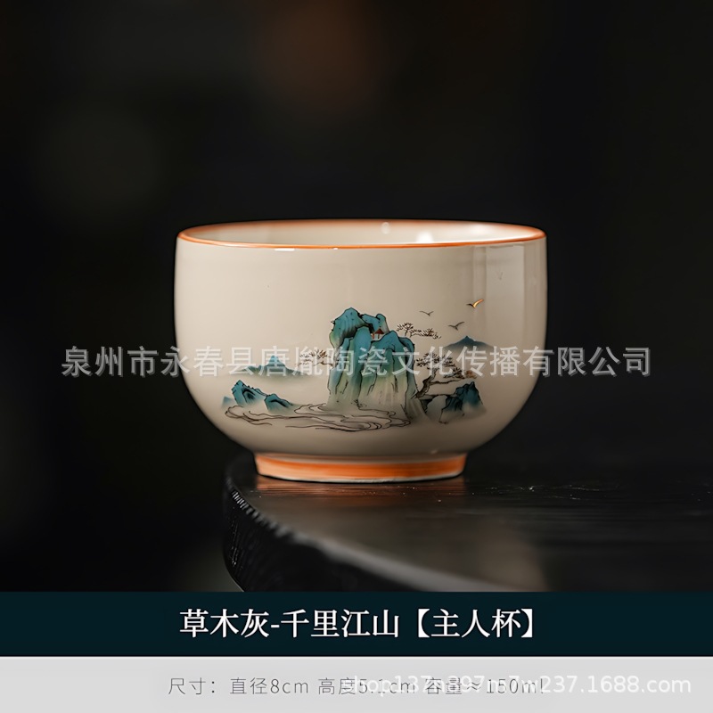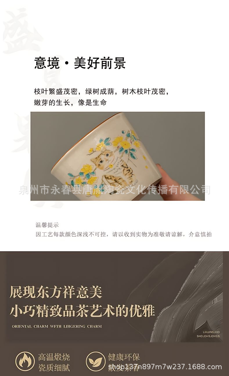 米黄汝窑书法随手可乐杯家用小号陶瓷泡茶主人杯单杯功夫茶具茶碗