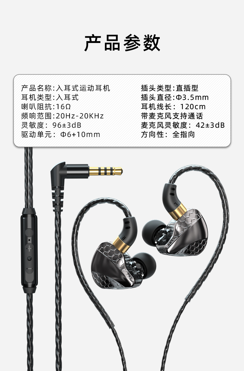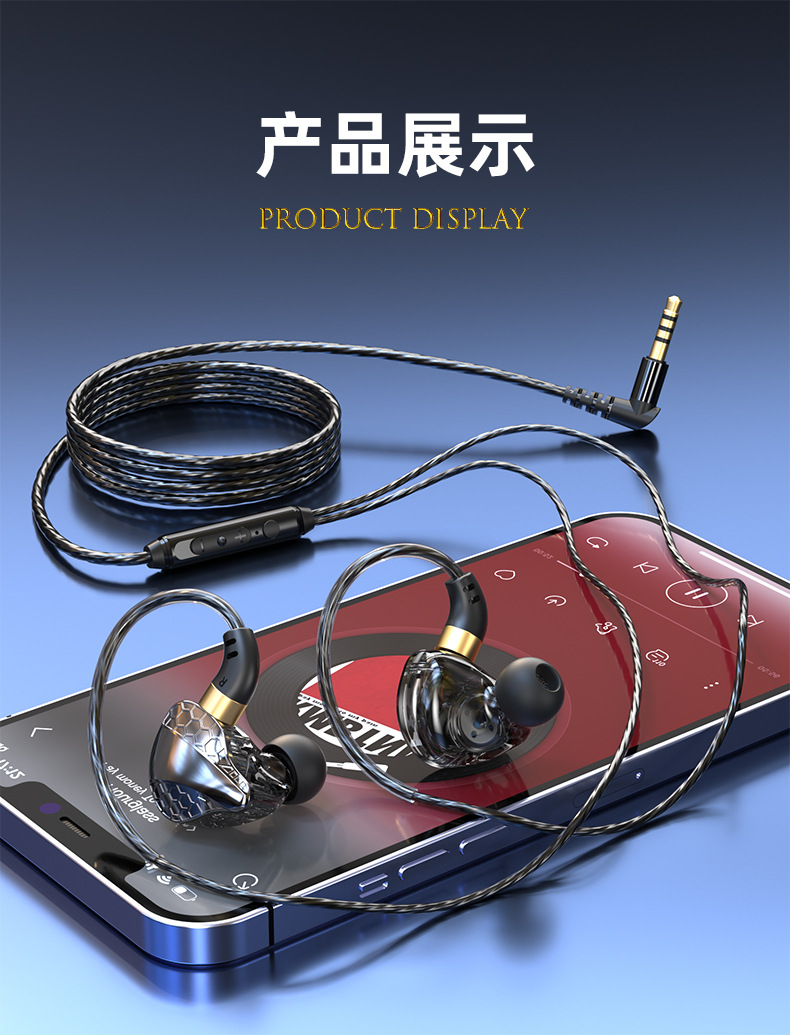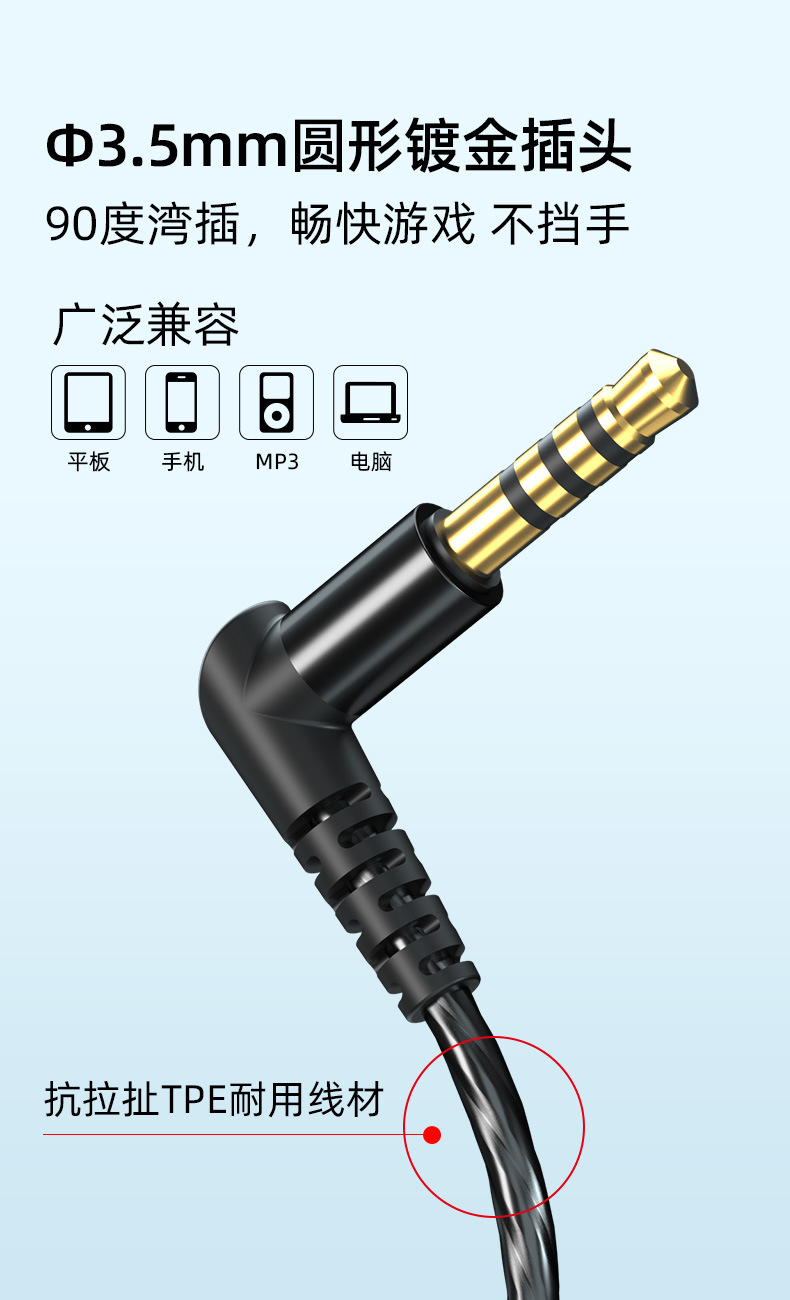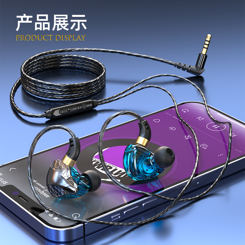 2023年新品运动耳机入耳式重低音有线带麦吃鸡耳机男女通用款