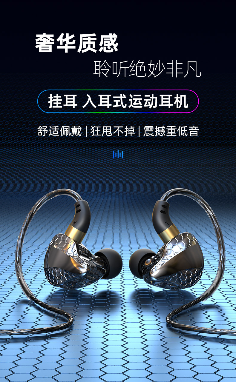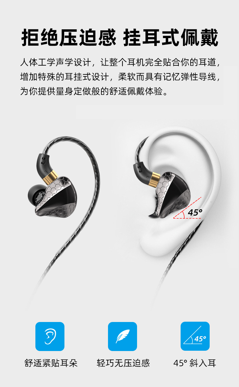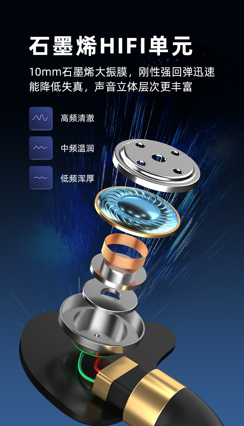 2023年新品运动耳机入耳式重低音有线带麦吃鸡耳机男女通用款