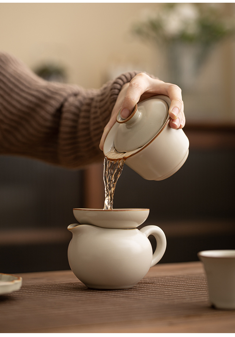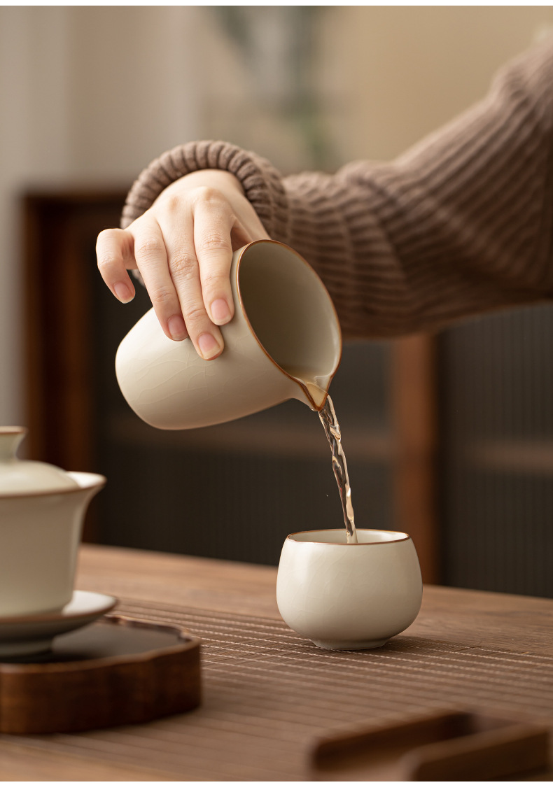 汝窑公道杯分茶器家用简约大号公杯陶瓷茶海公道分茶开片可养茶具