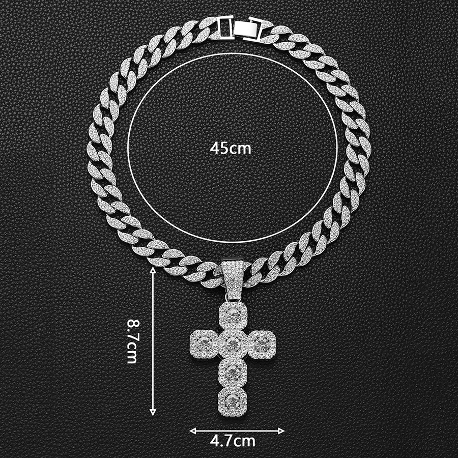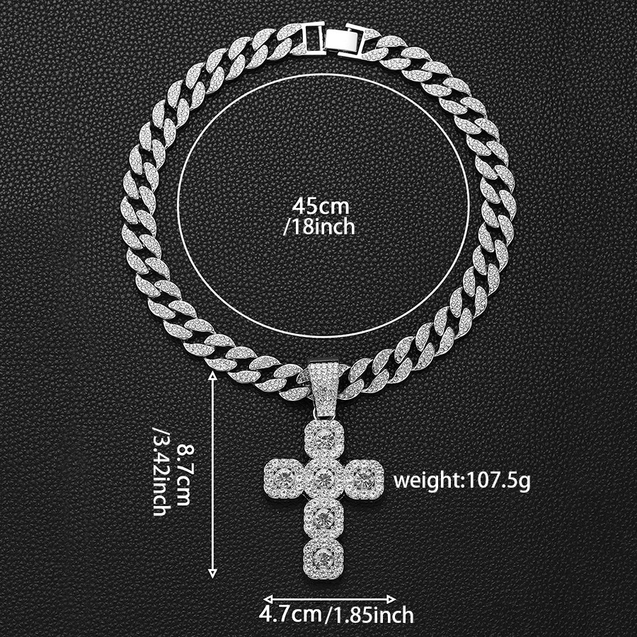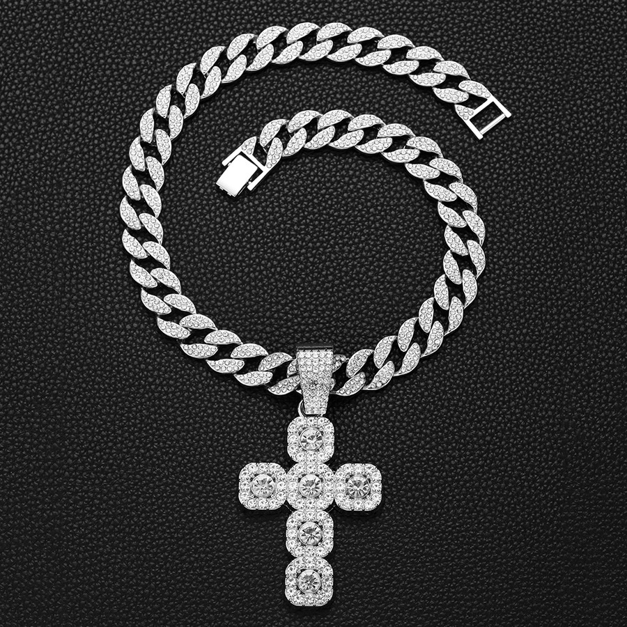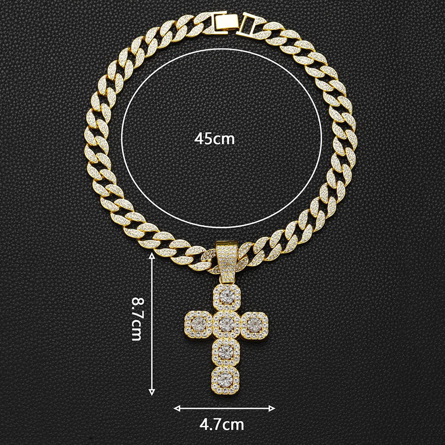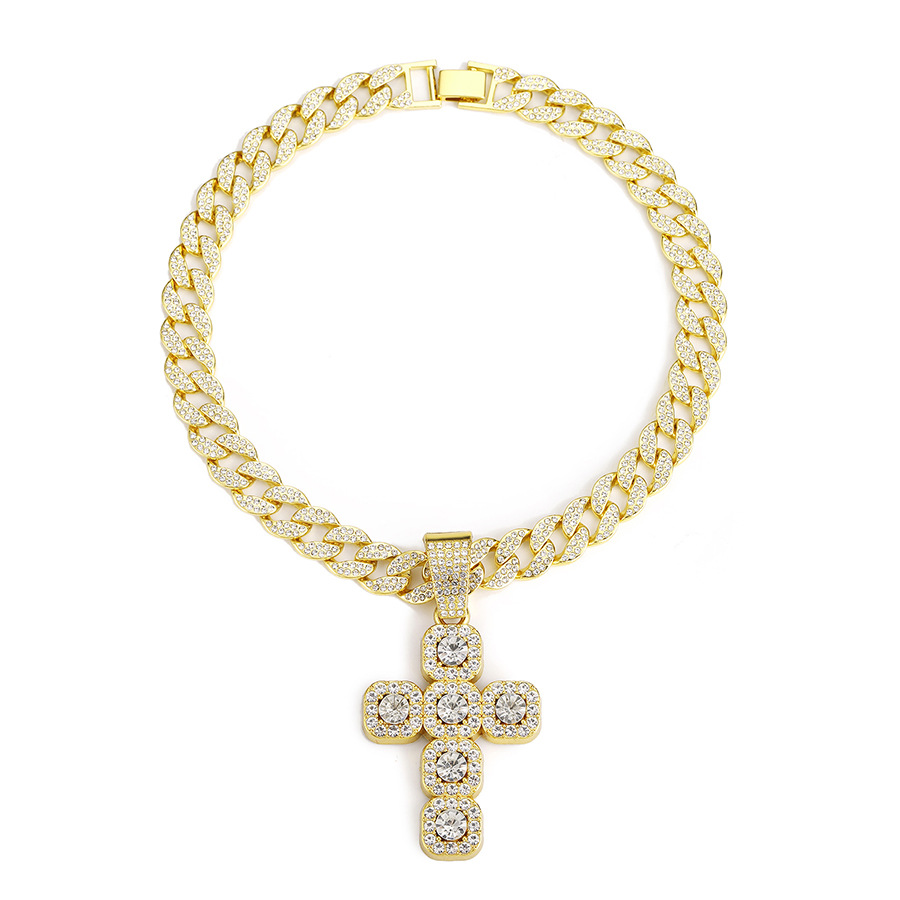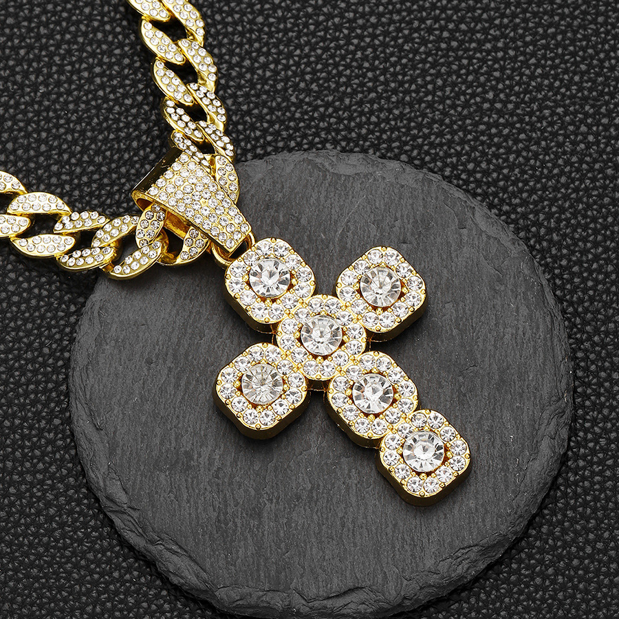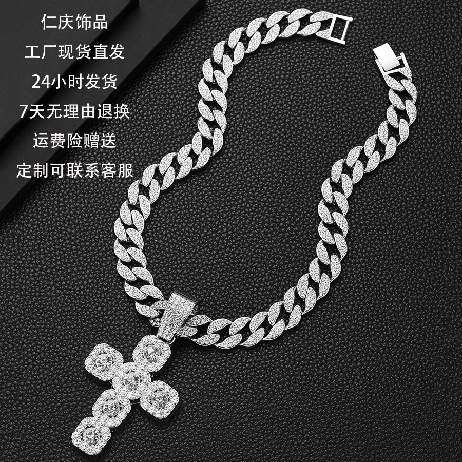 欧美跨境个性嘻哈冰糖十字架吊坠美满钻镶钻合金古巴项链男士首饰