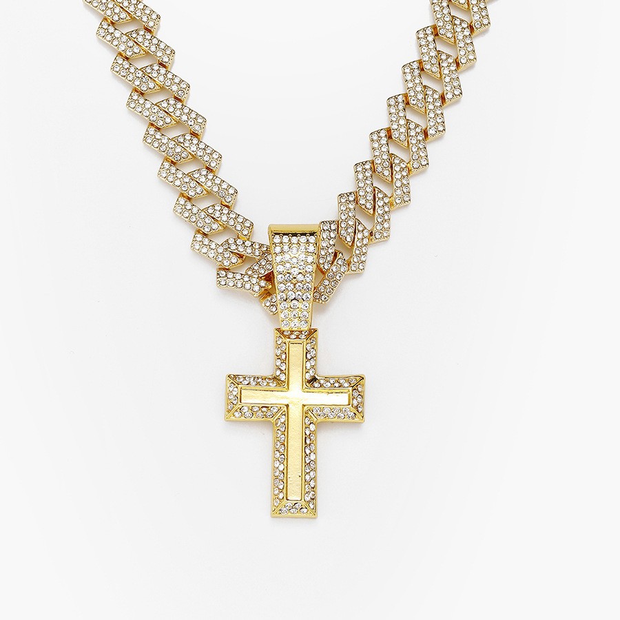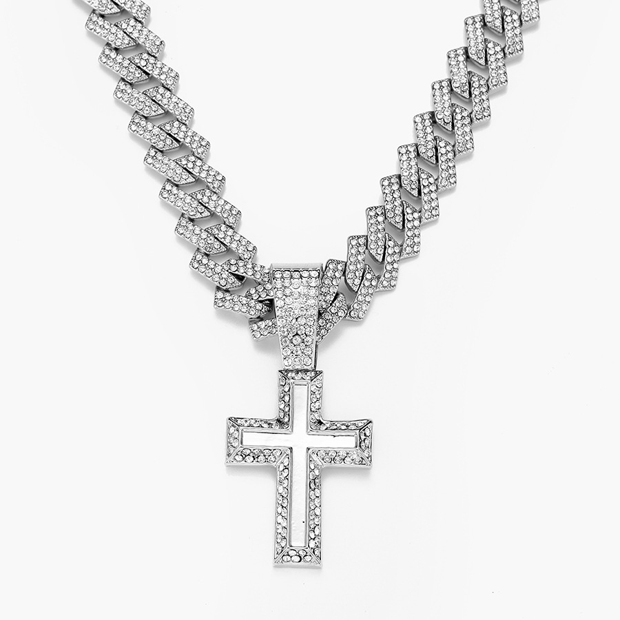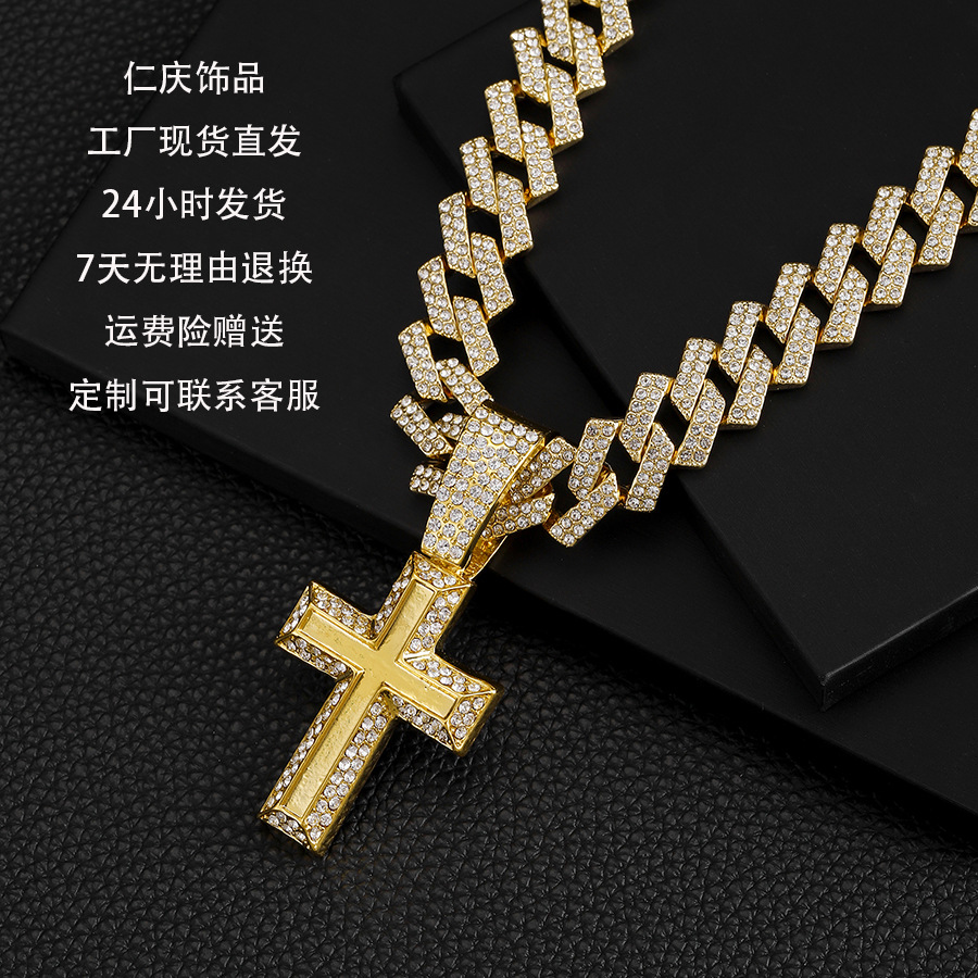 跨境专供嘻哈十字架项链欧美复古个性合金满钻十字架吊坠男士项链