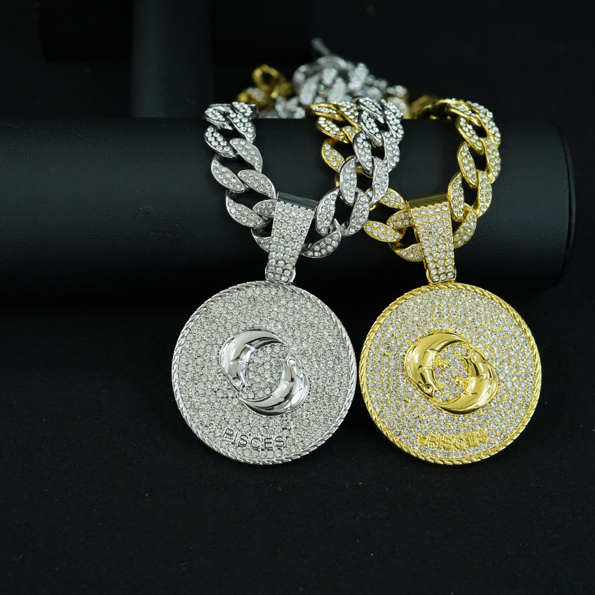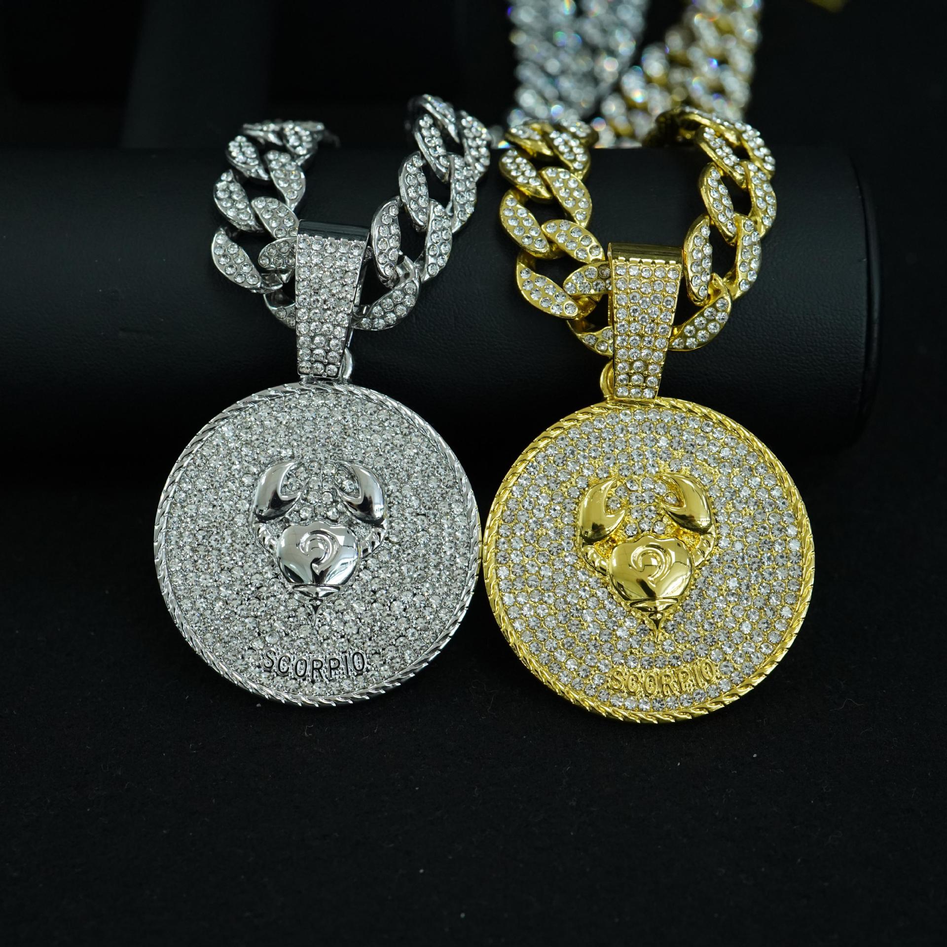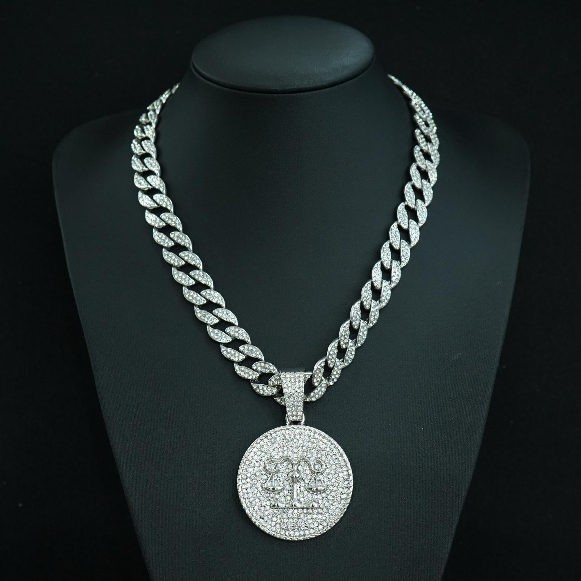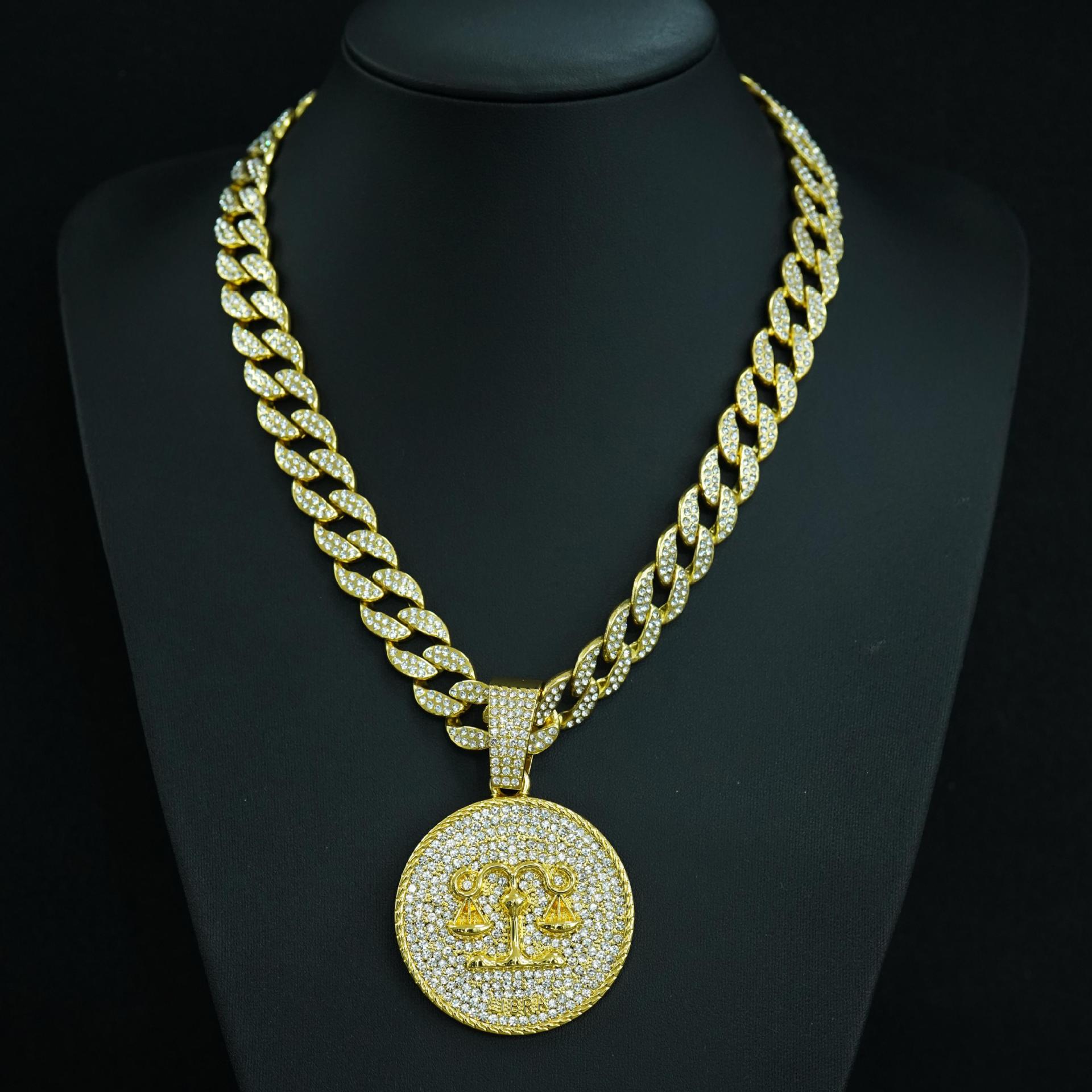 热销新品Libra天秤座圆盘吊坠象征公平的原则嘻哈古巴项链12星座