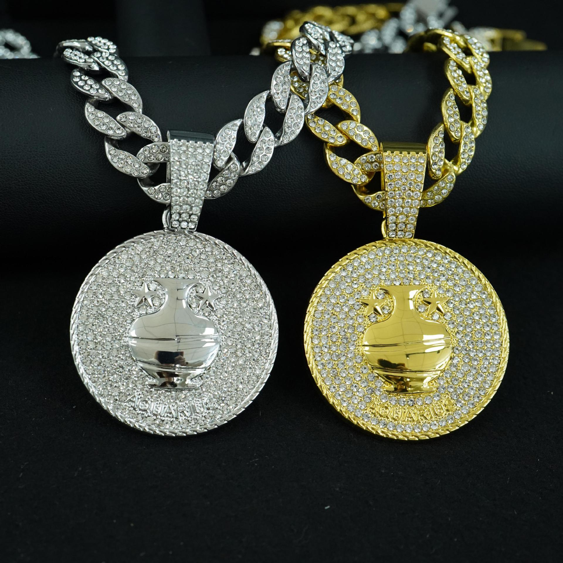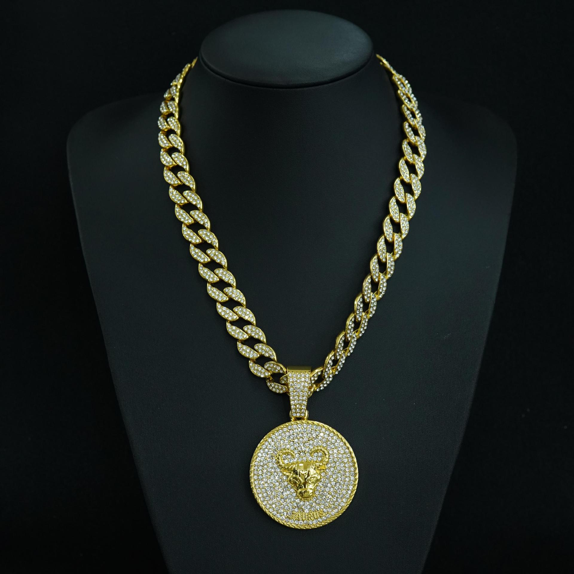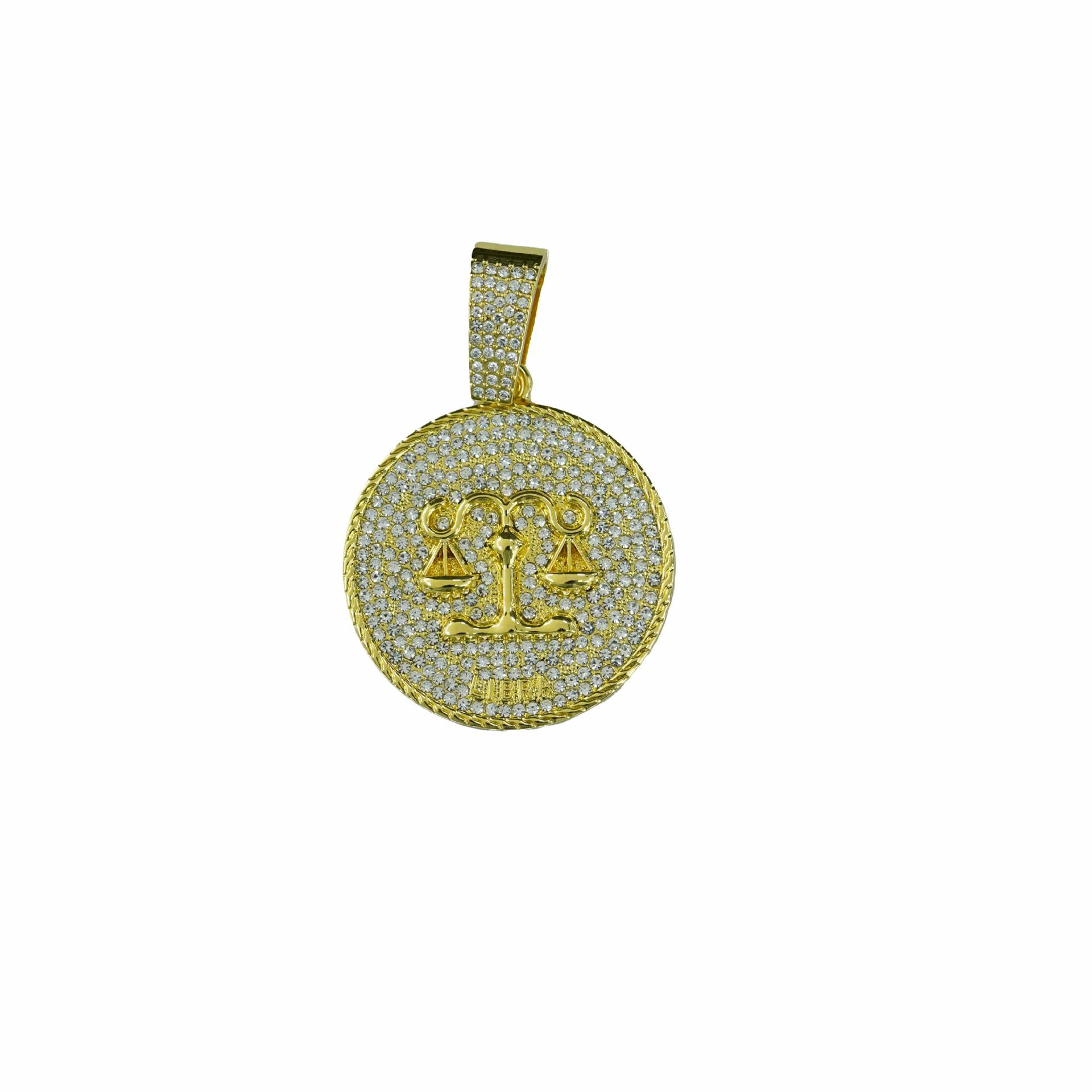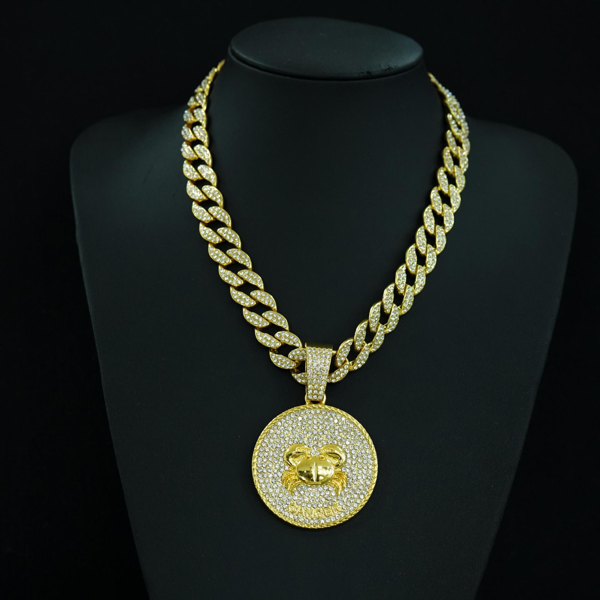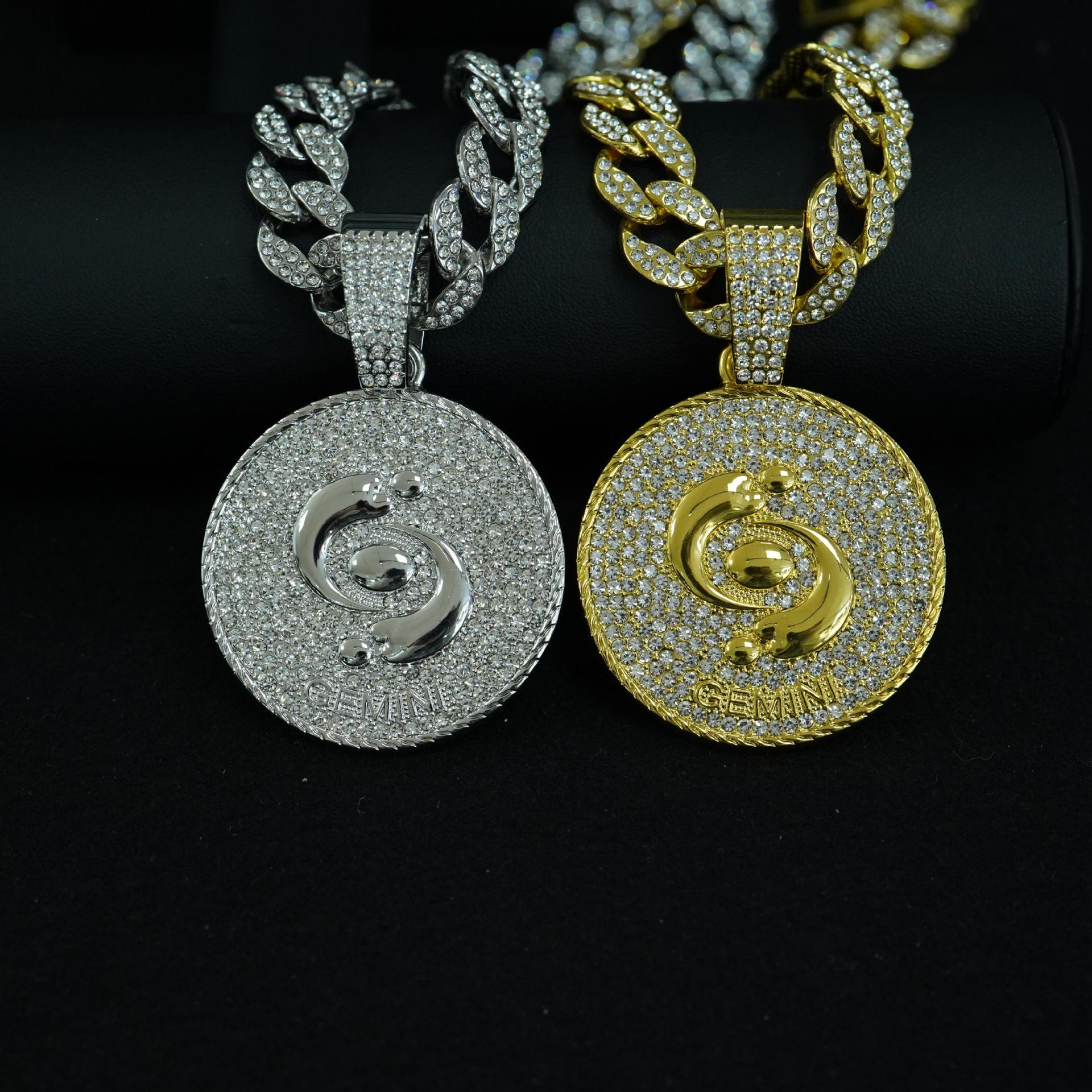 热销新品Libra天秤座圆盘吊坠象征公平的原则嘻哈古巴项链12星座