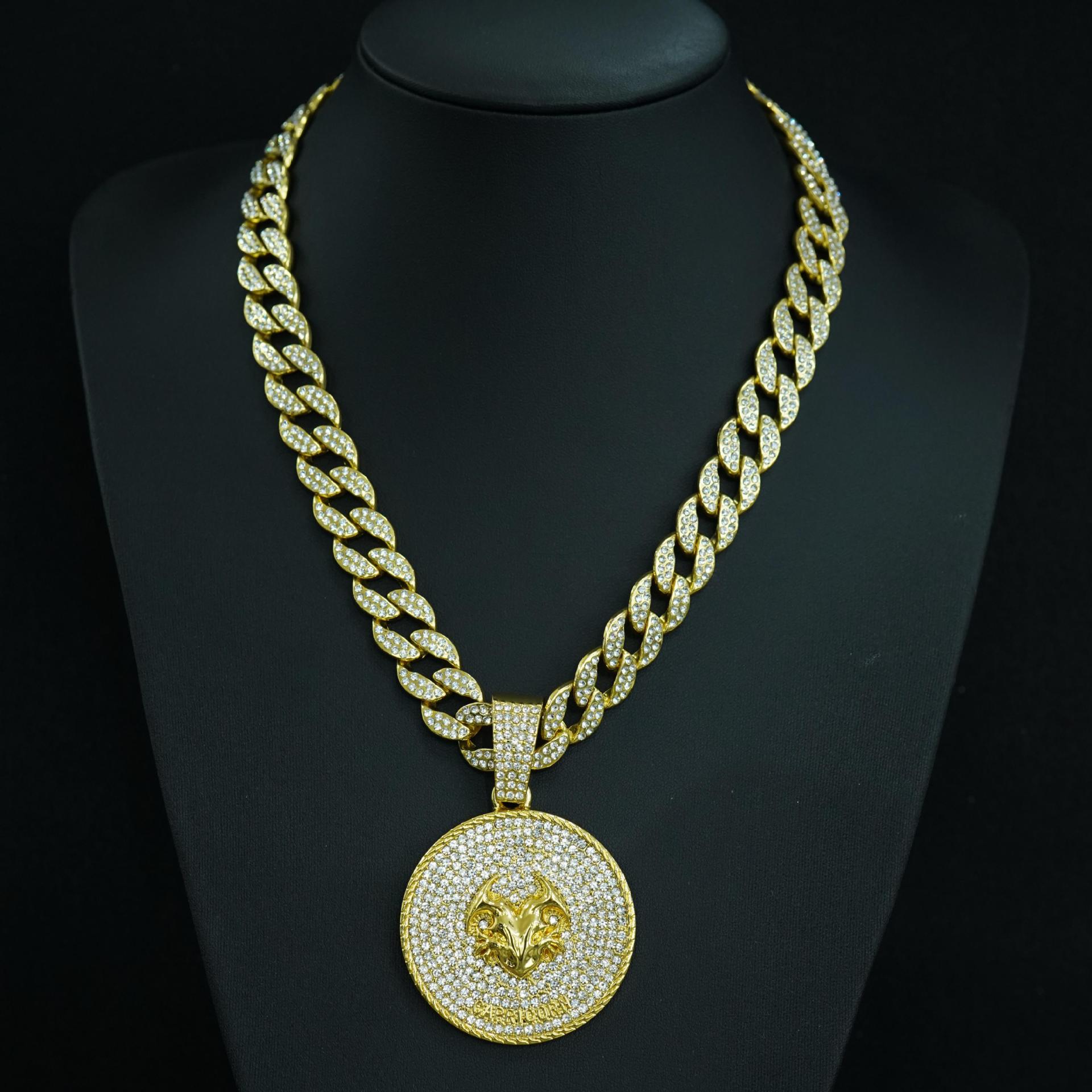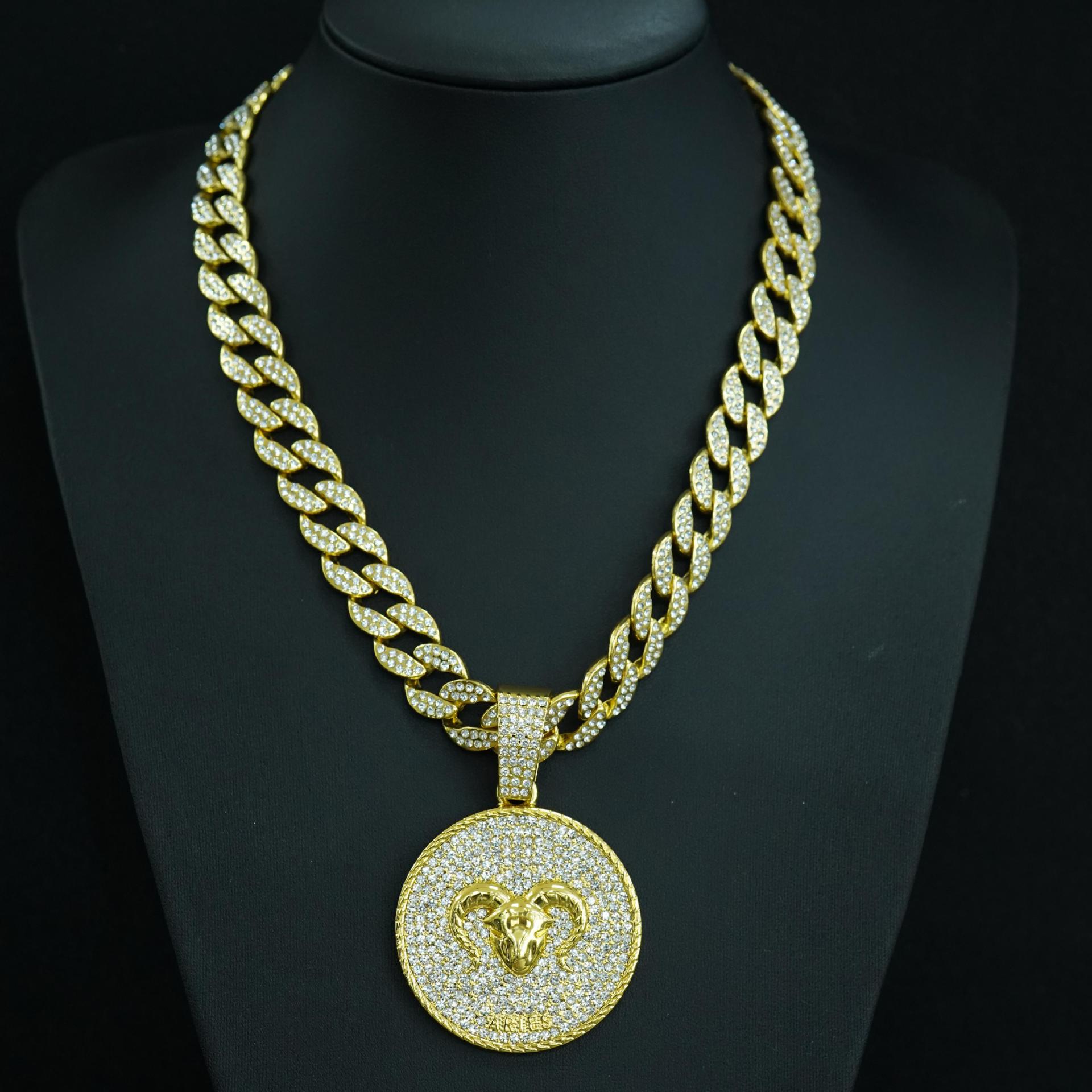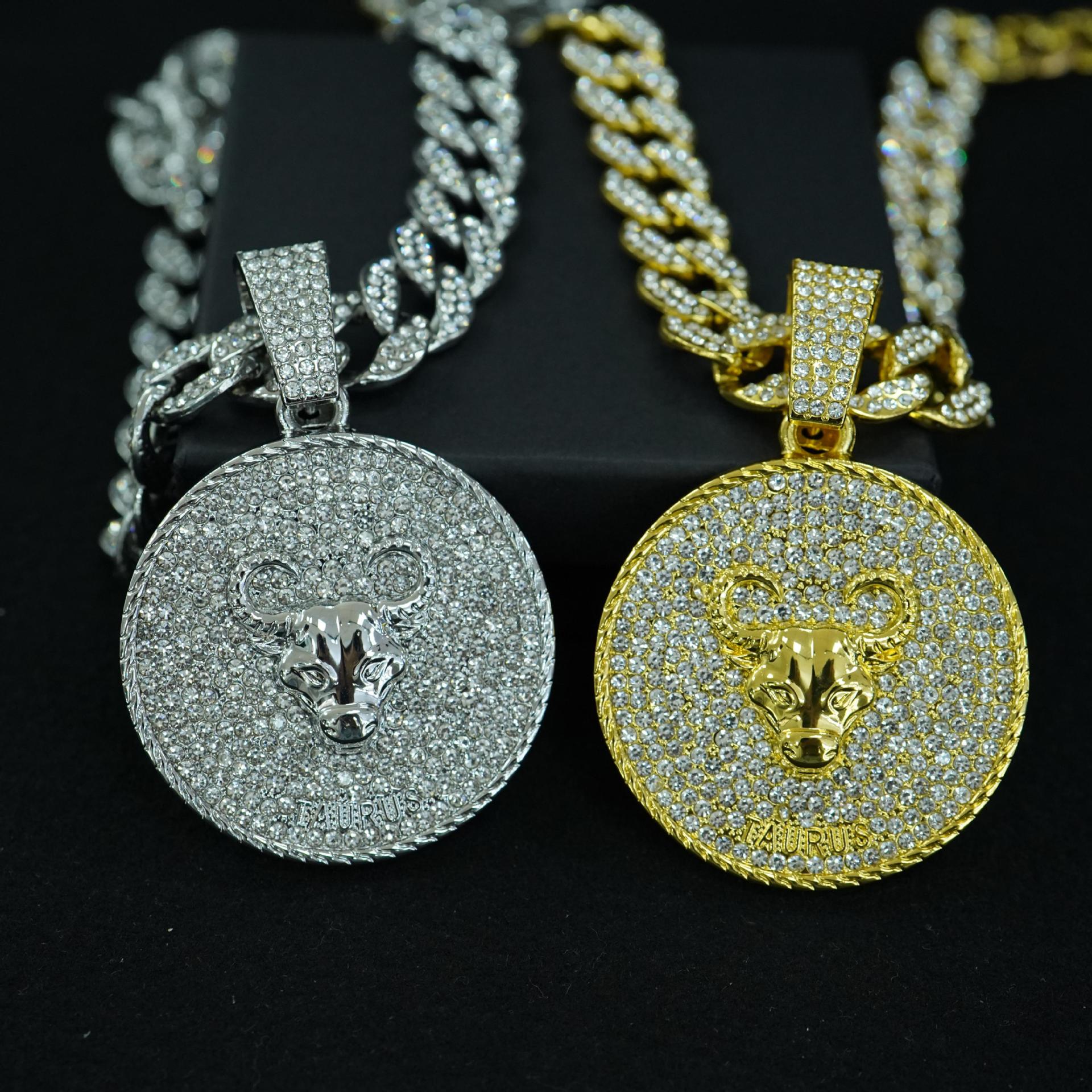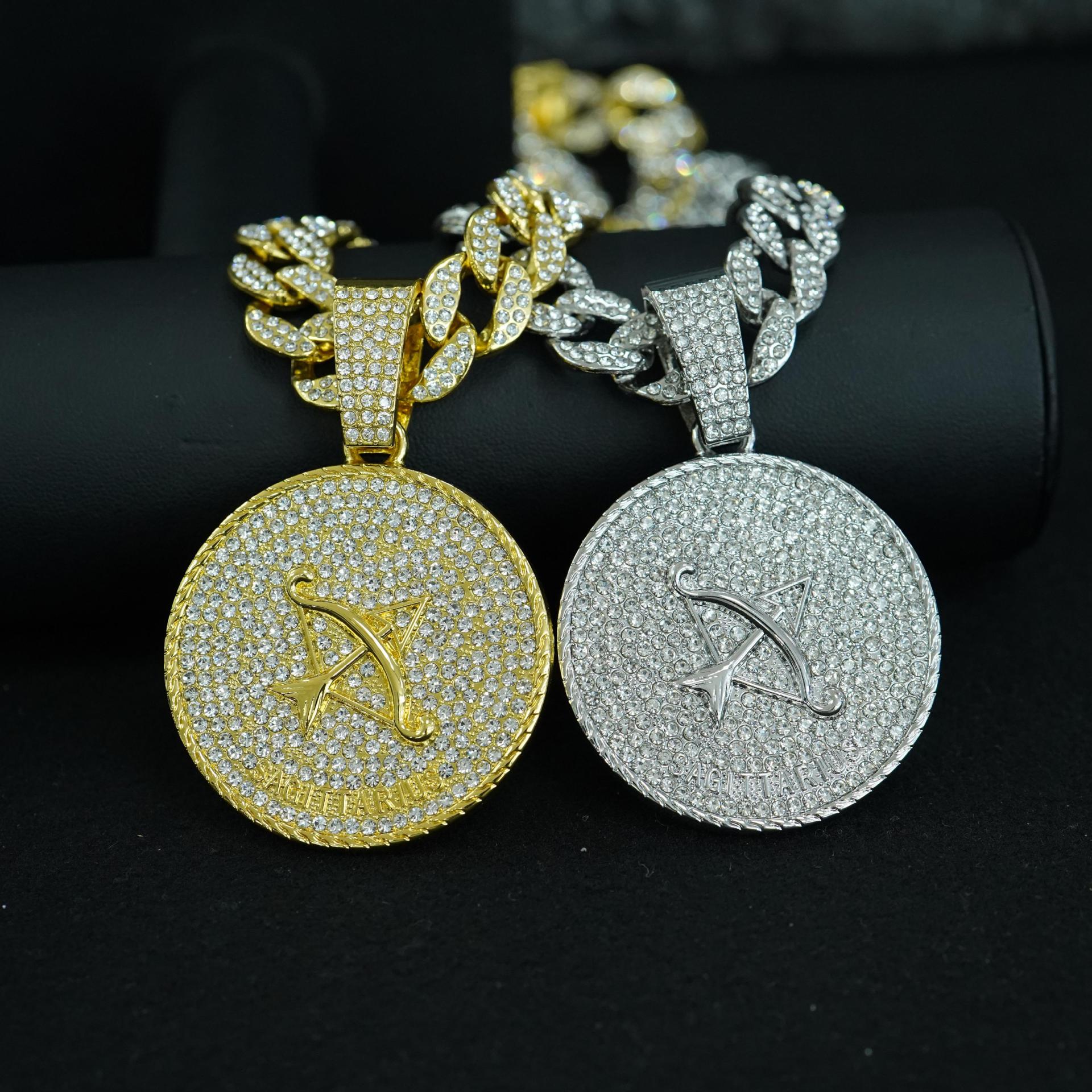热销新品Libra天秤座圆盘吊坠象征公平的原则嘻哈古巴项链12星座