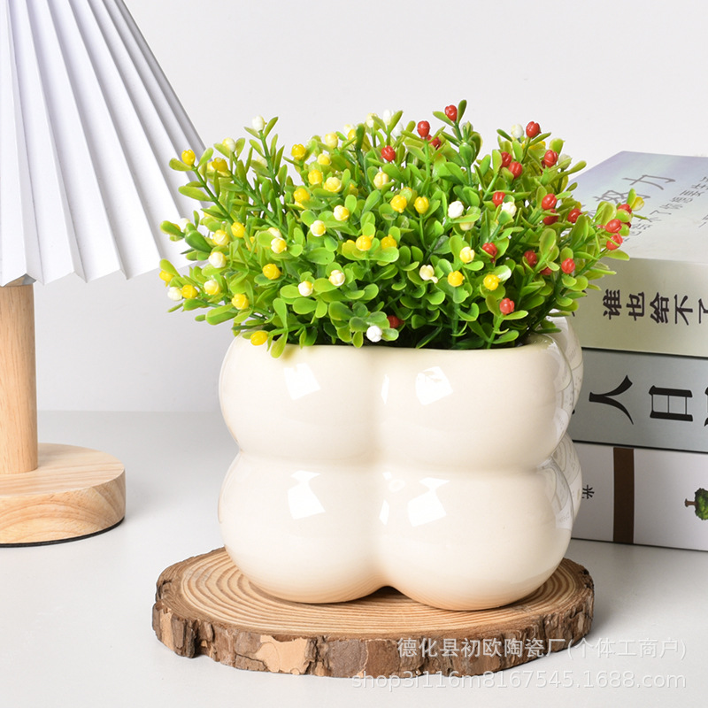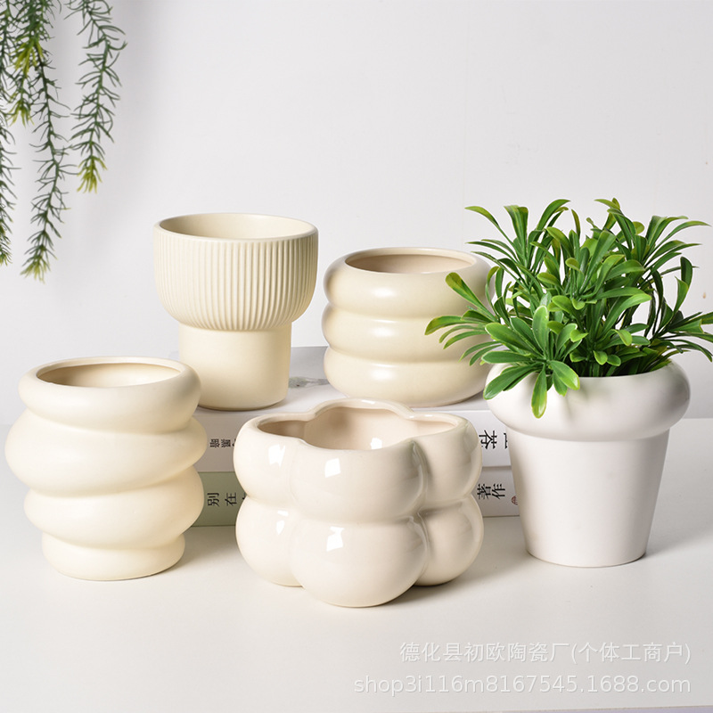 奶油风陶瓷花盆蝴蝶兰专用盆透气吸水家用绿植多肉兰花盆栽盆批发