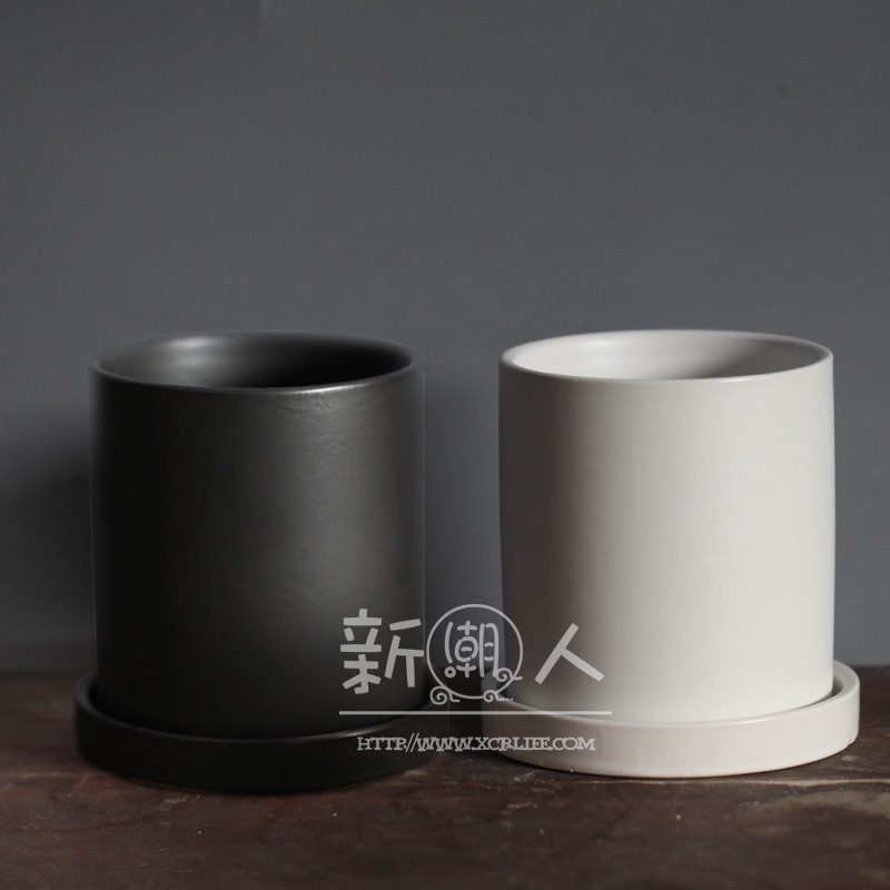 哑光黑白色陶瓷花盆简约大气多肉盆
