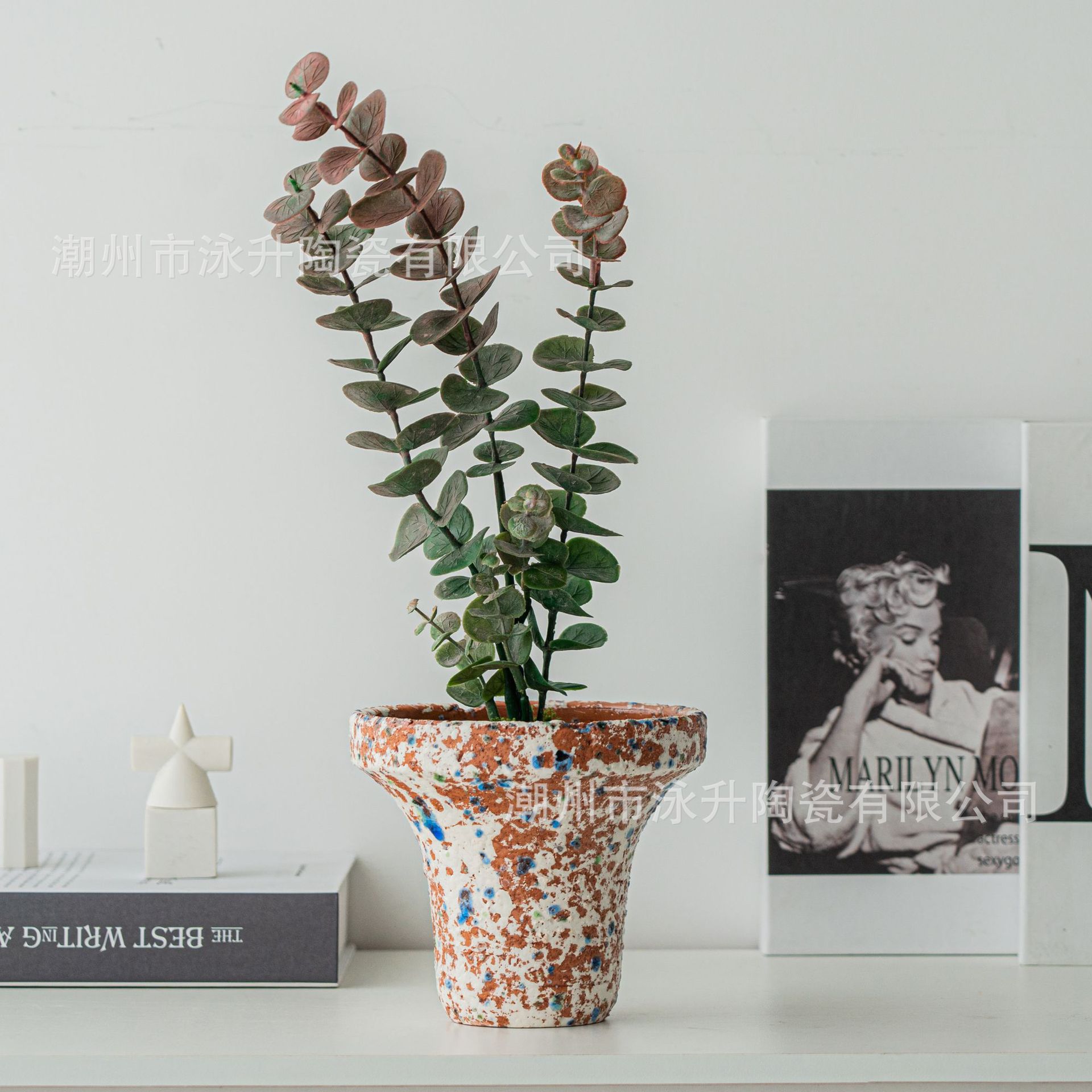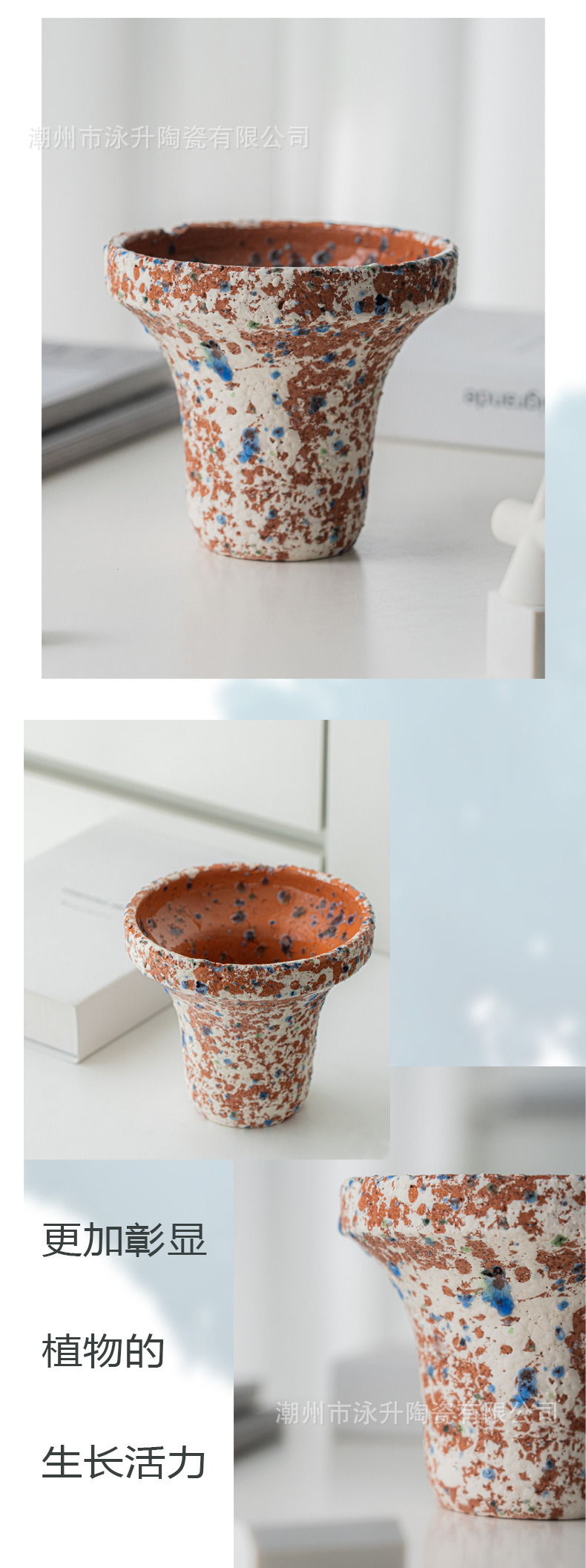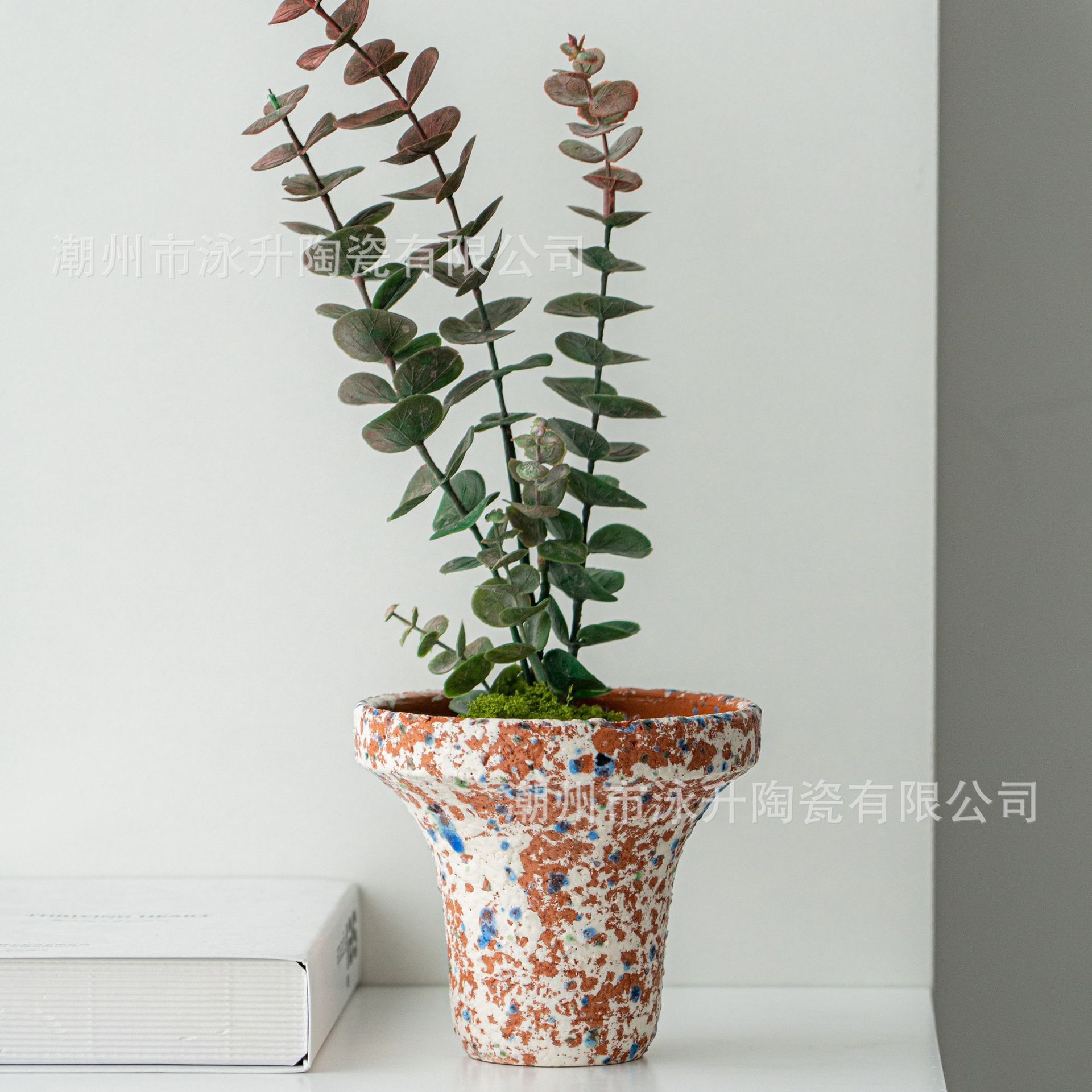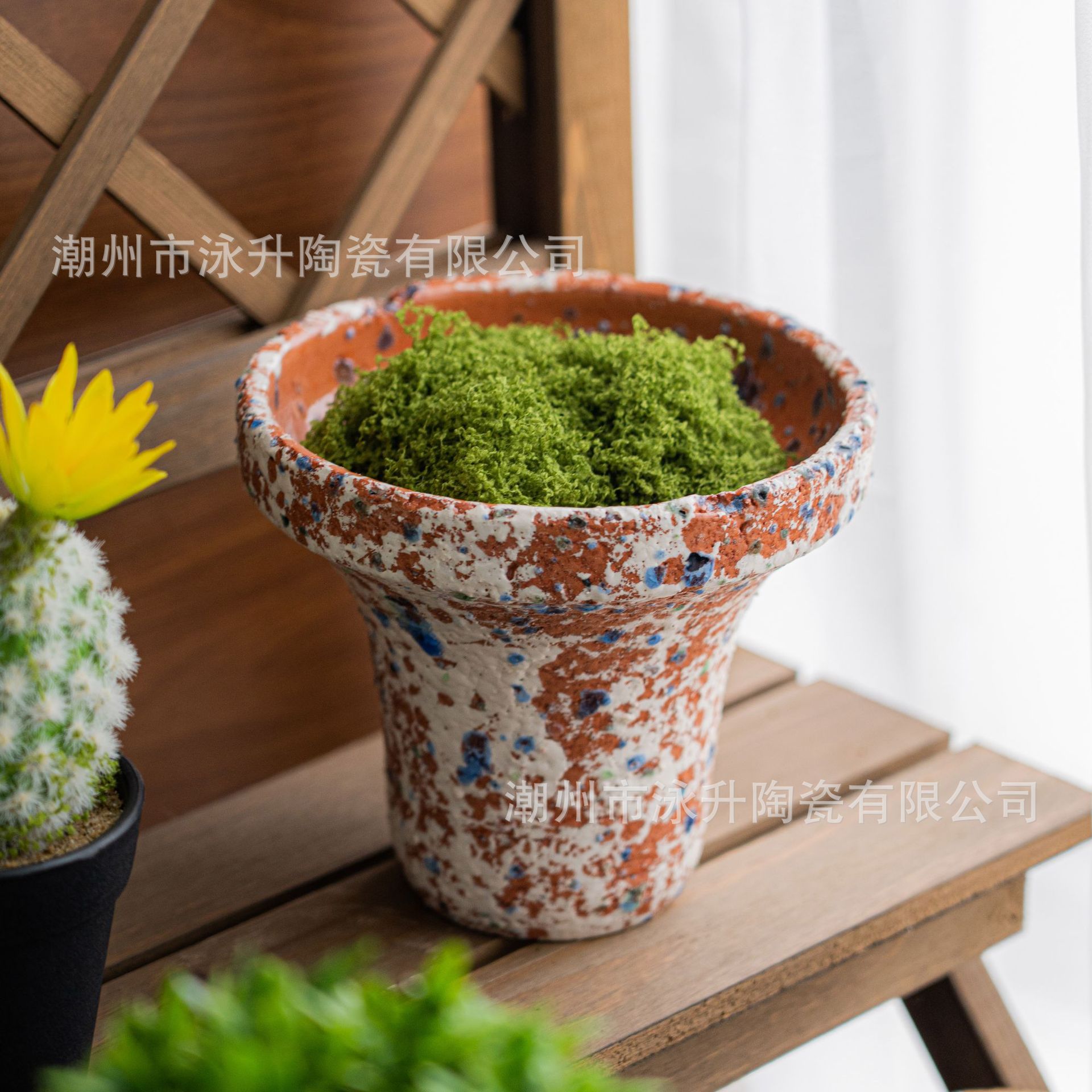 外贸田园风彩釉陶瓷花盆红陶土透气带孔花盆蝴蝶兰多肉盆厂家批发