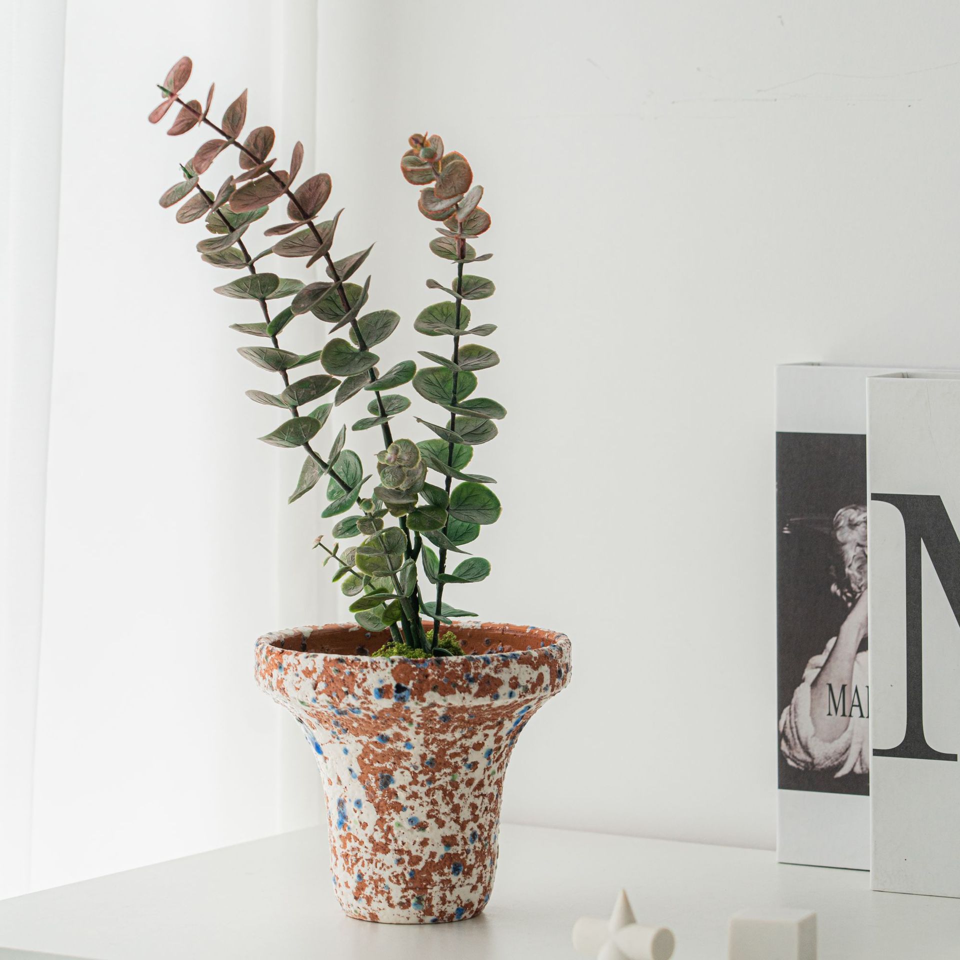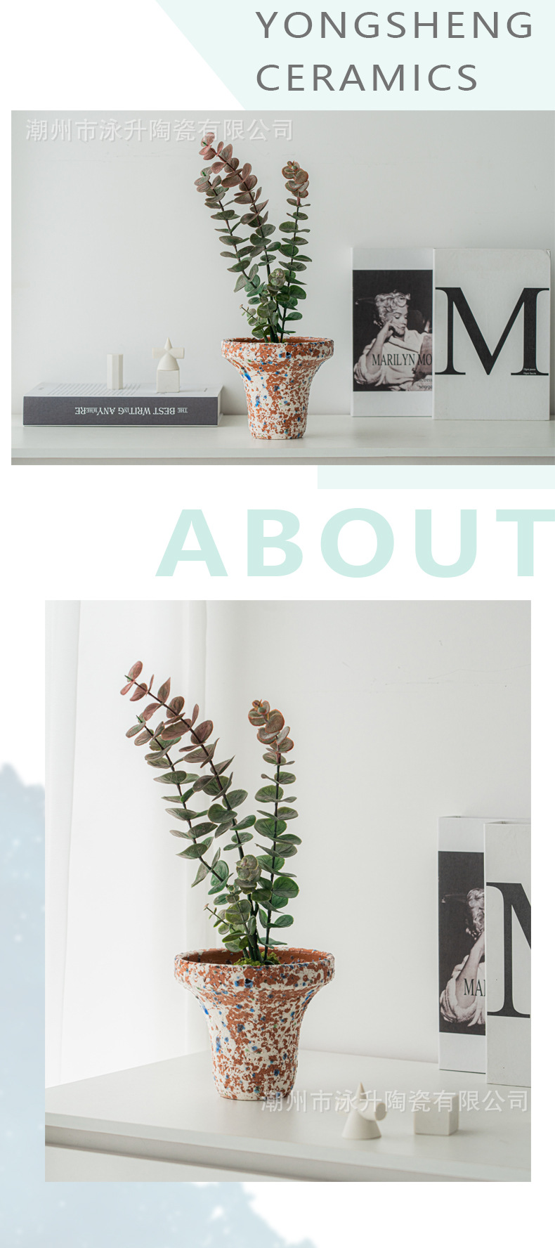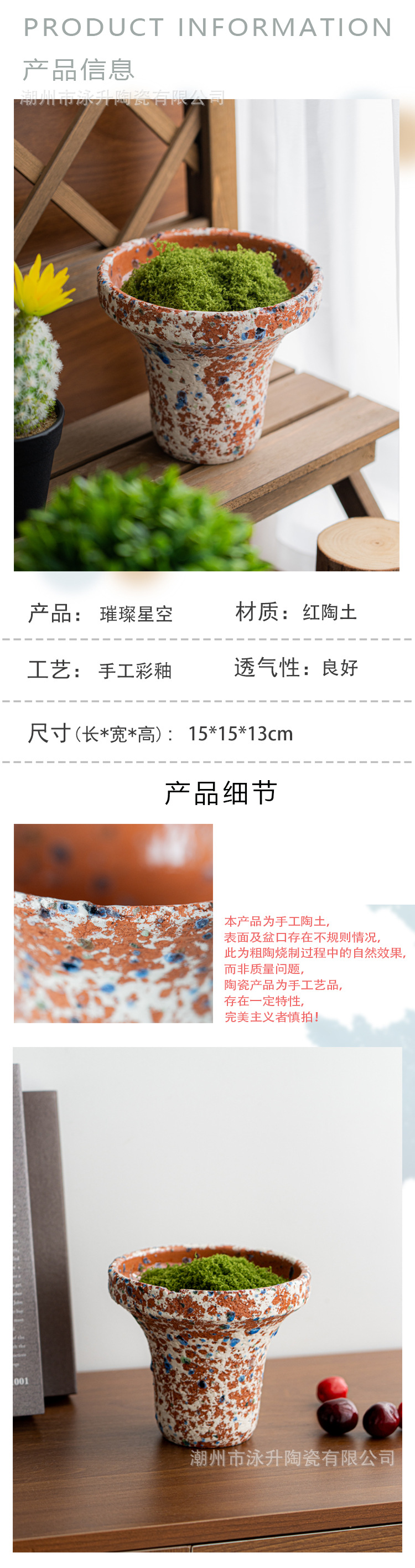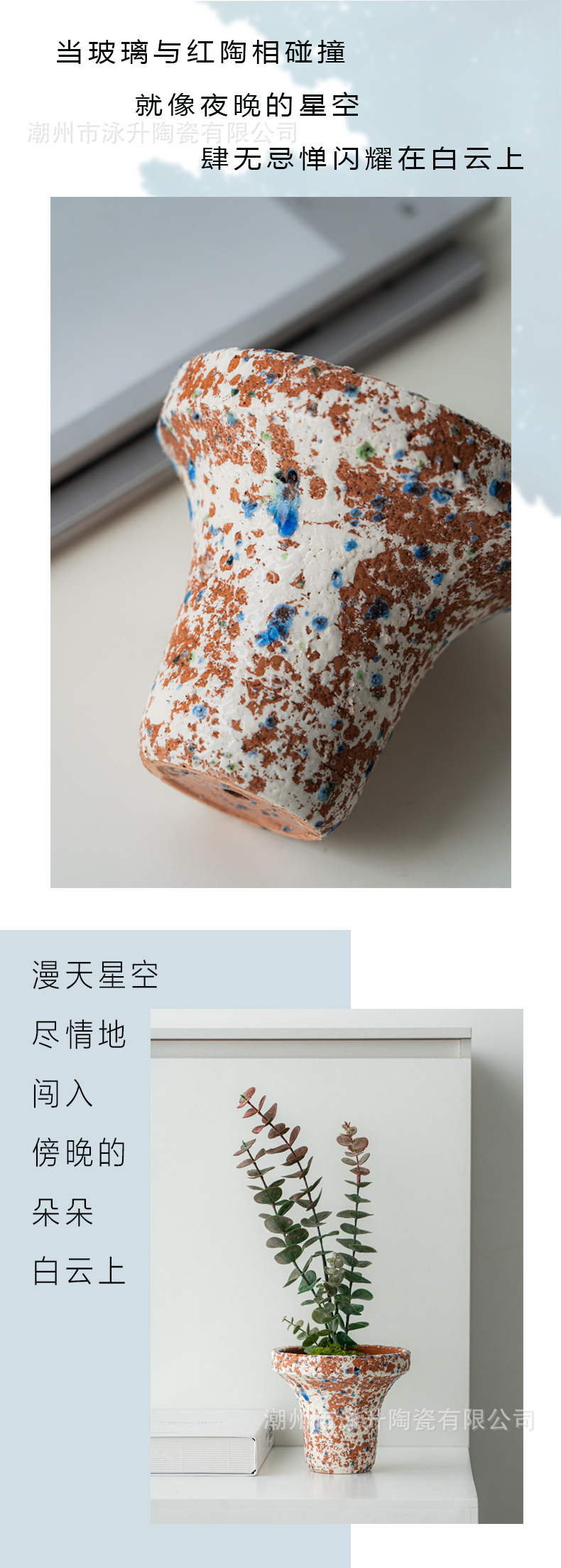 外贸田园风彩釉陶瓷花盆红陶土透气带孔花盆蝴蝶兰多肉盆厂家批发