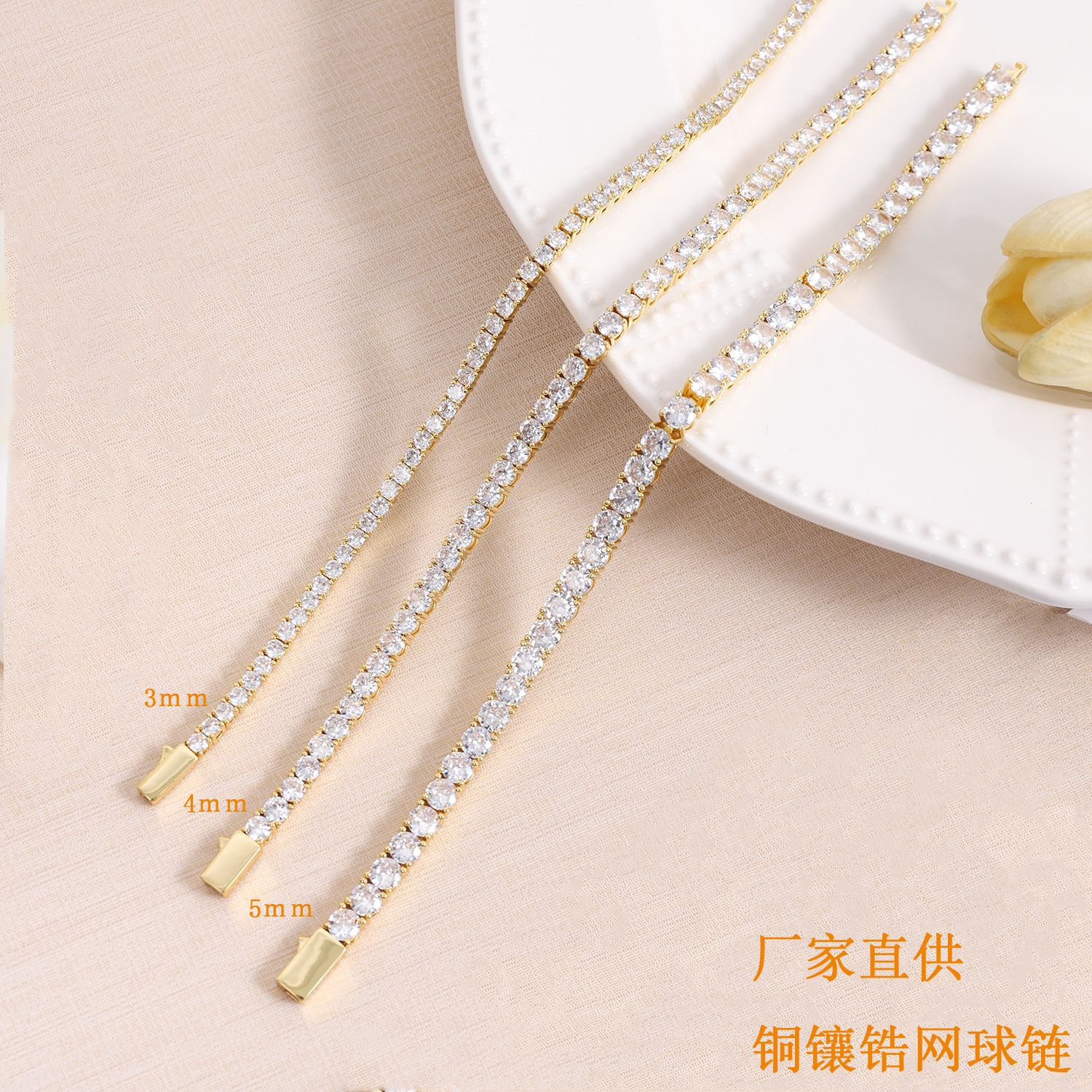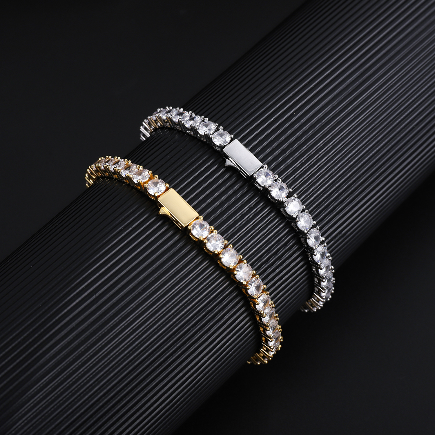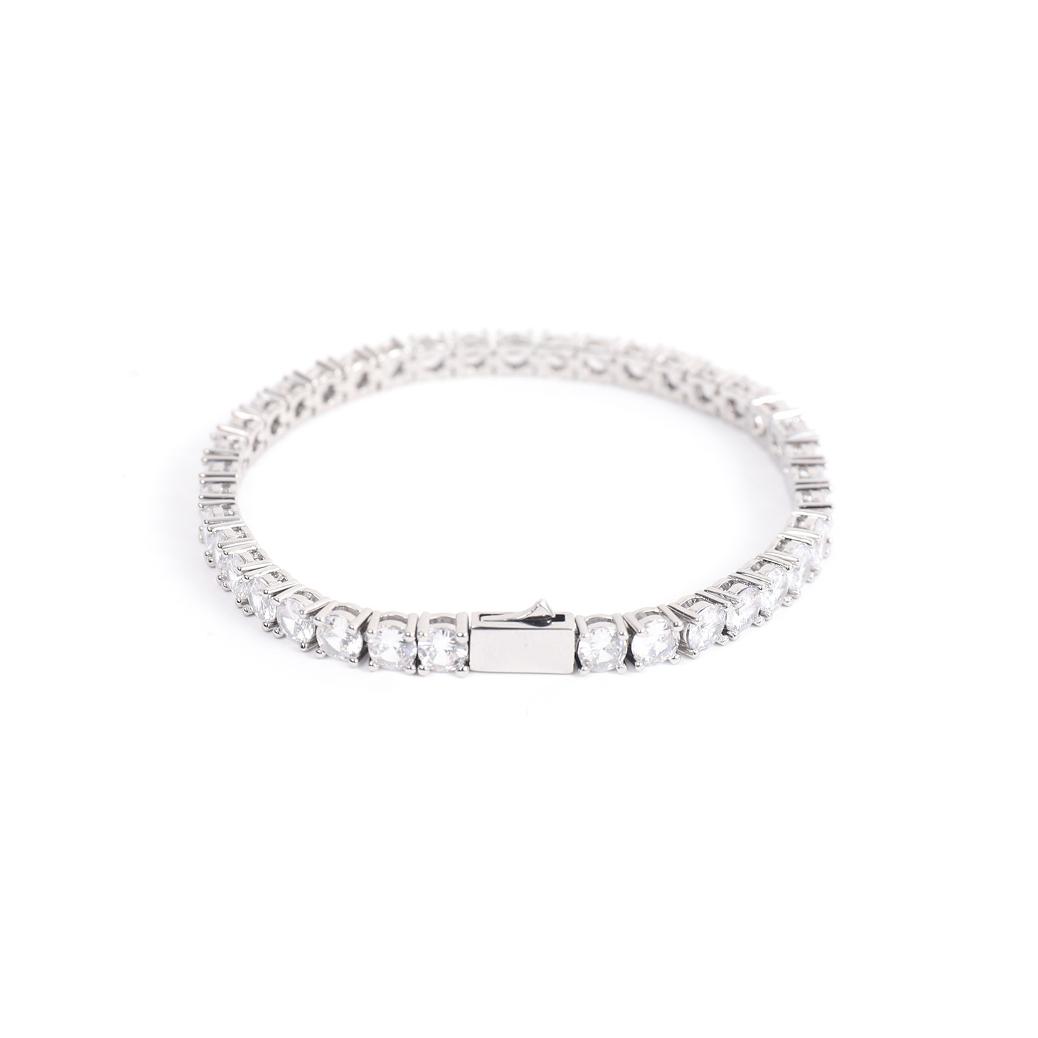 嘻哈铜款易扣爪链网球手链 3mm 4mm 5mm锆石单排嘻哈手链男女通用