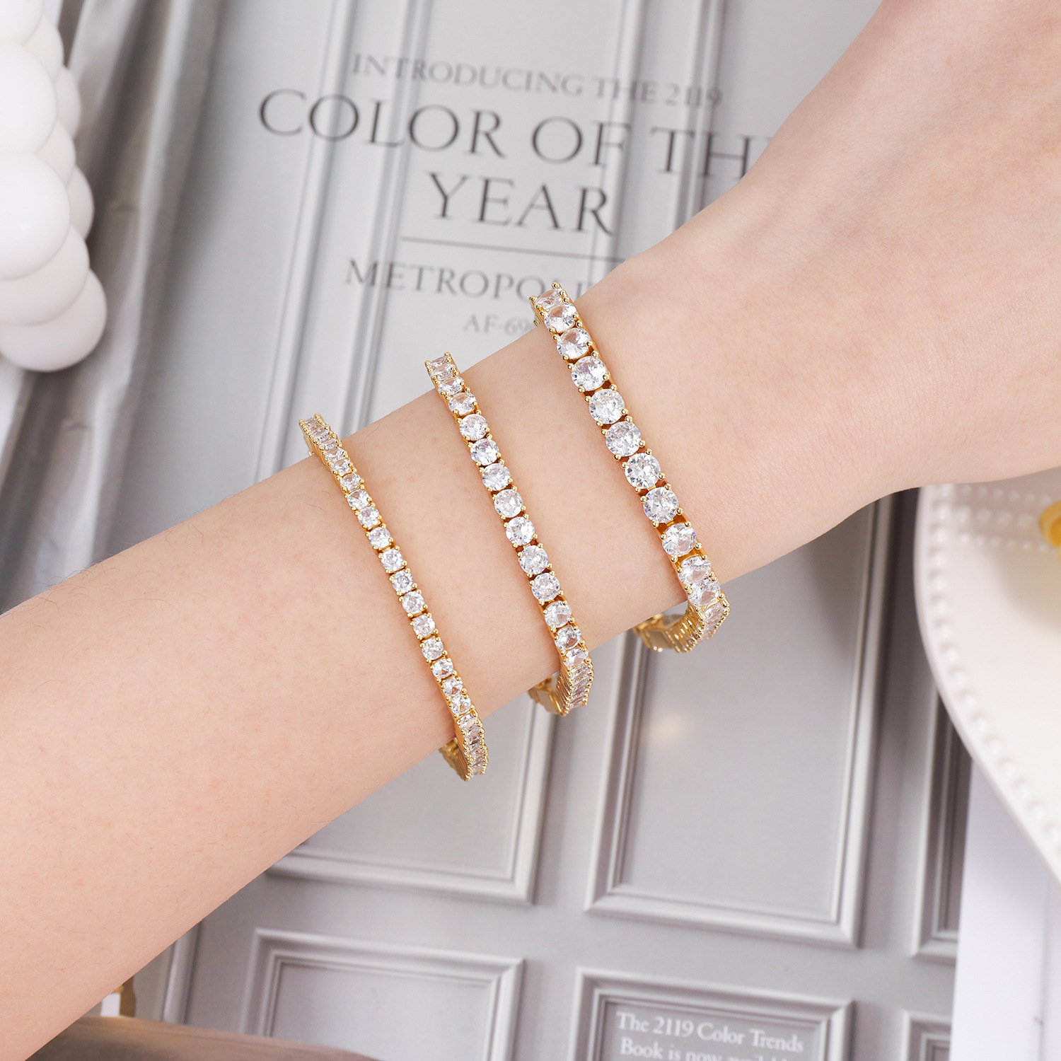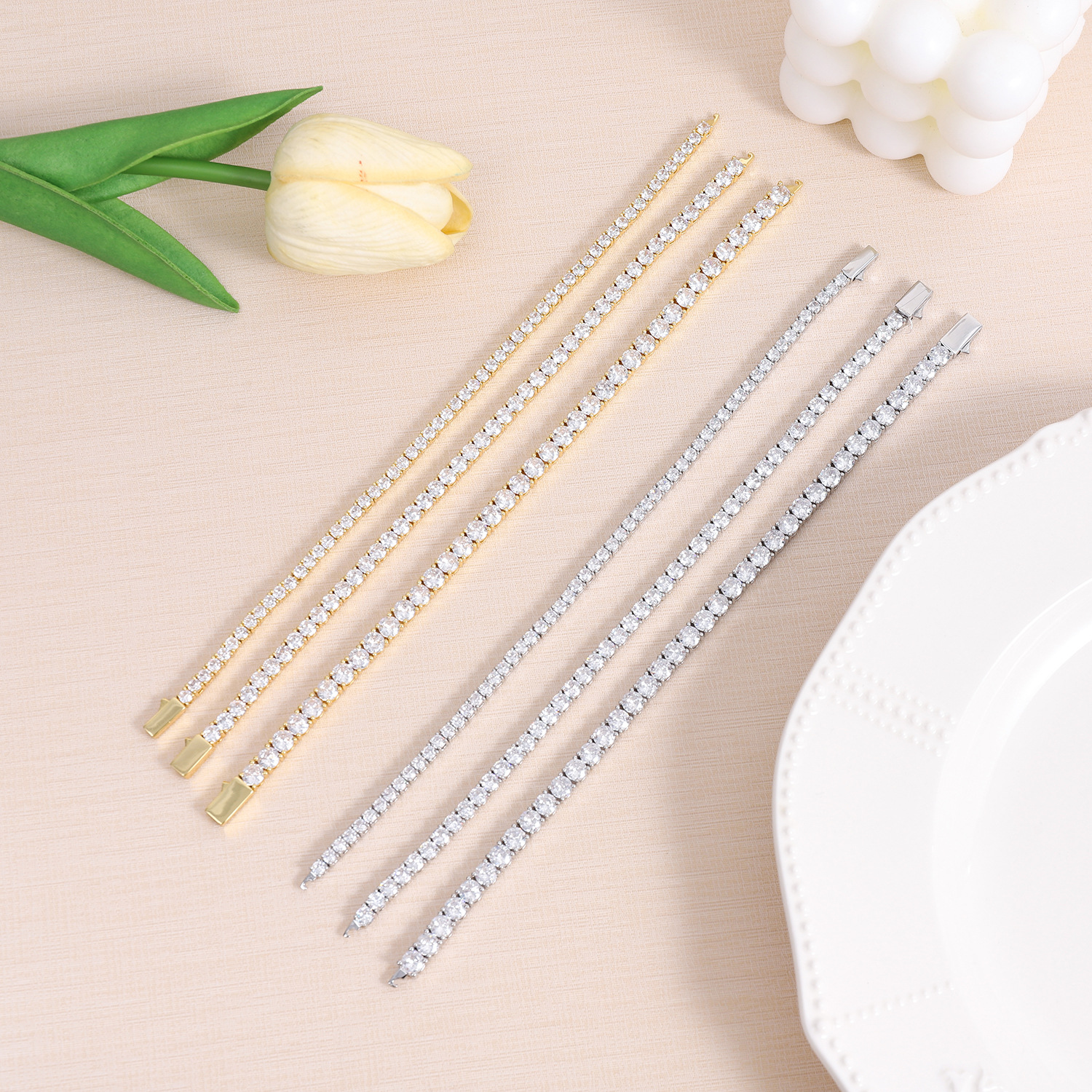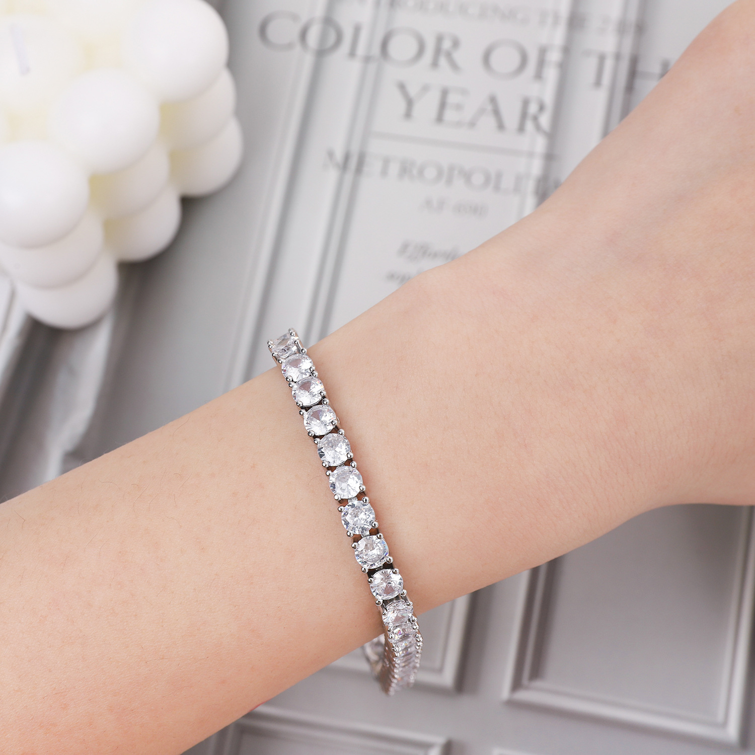 嘻哈铜款易扣爪链网球手链 3mm 4mm 5mm锆石单排嘻哈手链男女通用