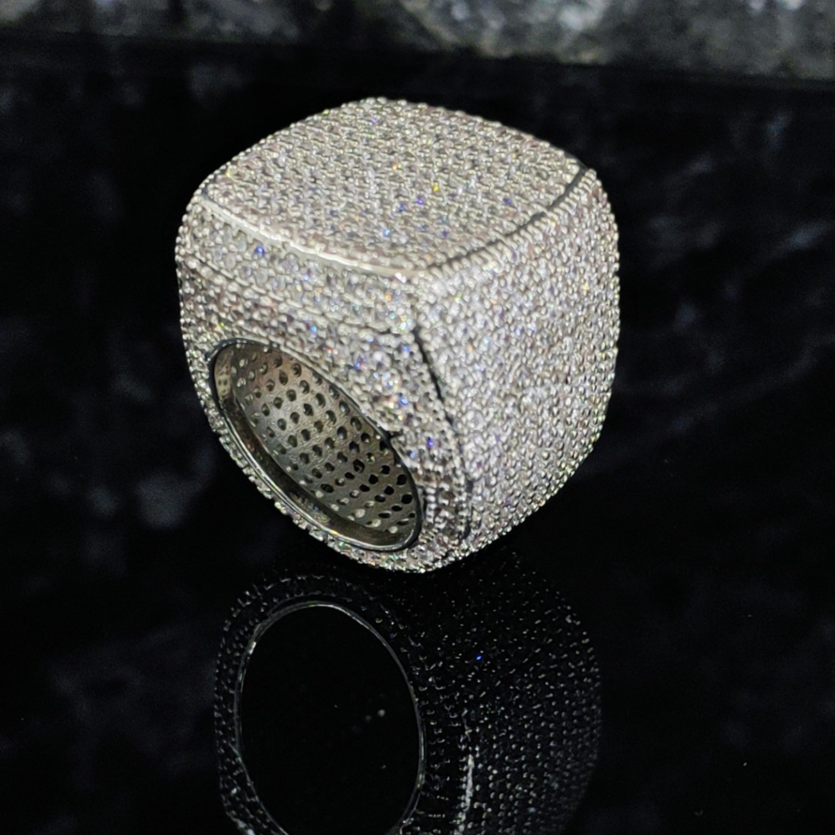 跨境欧美风嘻哈满钻大方块戒指铜镶锆石真金电镀时尚个性潮人指环
