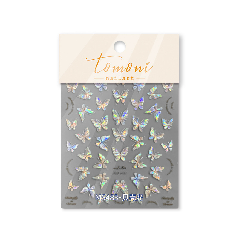 tomoni贝壳光美甲贴纸 莫失合作款桃米妮可爱指甲贴批发蝴蝶MS483