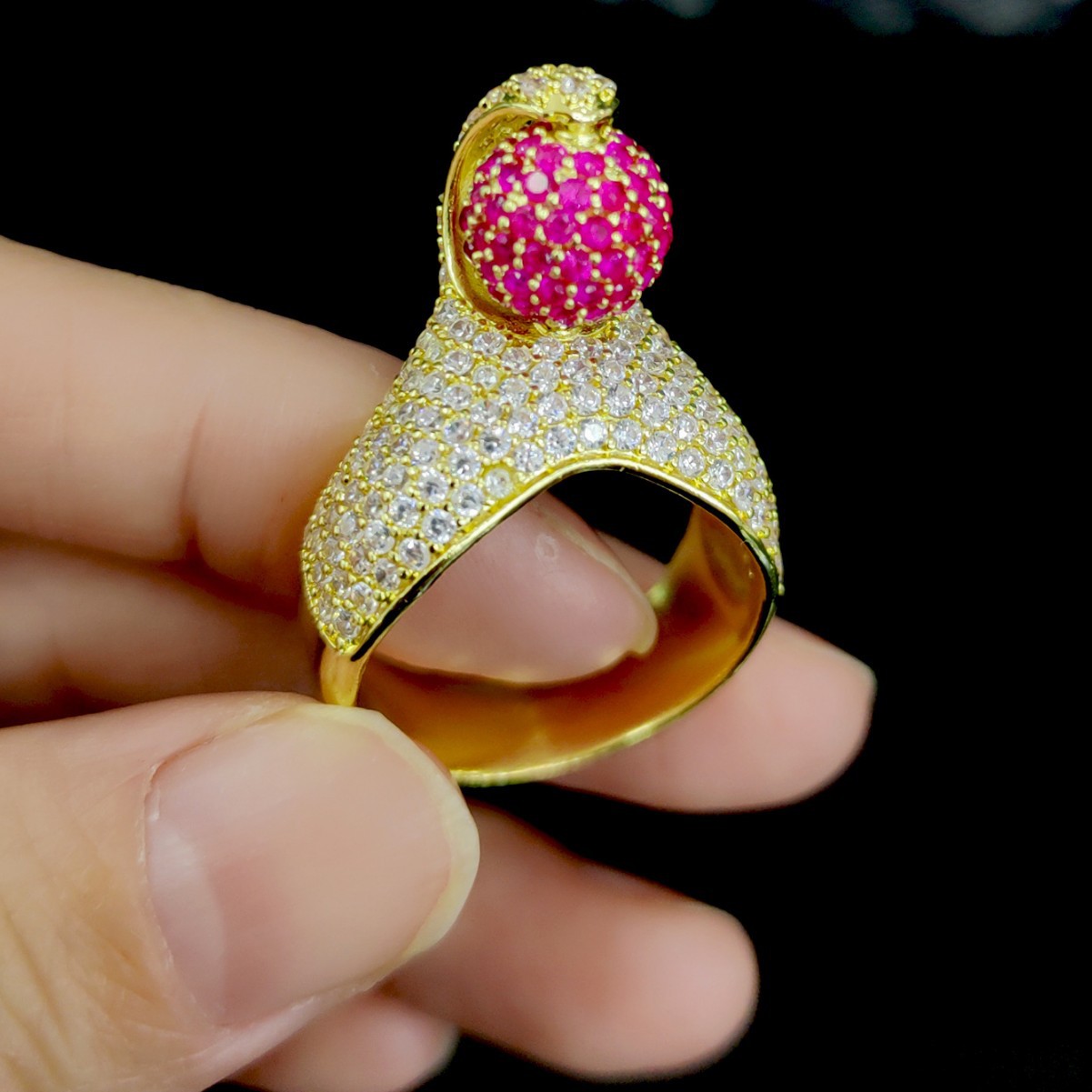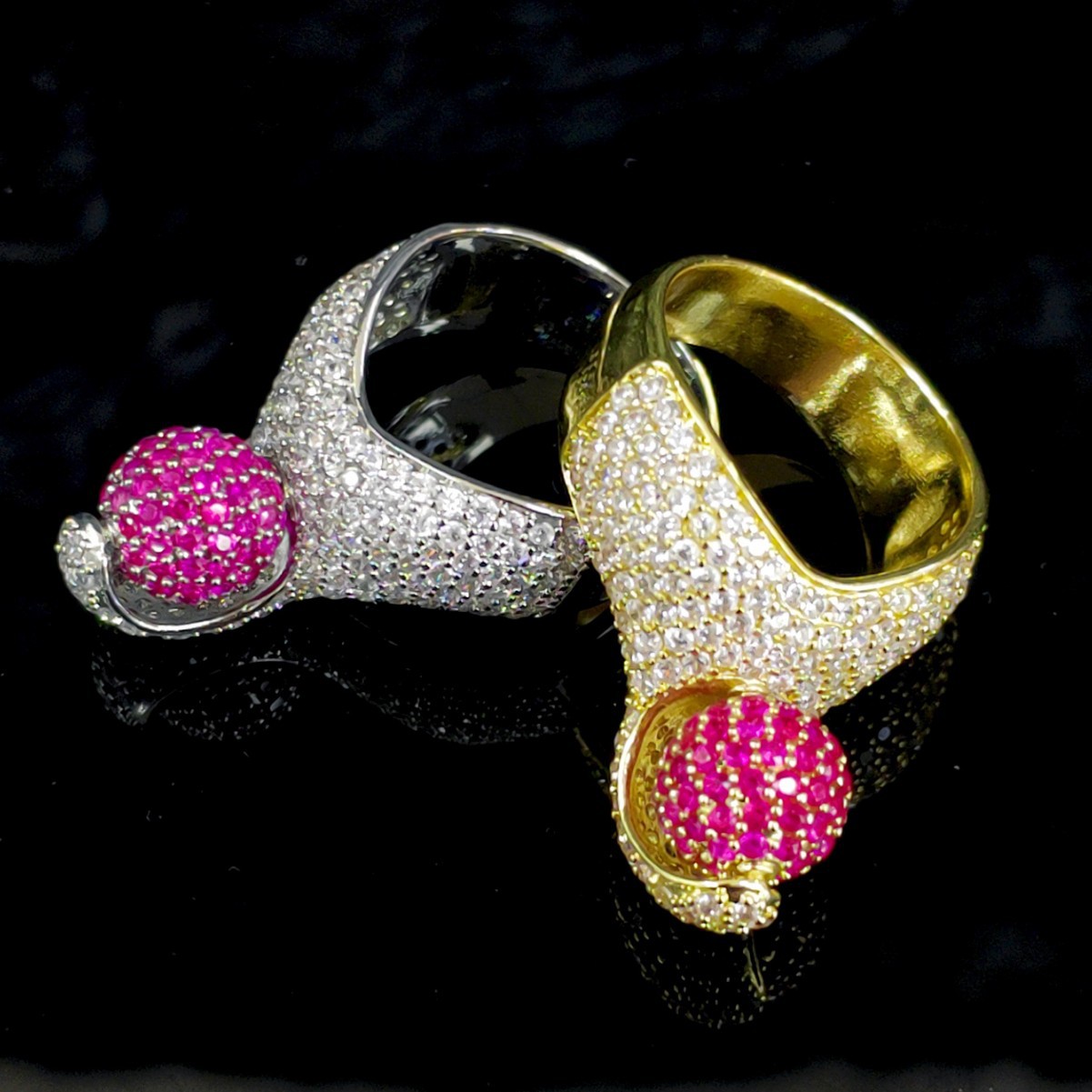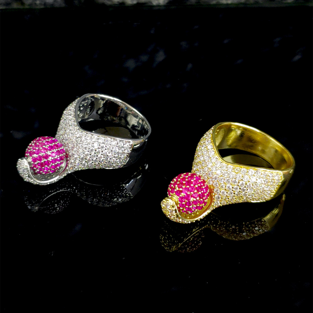 时尚新品红色转动星球满钻铜镶锆石男女戒指个性设计手饰厂家批发