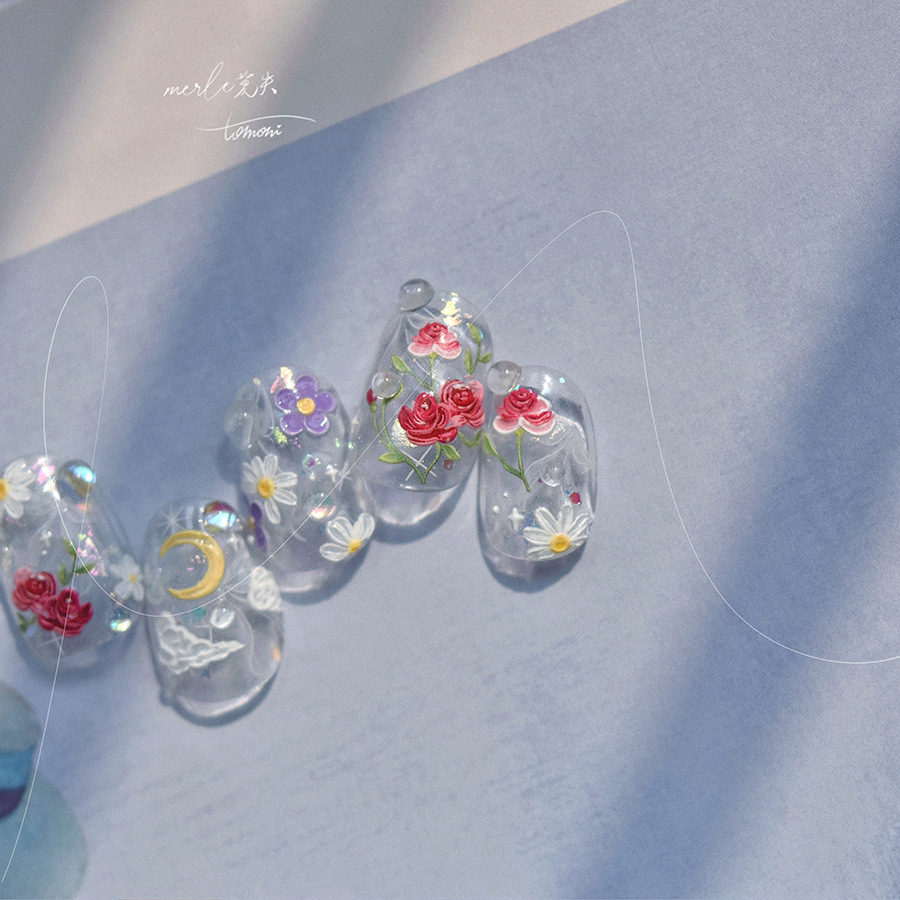 tomoni美甲贴纸立体 莫失合作款日系复古指甲贴批发红色玫瑰MS563