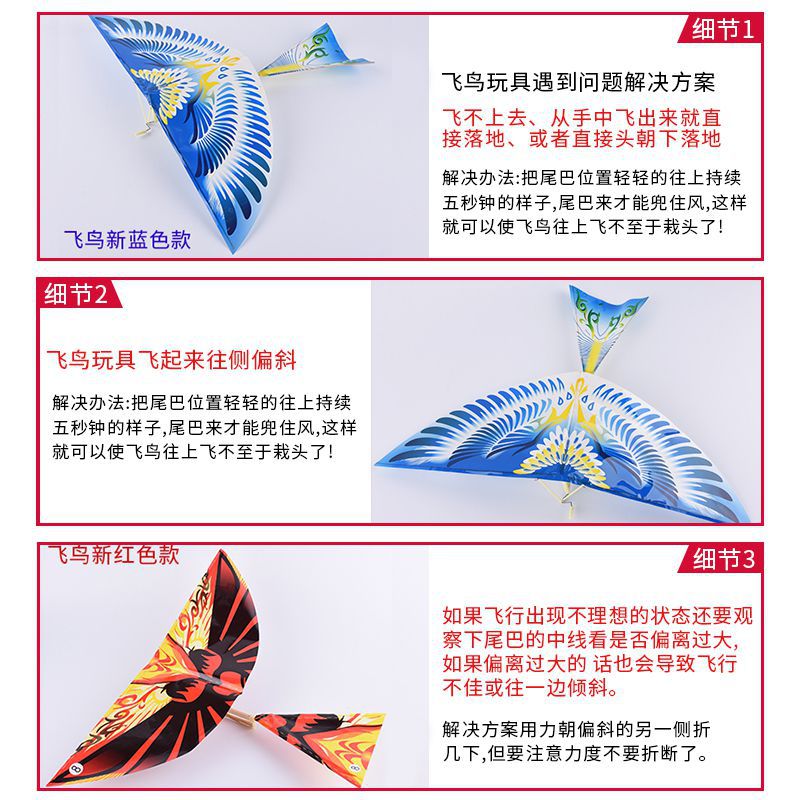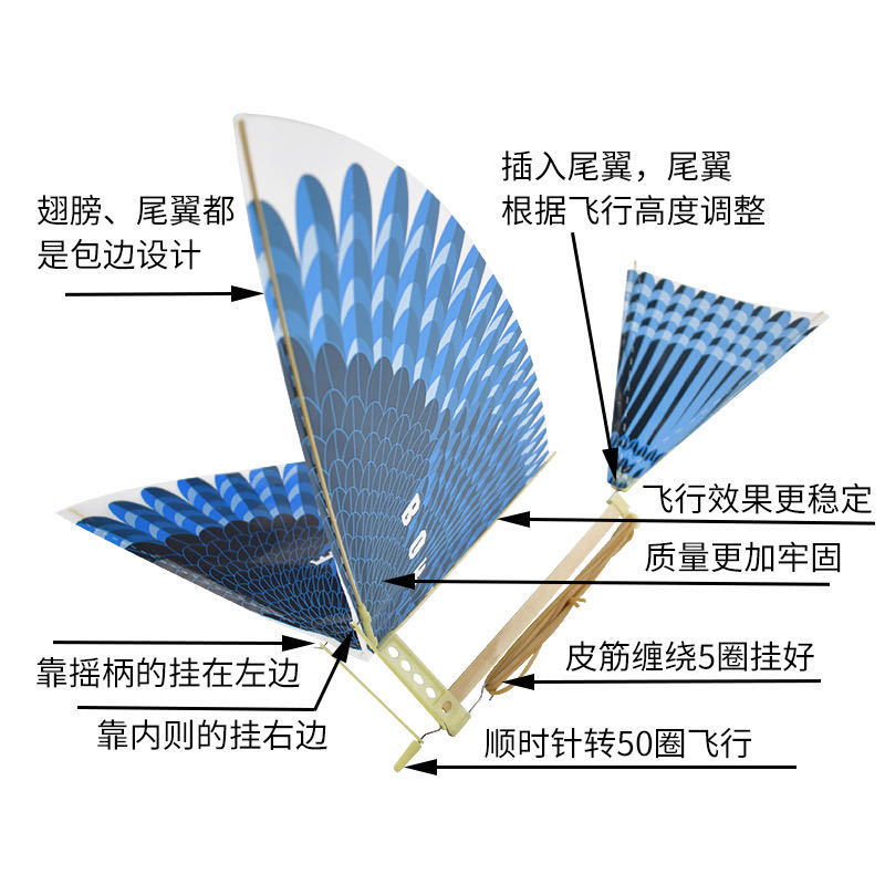 抖音同款大号鲁班飞鸟橡皮筋奇特动力飞鸟会飞的鸟扑翼鸟户外玩具