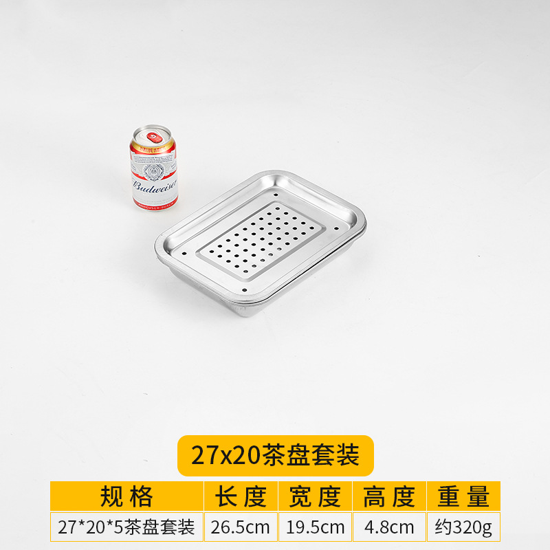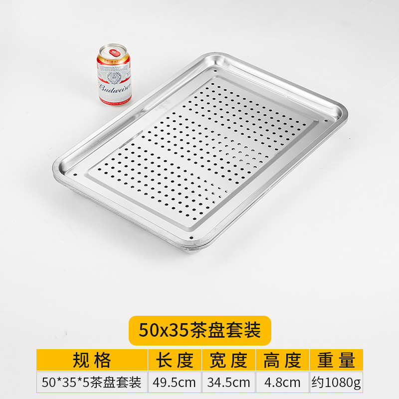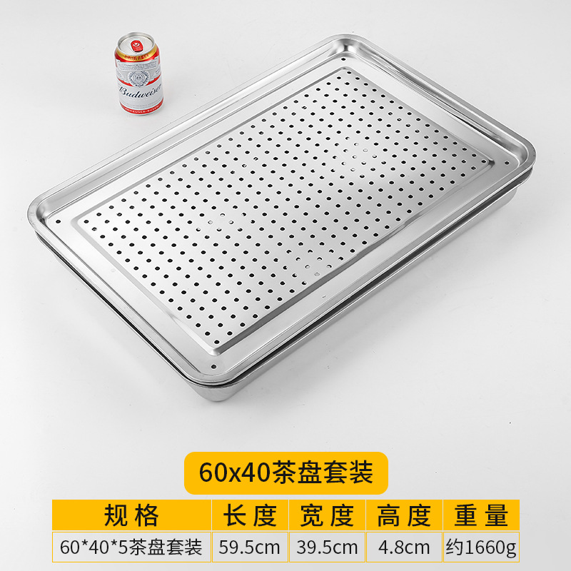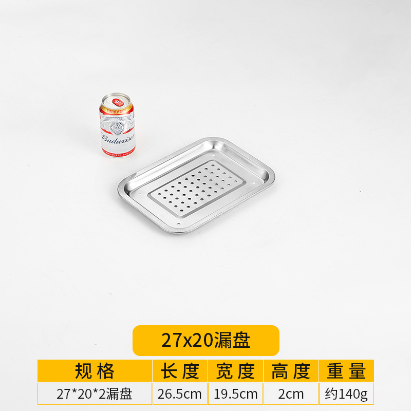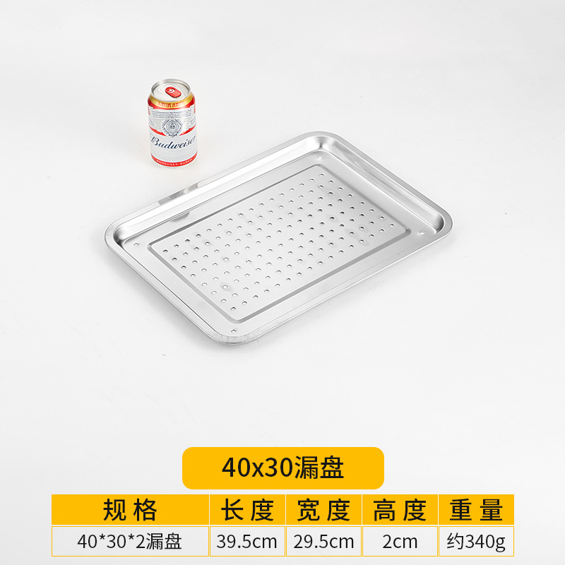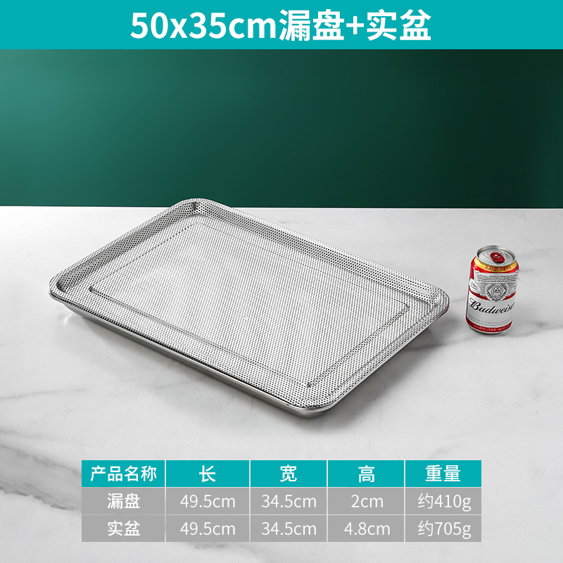 不锈钢沥水盘长方形托盘茶盘双层滤水盘商用漏油盘带孔蒸盘铁盘子