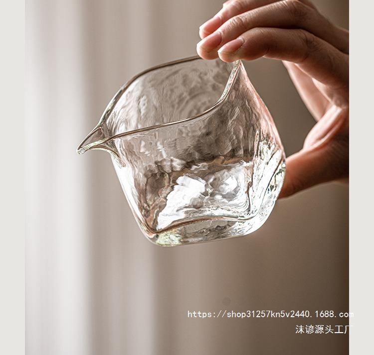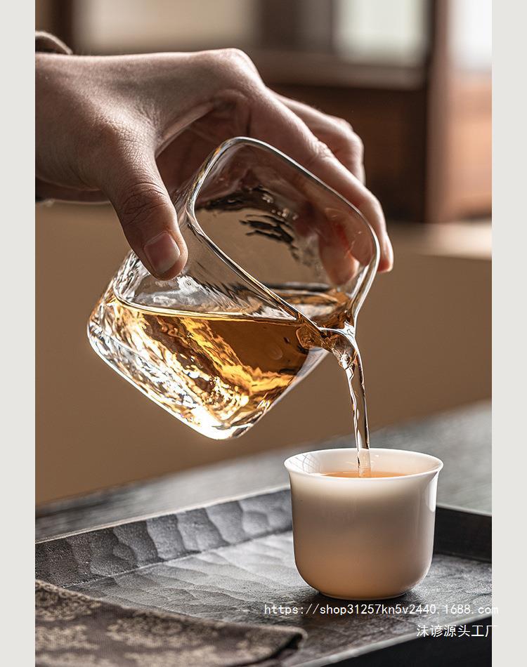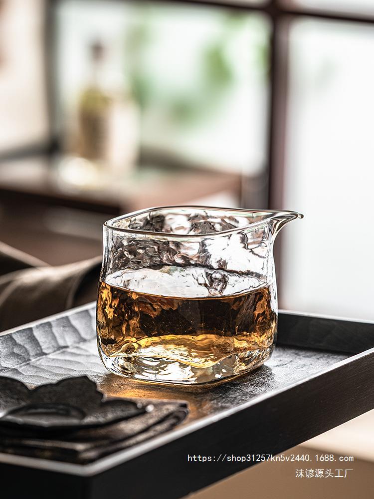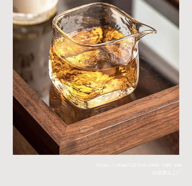 耐热鹰嘴方形公道杯玻璃耐高温锤纹方公杯功夫茶具茶海分茶器