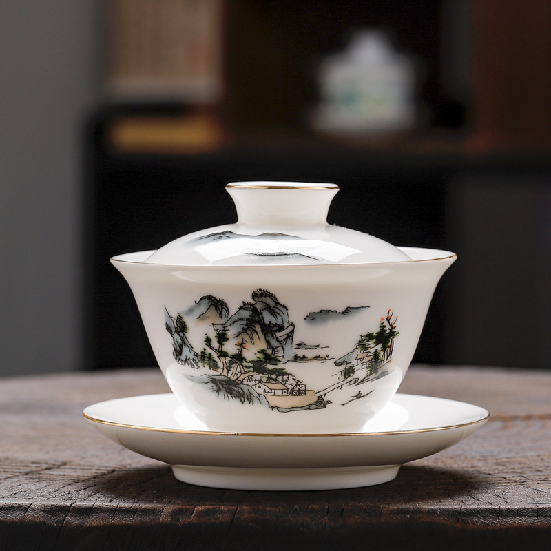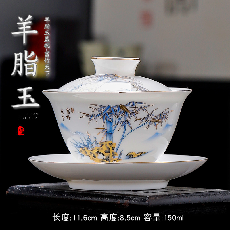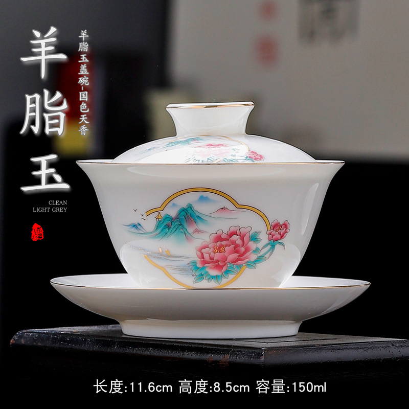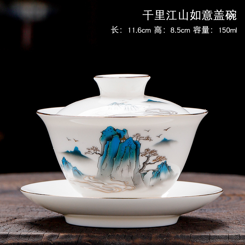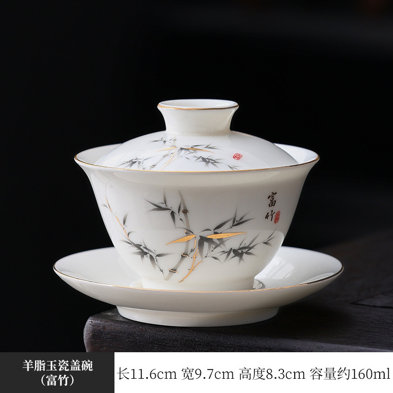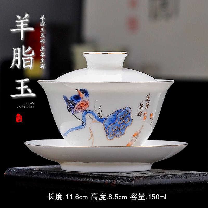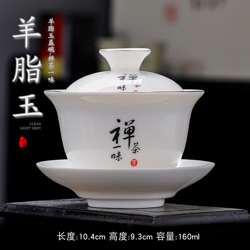 羊脂玉白瓷三才盖碗功夫茶具泡茶敬茶碗防烫大号家用办公礼品logo
