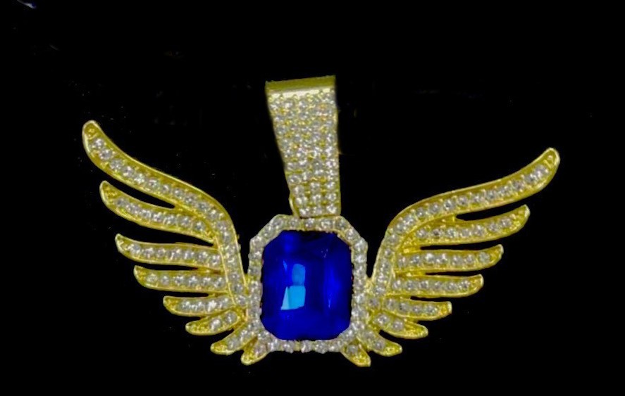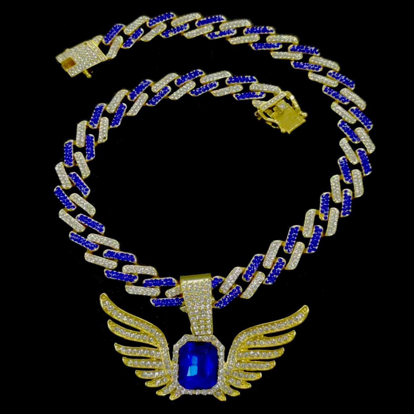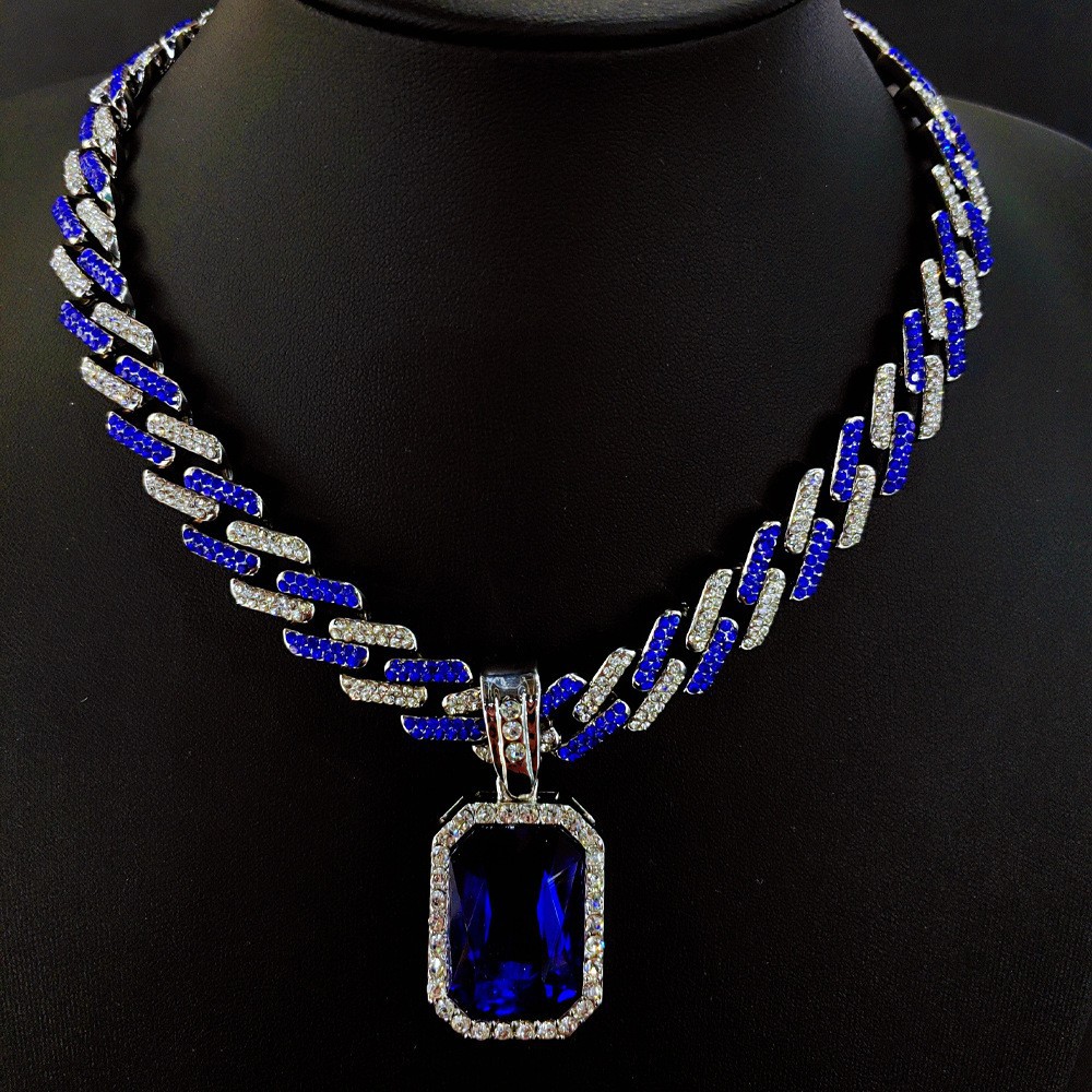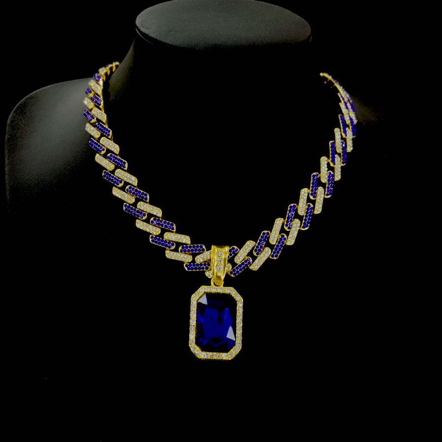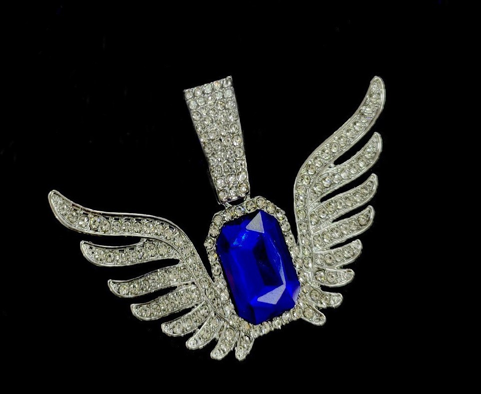 欧美小众合金个性蓝宝石翅膀吊坠菱形嘻哈项链复古项链首饰饰品男