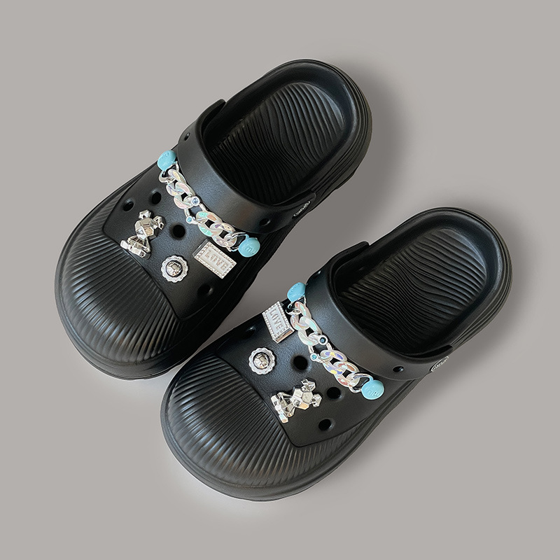 洞洞鞋2025年春季新款女士可爱串珠包头厚底休闲时尚舒适沙滩拖鞋