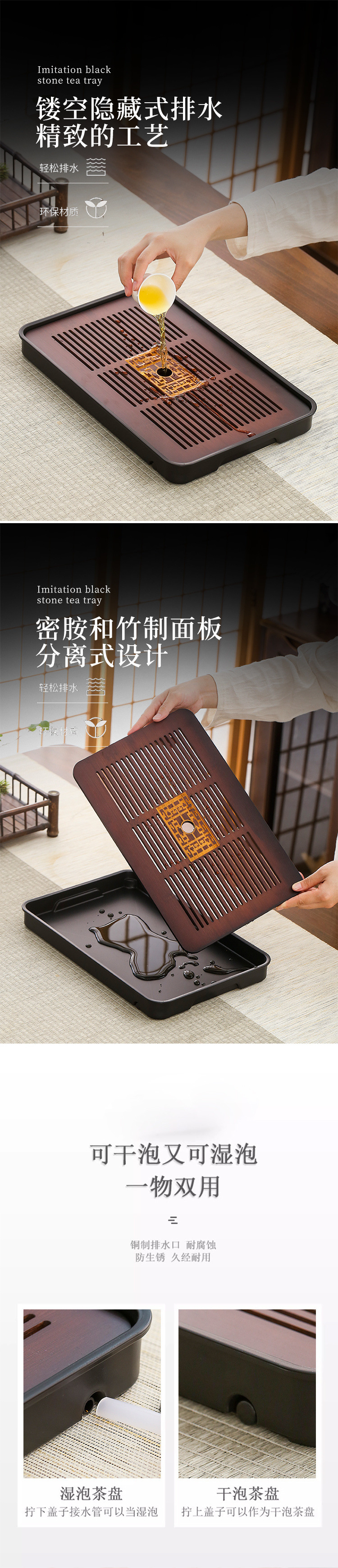 茶盘储水式家用小型轻奢茶全套装功夫茶具茶托盘茶台