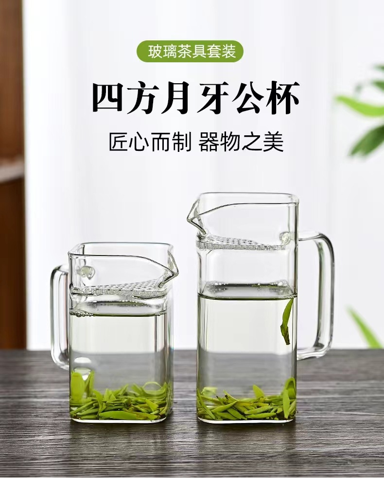 玻璃杯月牙茶水分离茶海分茶器耐热公道杯过滤茶漏一体泡茶杯茶具
