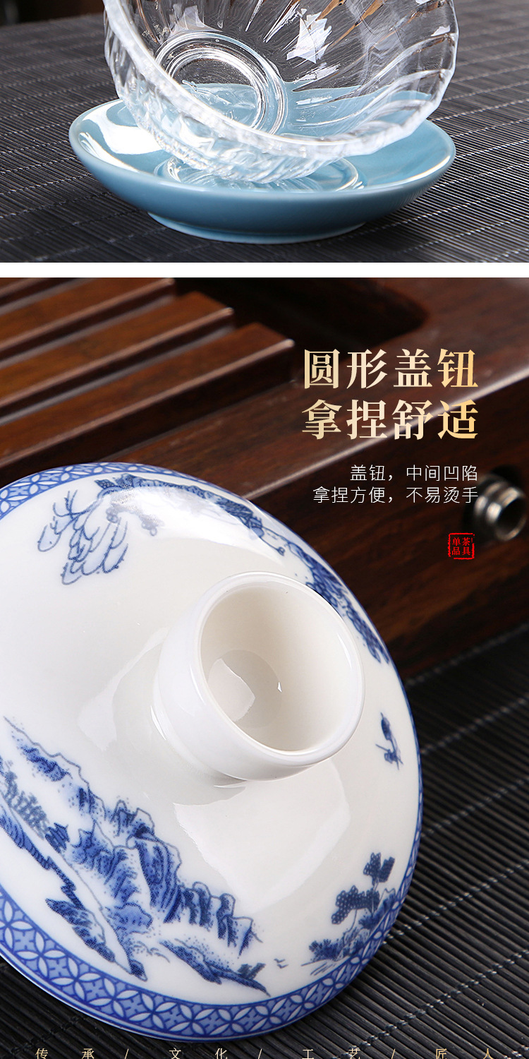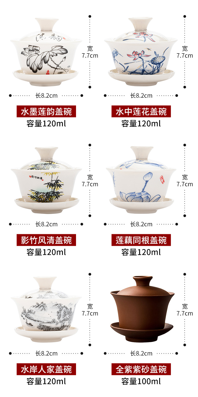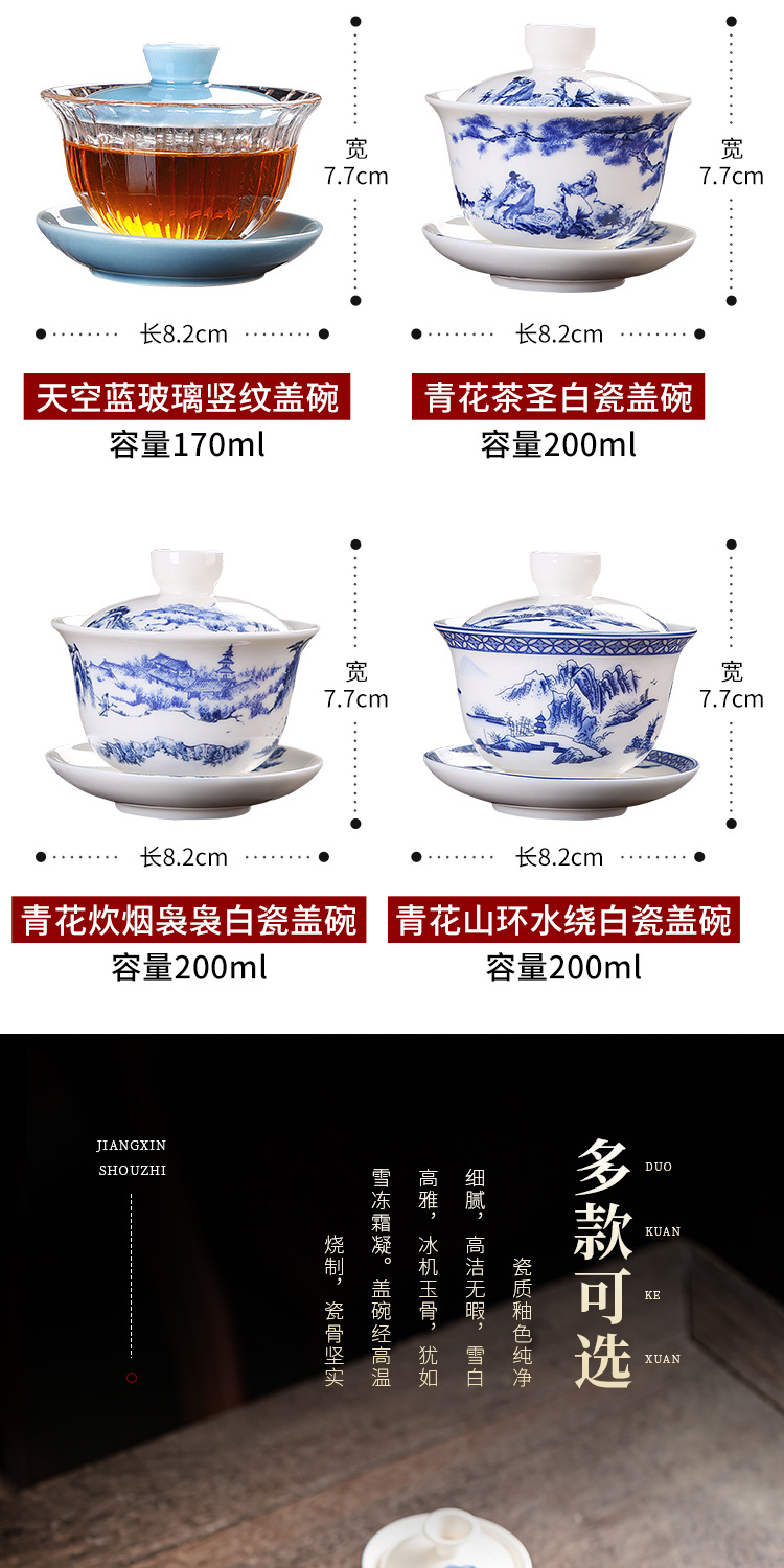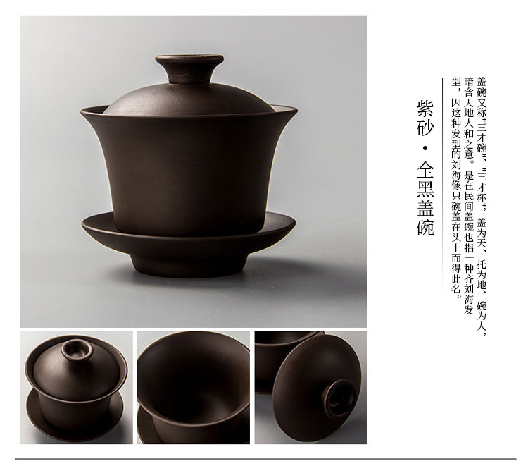 功夫茶盖碗茶杯玻璃敬茶碗大小号陶瓷三才盖碗单个紫砂茶具泡茶壶