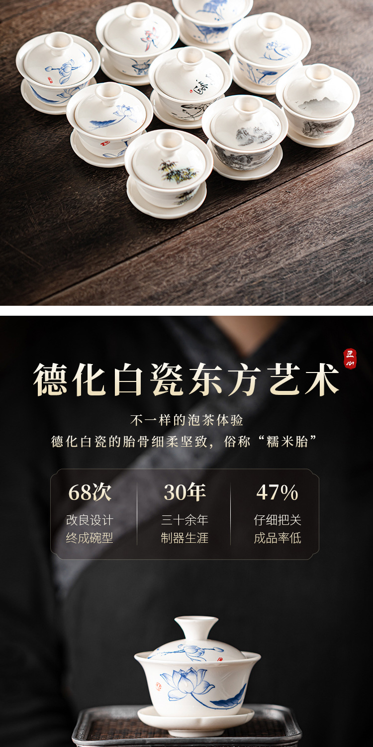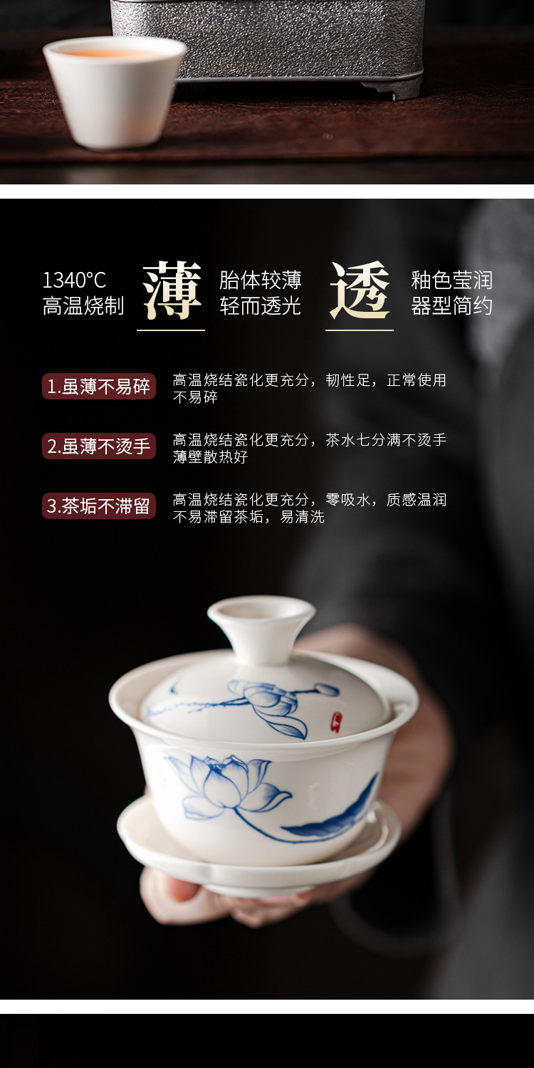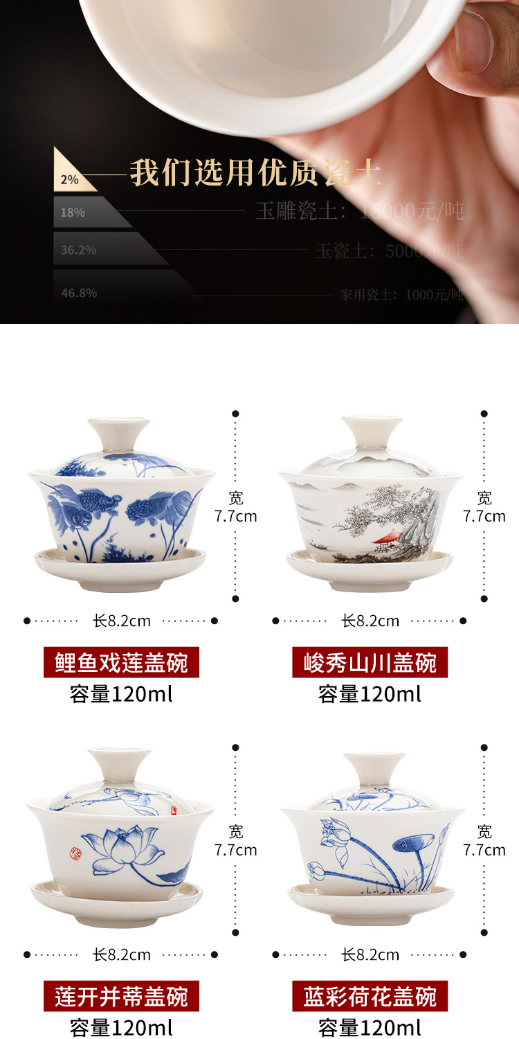 功夫茶盖碗茶杯玻璃敬茶碗大小号陶瓷三才盖碗单个紫砂茶具泡茶壶