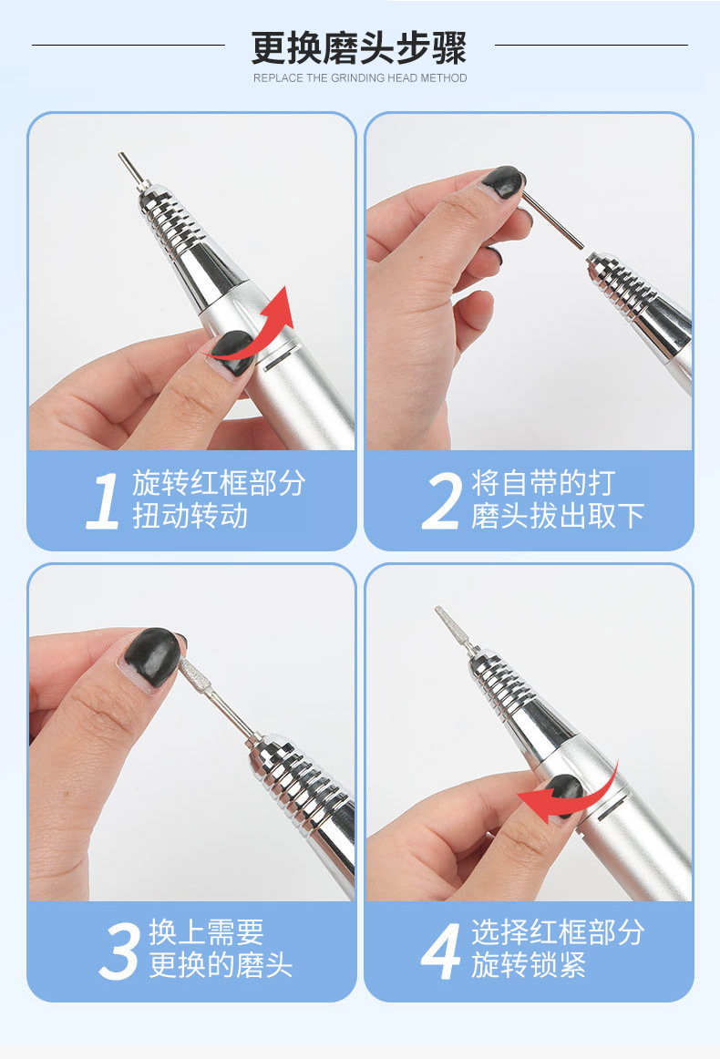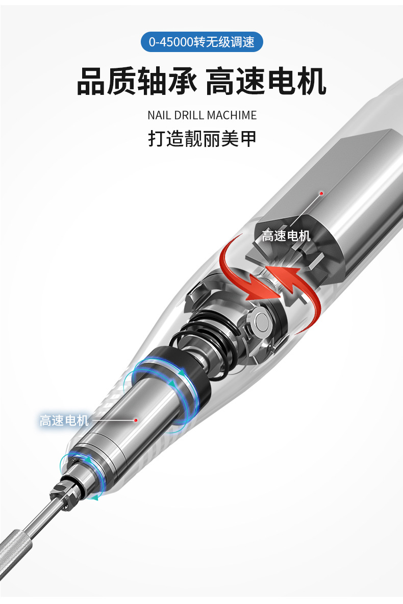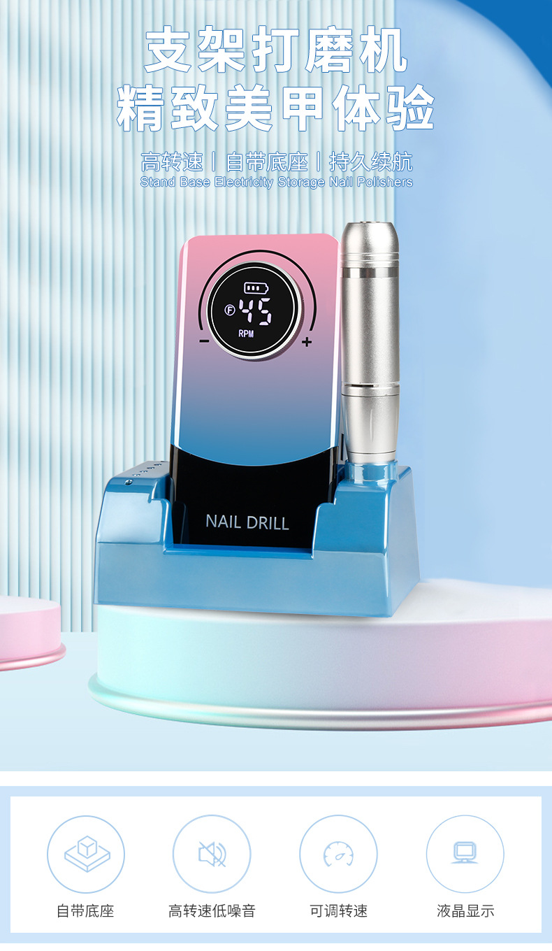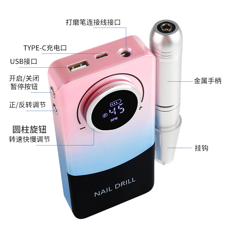 新款便捷式蓄电美甲打磨机电动卸甲转速可调高转速美甲打磨机