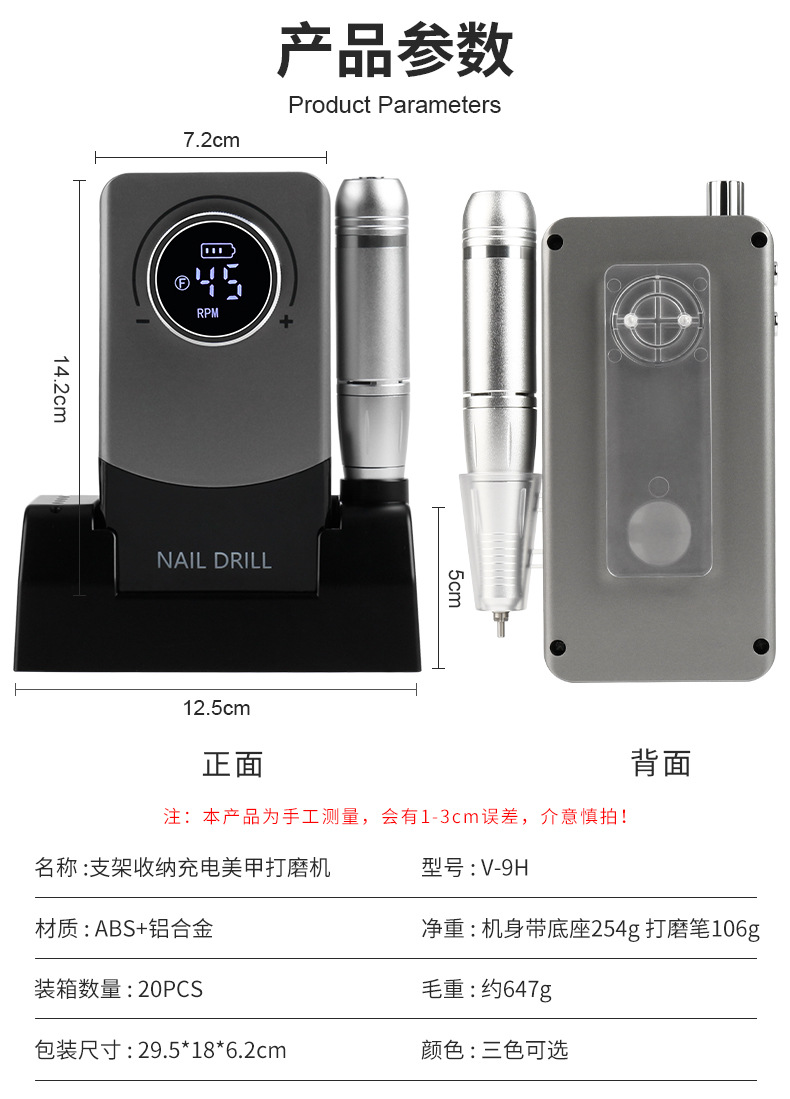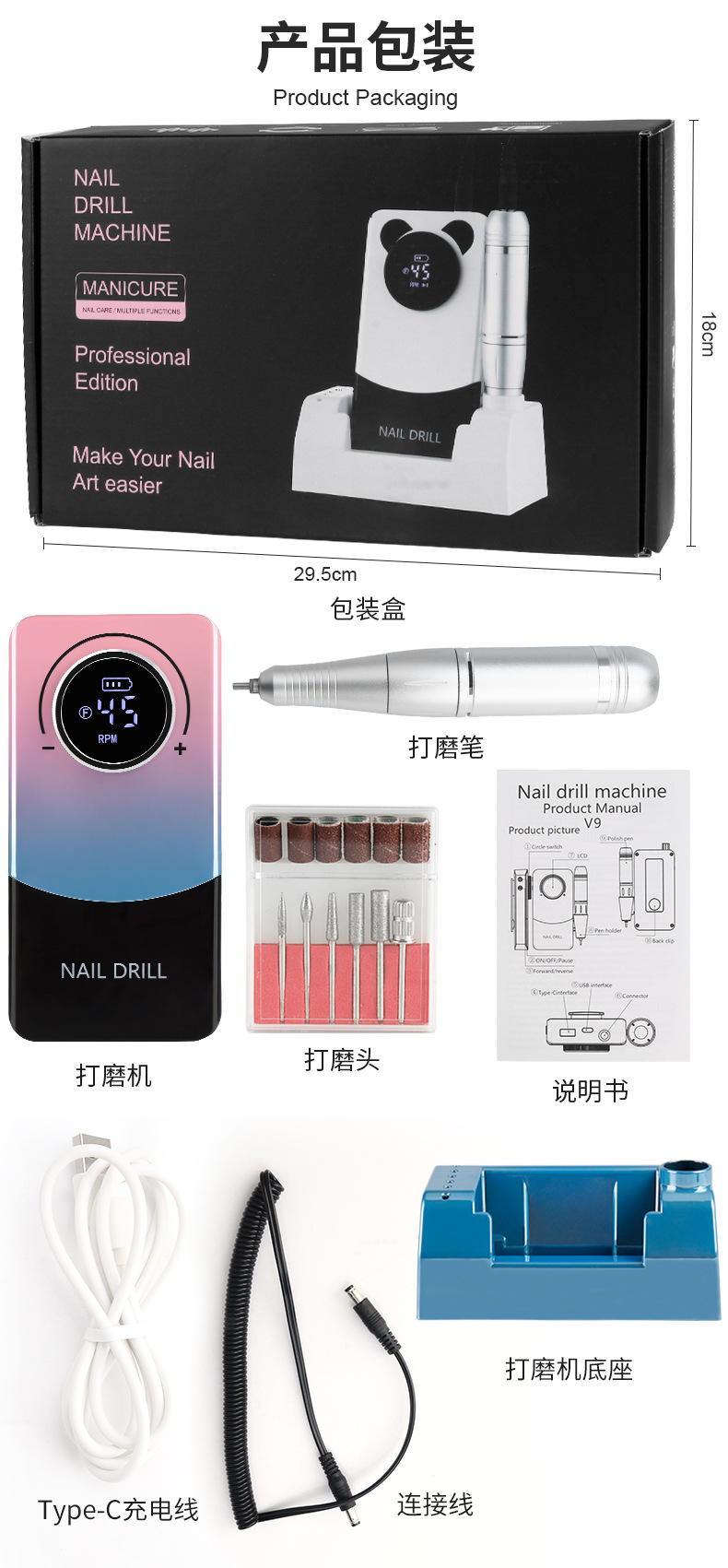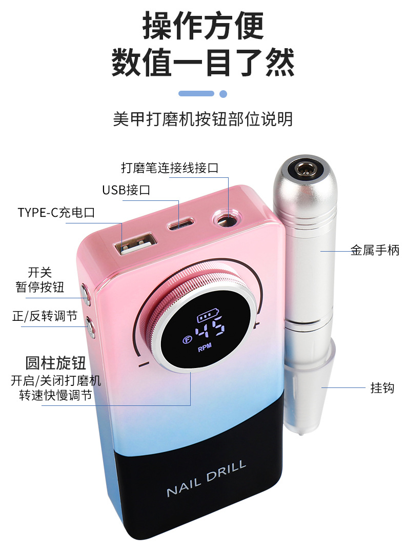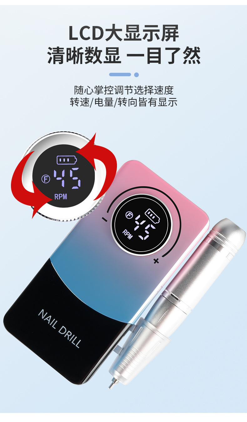 新款便捷式蓄电美甲打磨机电动卸甲转速可调高转速美甲打磨机