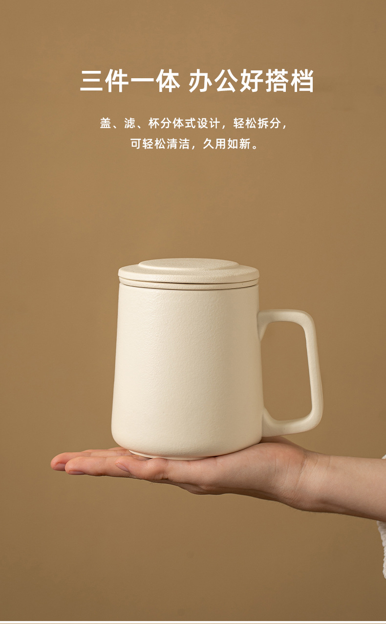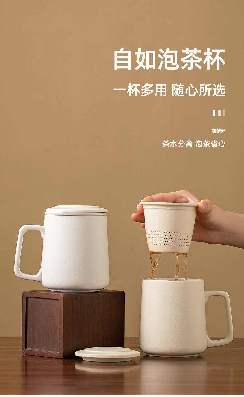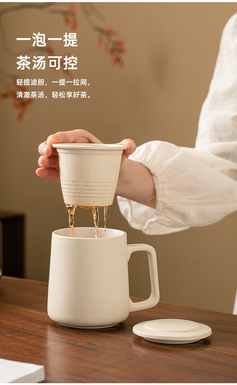 茶水分离杯陶瓷办公室家用简约带盖过滤实用礼品个人专用泡茶杯子
