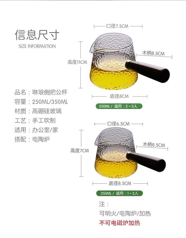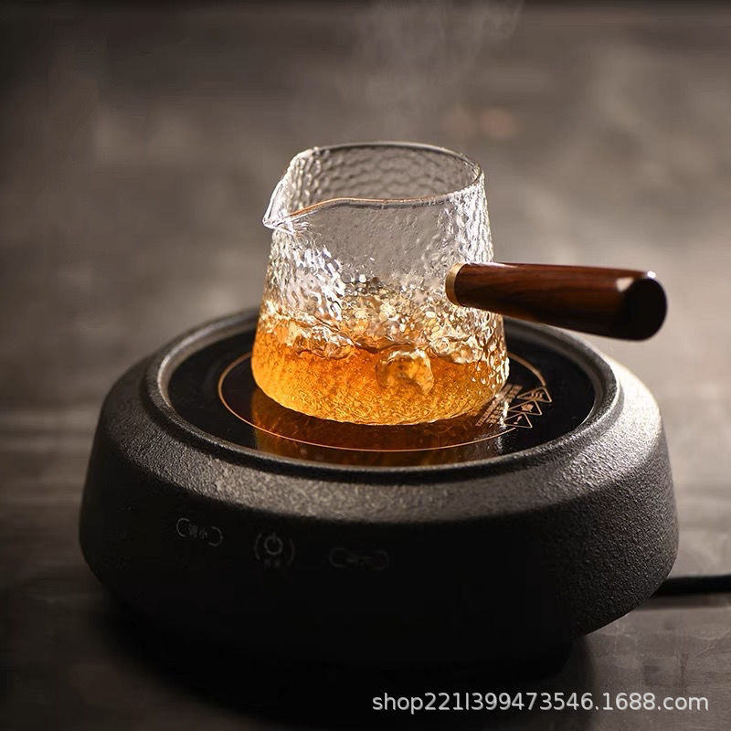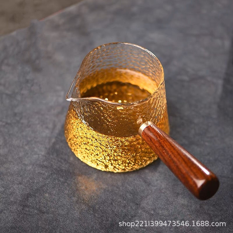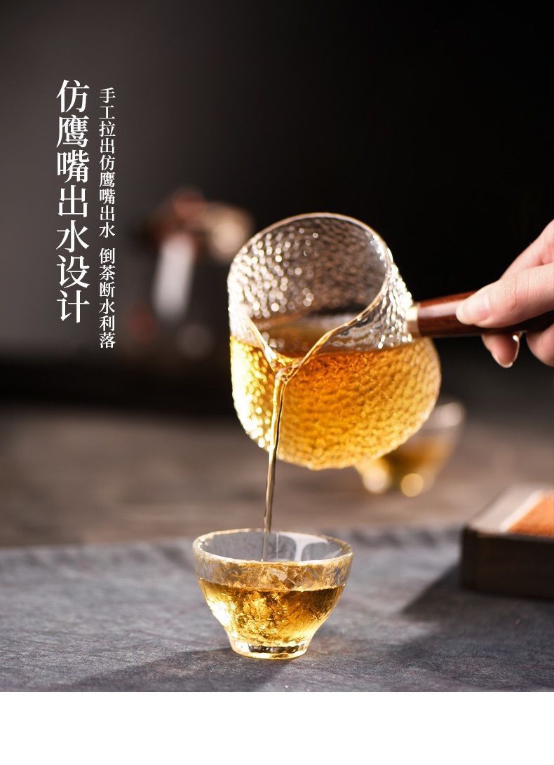 木把玻璃公道杯耐用茶海加厚耐热锤纹功夫茶具配件过滤公杯分茶器