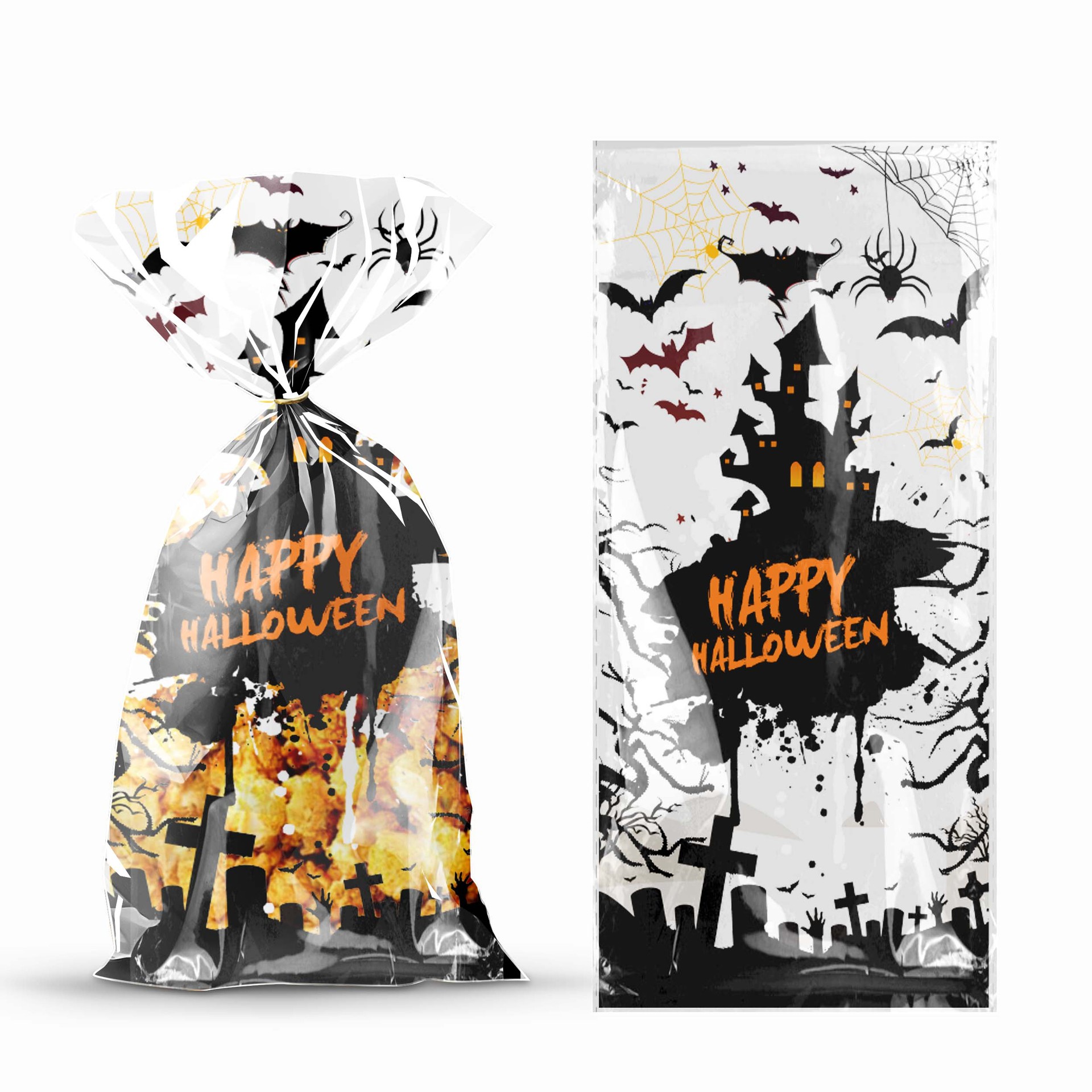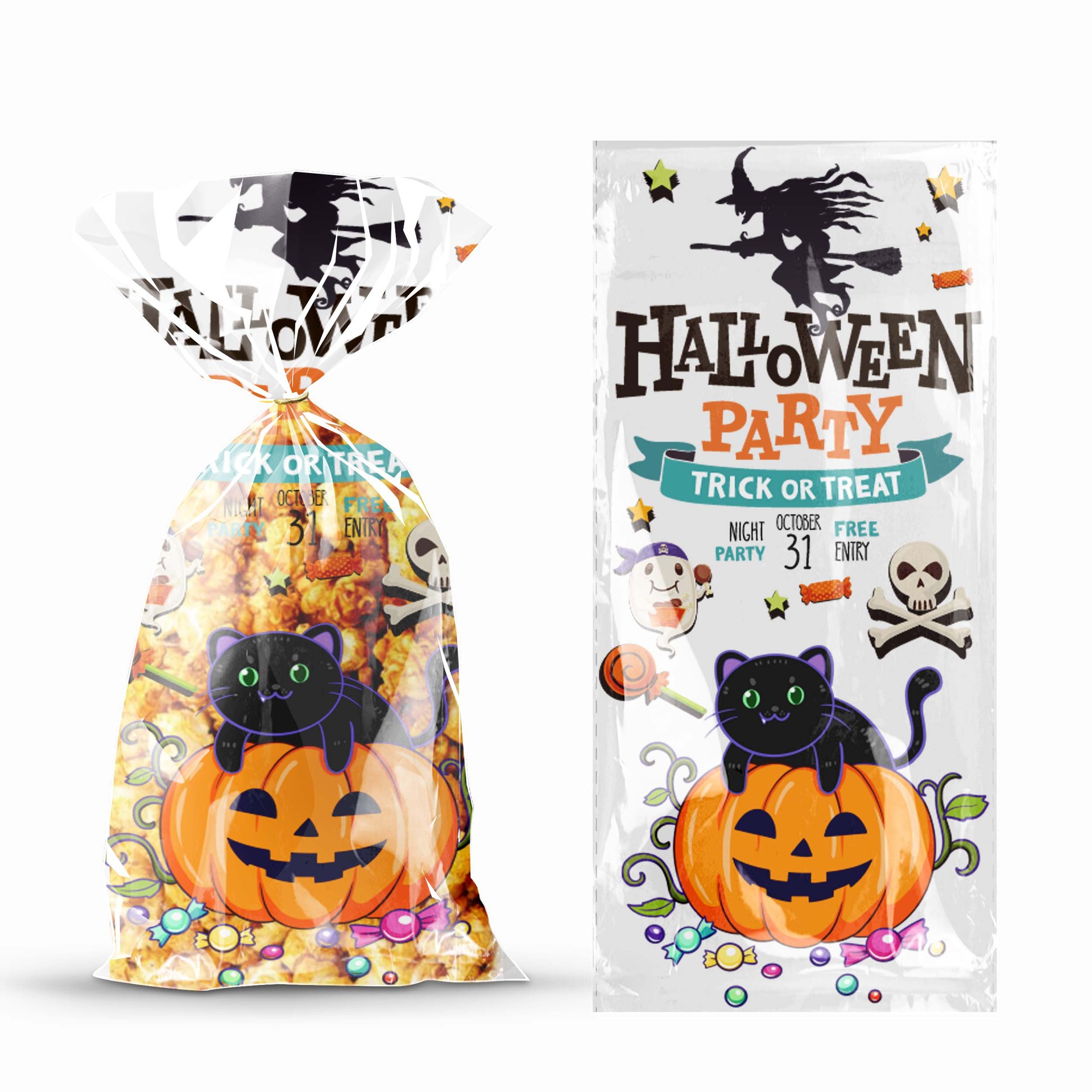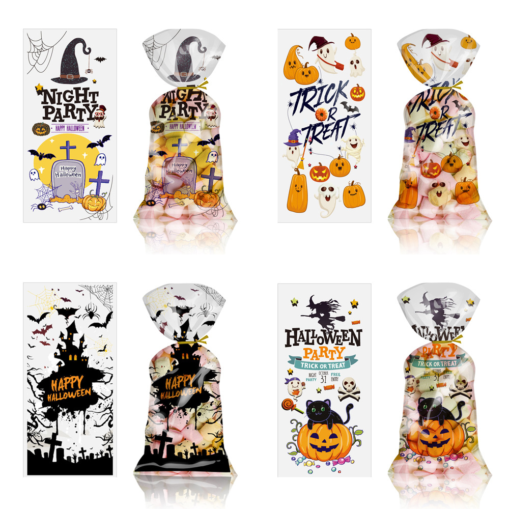 跨境万圣节4联组合图案糖果袋万圣节礼品袋猫咪南瓜女巫图案彩印