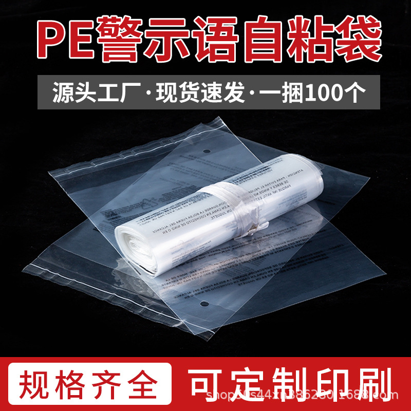 pe自粘袋警示语批发透明胶自黏自封服装加厚塑料包装袋子现货印刷