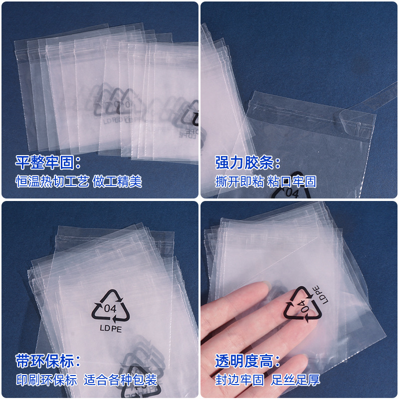 定制pe自粘袋透明服装袋高压自封袋不干胶自黏袋印刷警告语包装袋