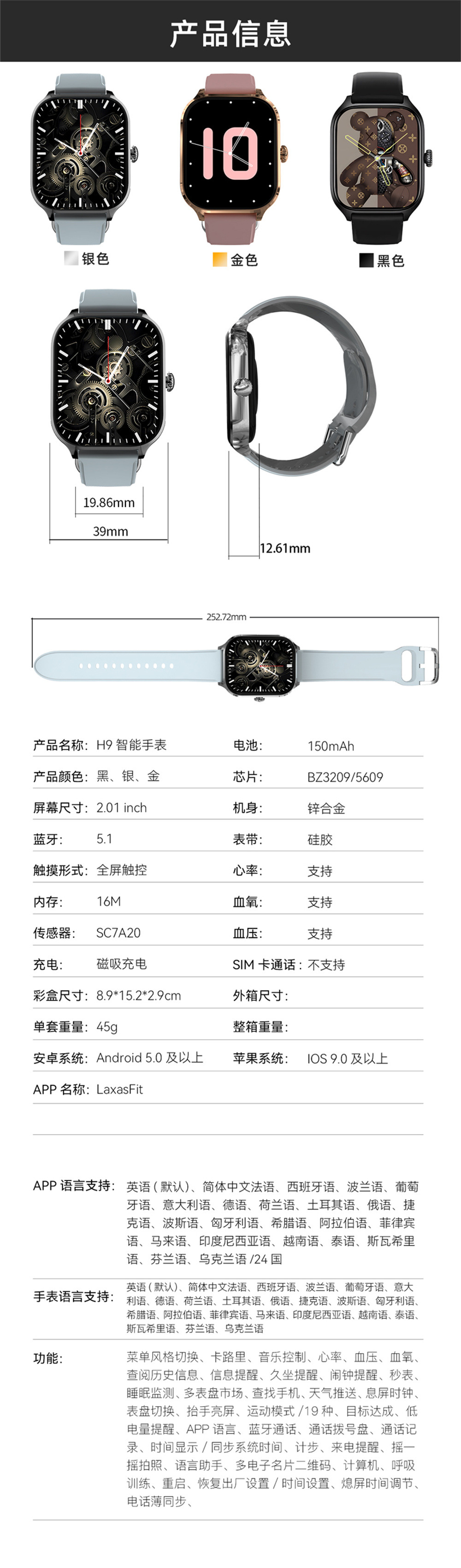 H9智能手表跨境爆款时尚新品蓝牙通话灵动岛运动消息提醒GTS4手表