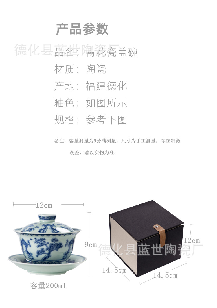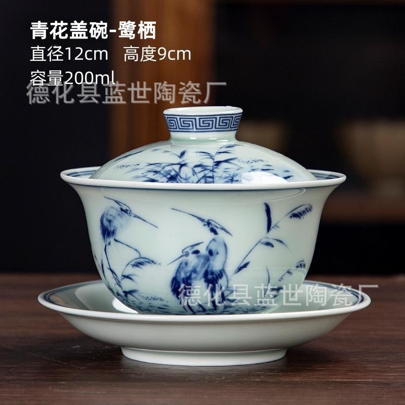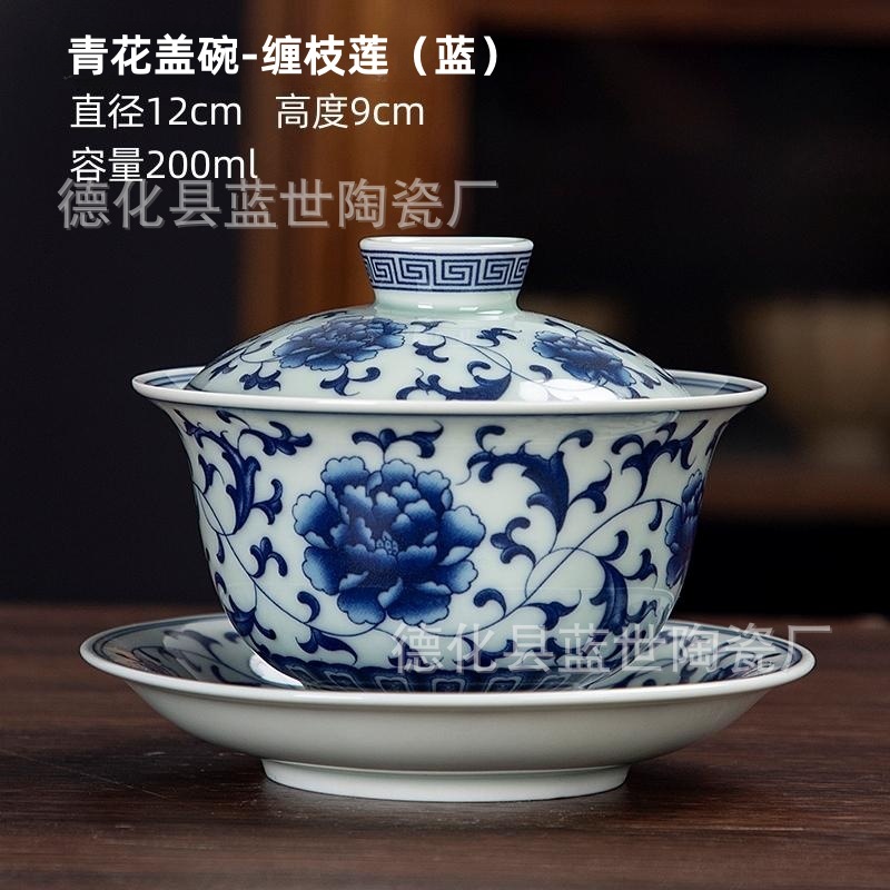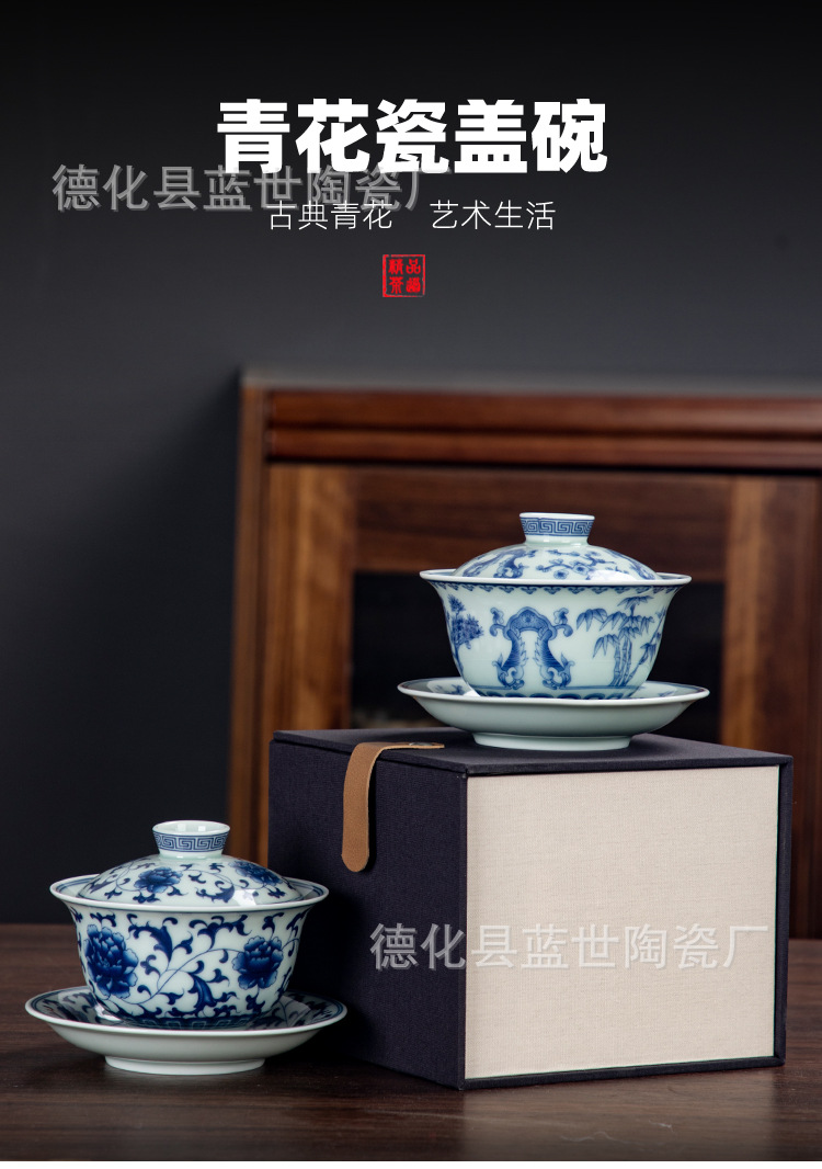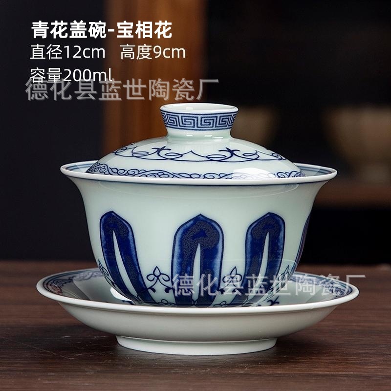 青花三才盖碗复古釉中彩大号茶碗家用办公室茶杯陶瓷功夫茶具套装