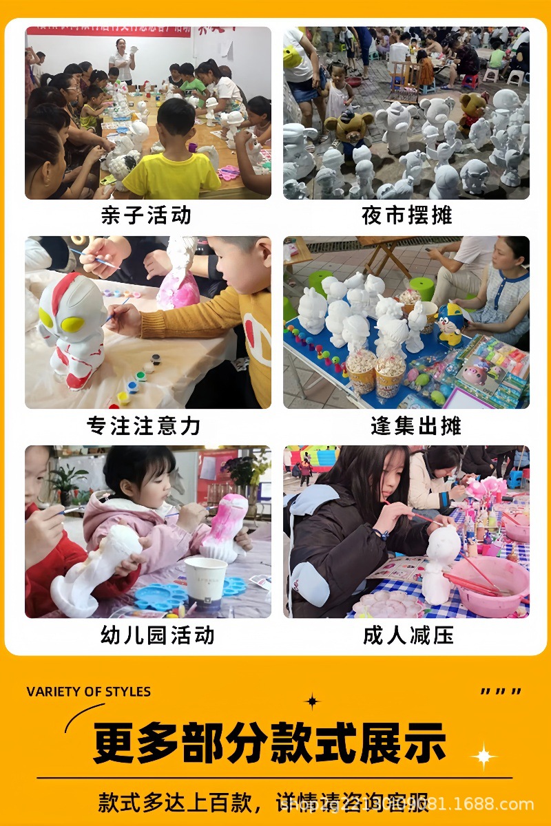 手工店专供石膏娃娃涂色批发白胚存钱罐diy彩绘儿童摆摊涂鸦