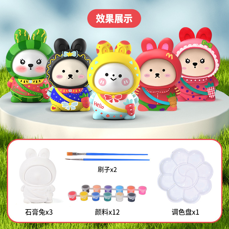 儿童DIY创意彩绘石膏填色涂色娃娃绘画手工制作画画益智玩具