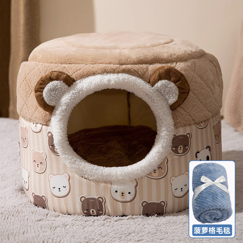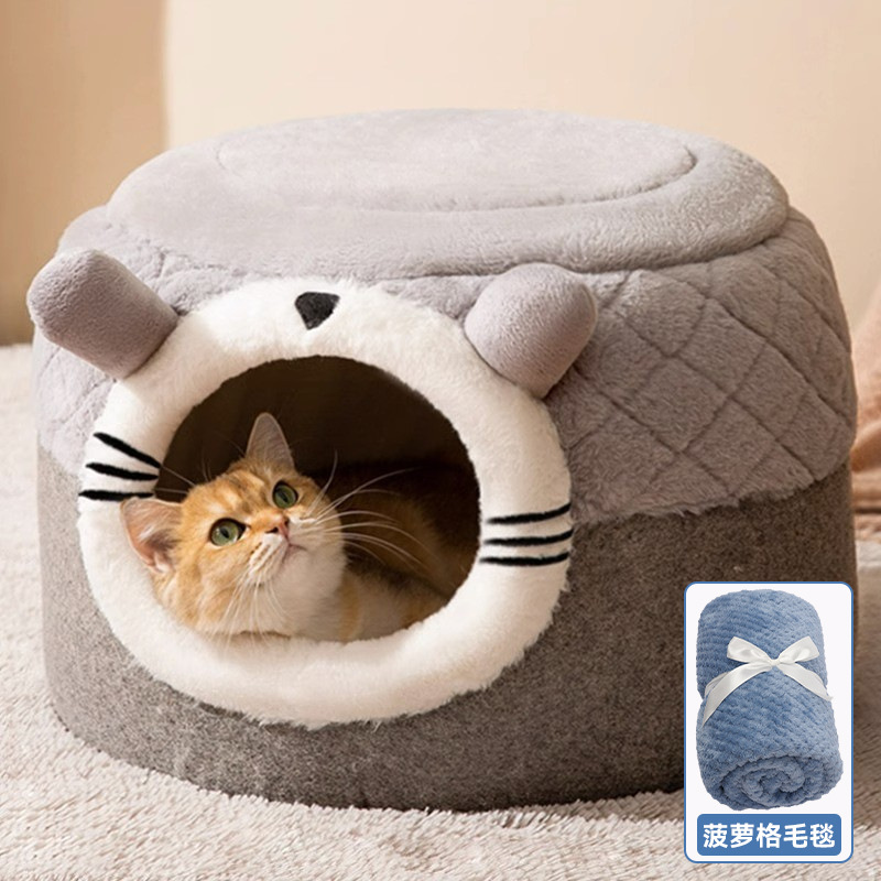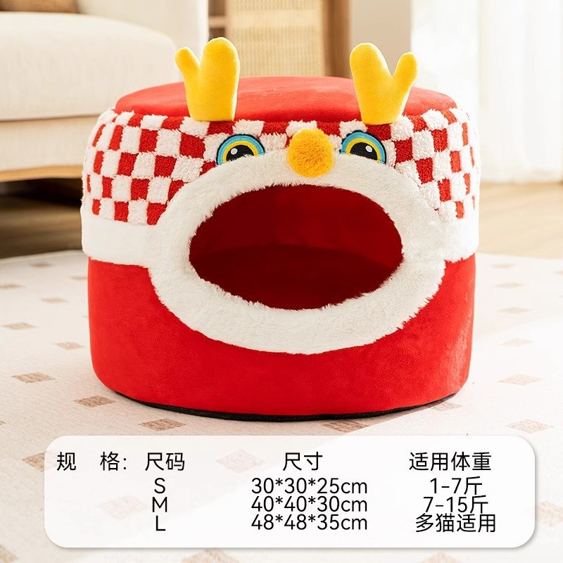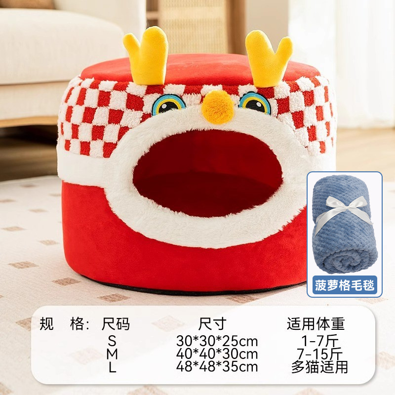 跨境爆款2024秋冬季猫咪麋鹿捉迷藏猫隧道玩睡一体猫窝宠物窝狗窝