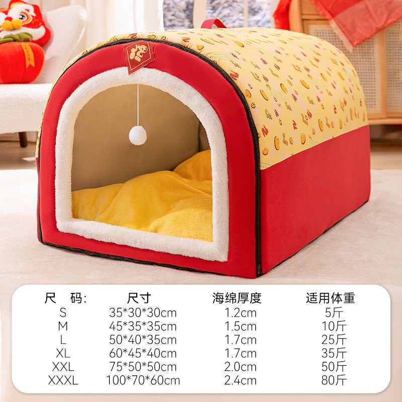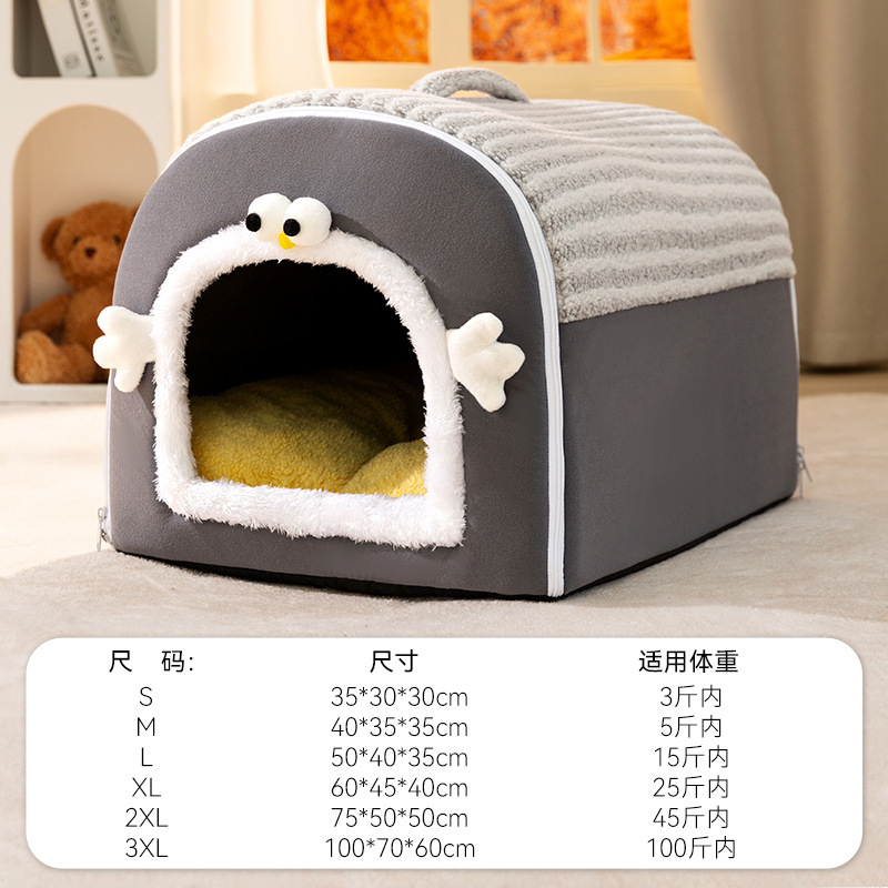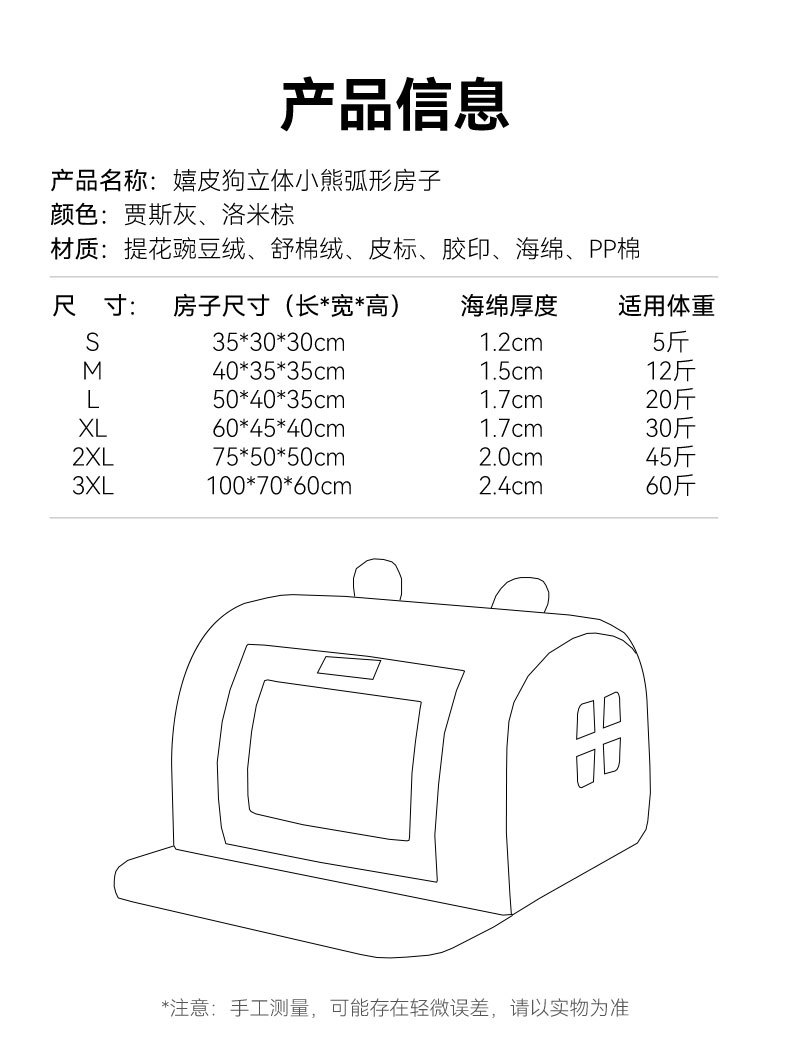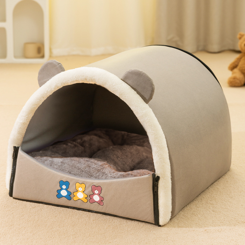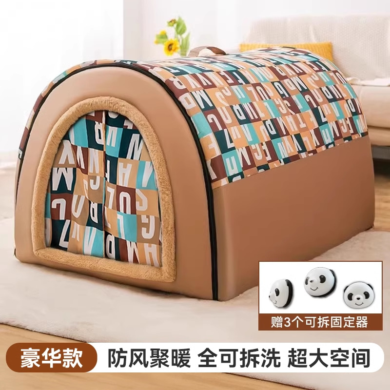 秋冬季狗狗中小型犬立体小熊弧形房子狗窝保暖加厚猫窝大狗宠物窝