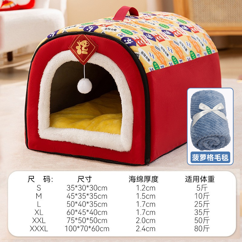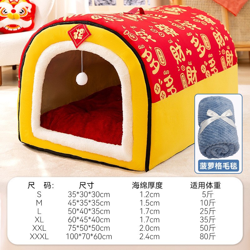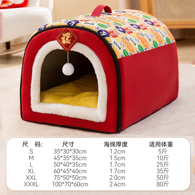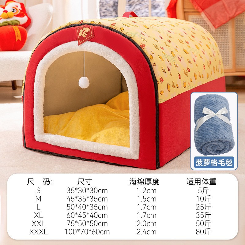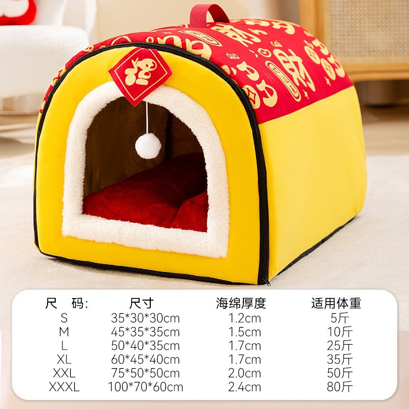 秋冬季狗狗中小型犬立体小熊弧形房子狗窝保暖加厚猫窝大狗宠物窝