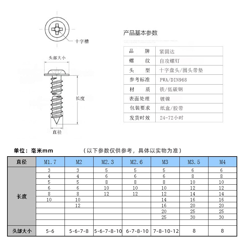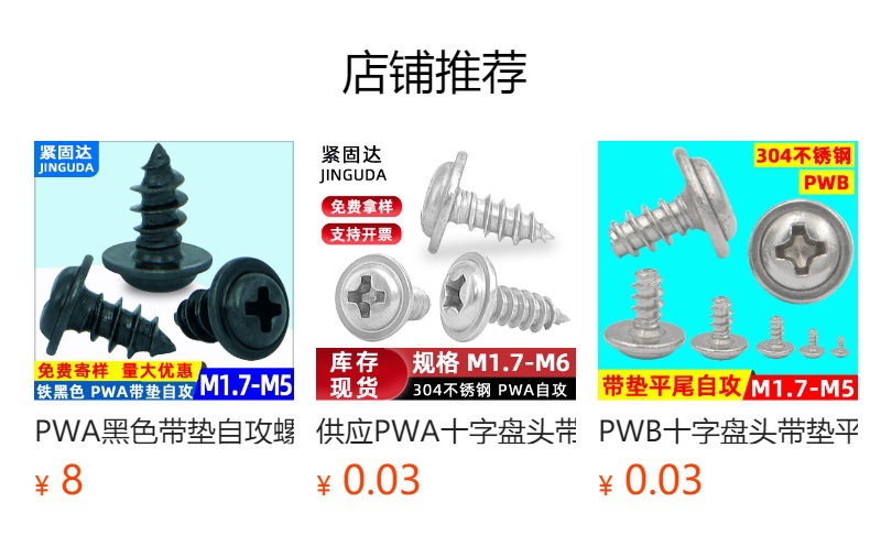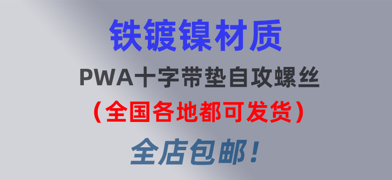镀镍带垫自攻螺丝钉十字自攻钉带介自攻丝螺丝自贡PWA自功尖螺钉