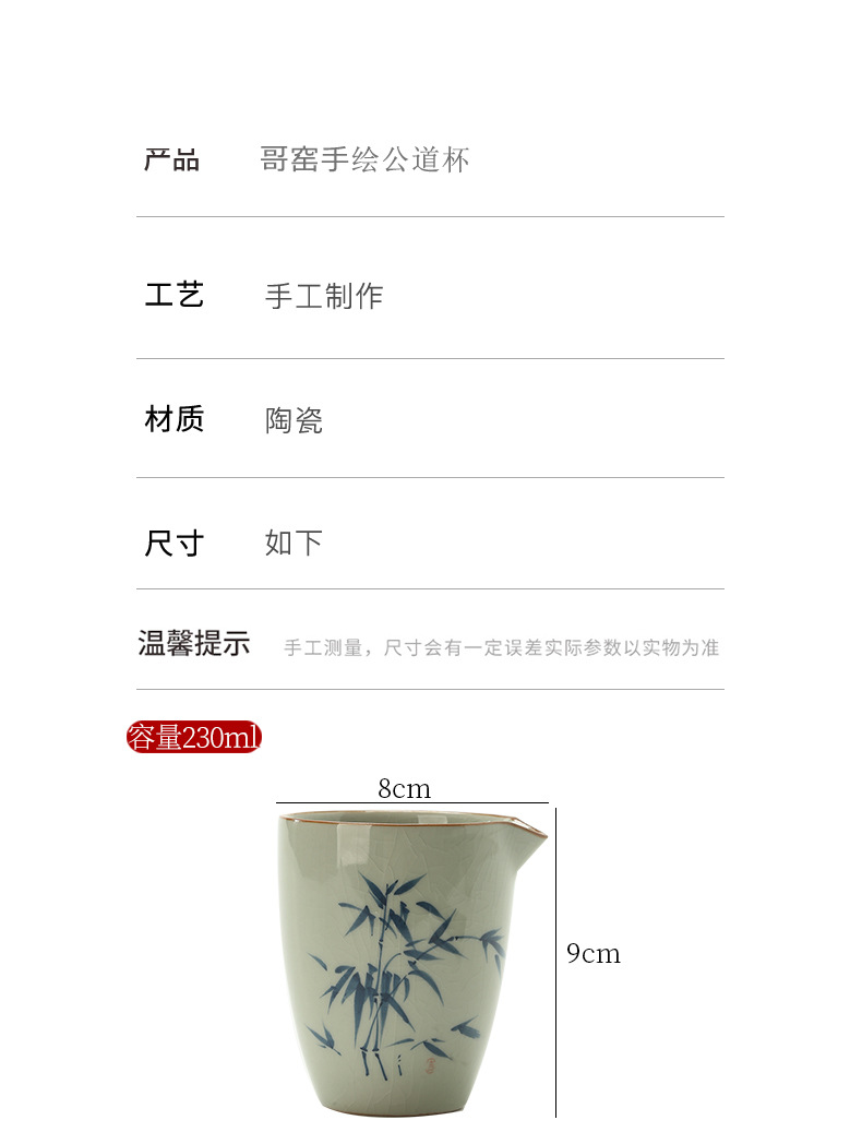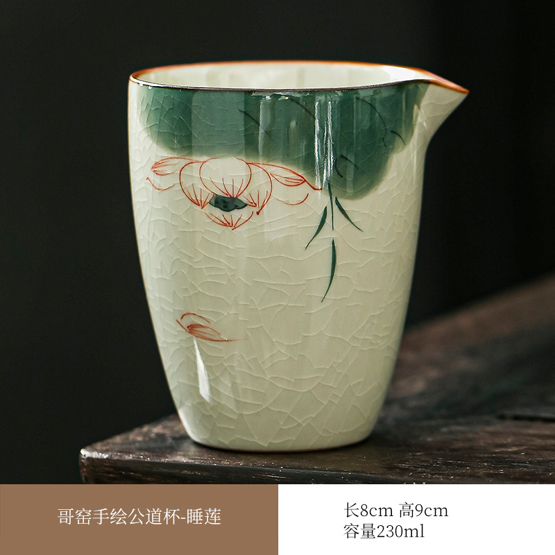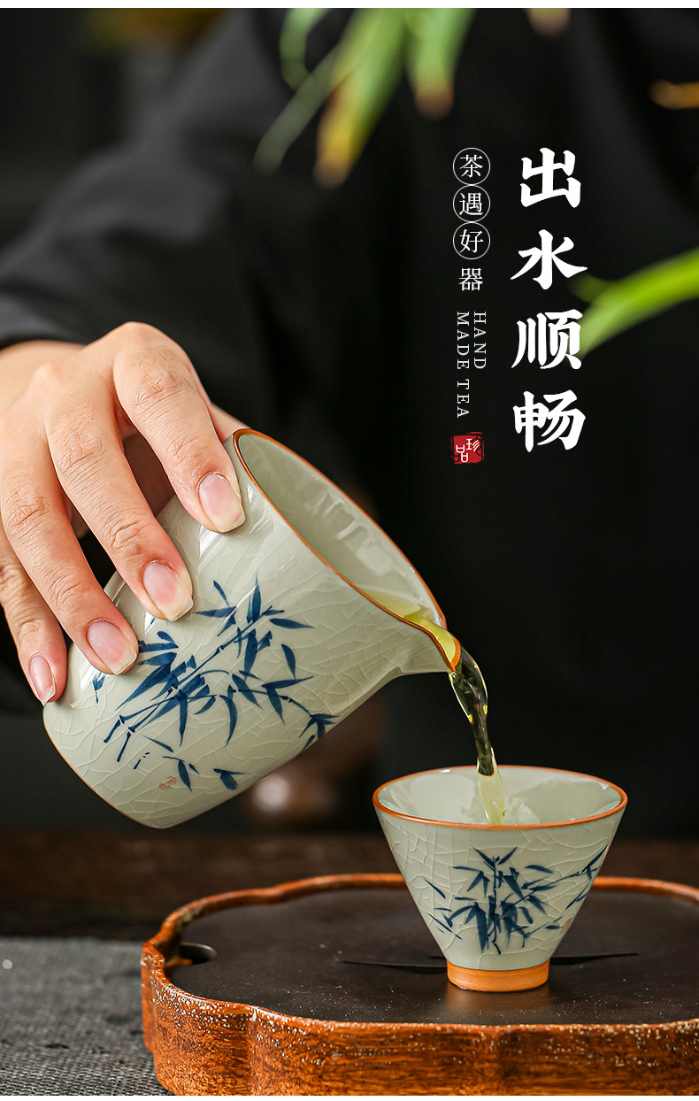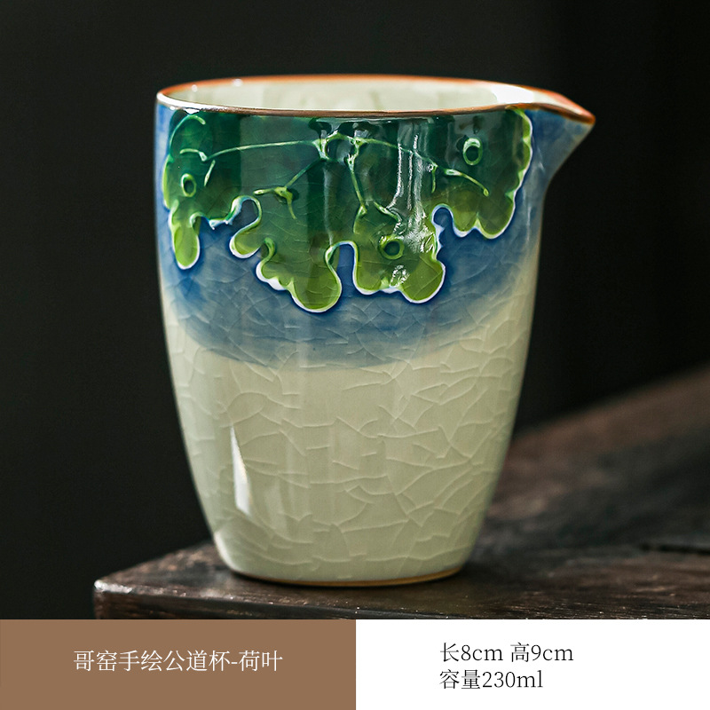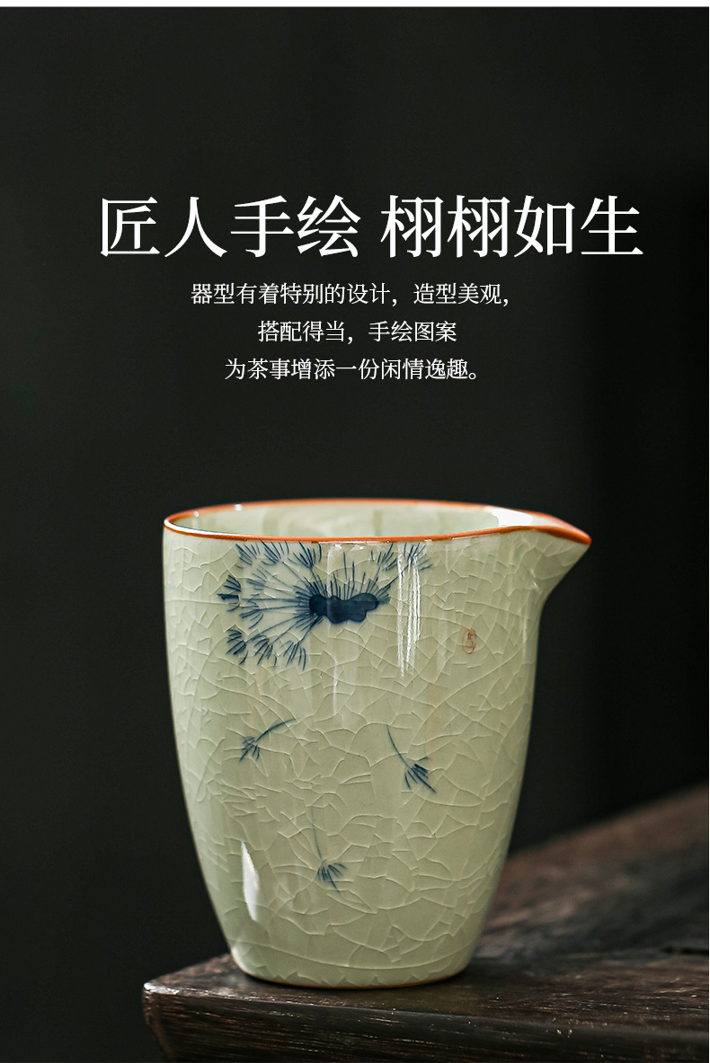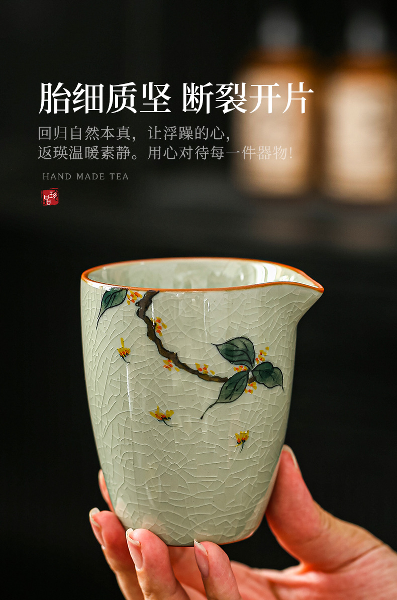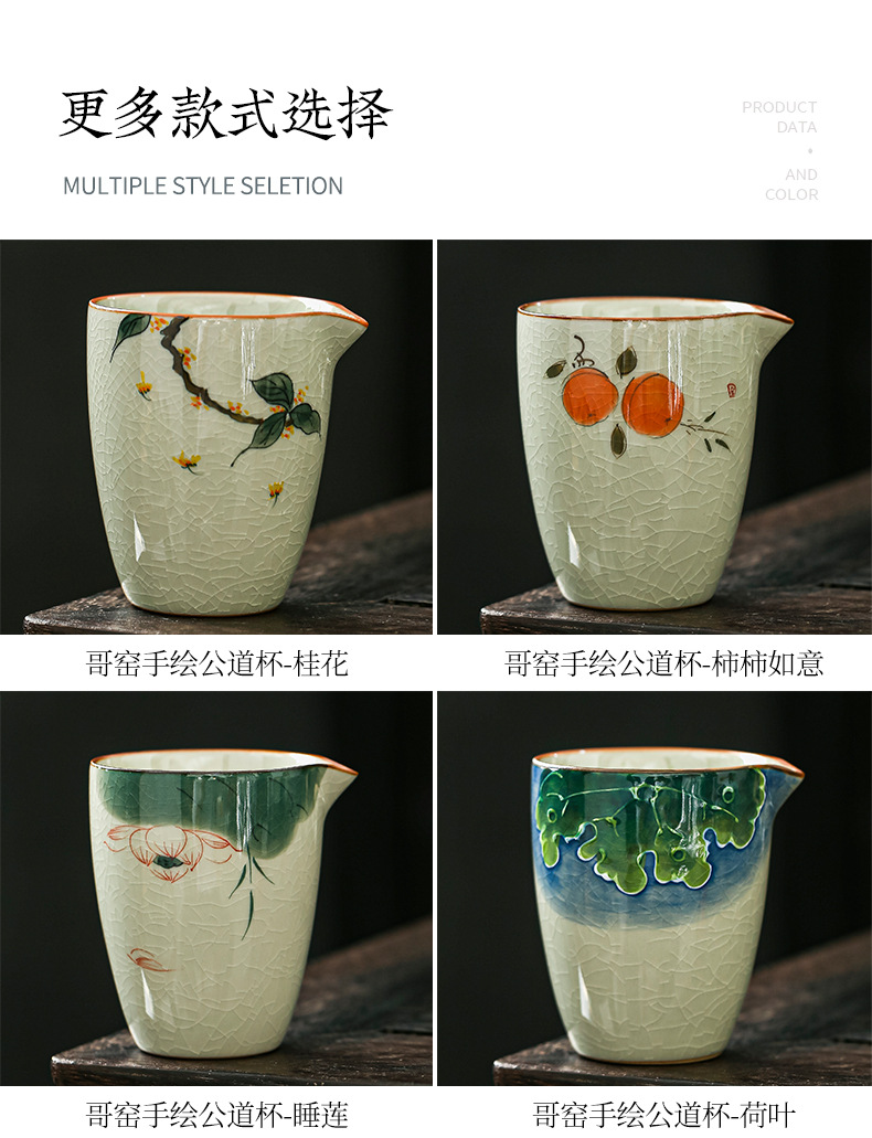 哥窑手绘公道杯右下彩开片陶瓷茶水分茶器家用茶海功夫茶具零配件